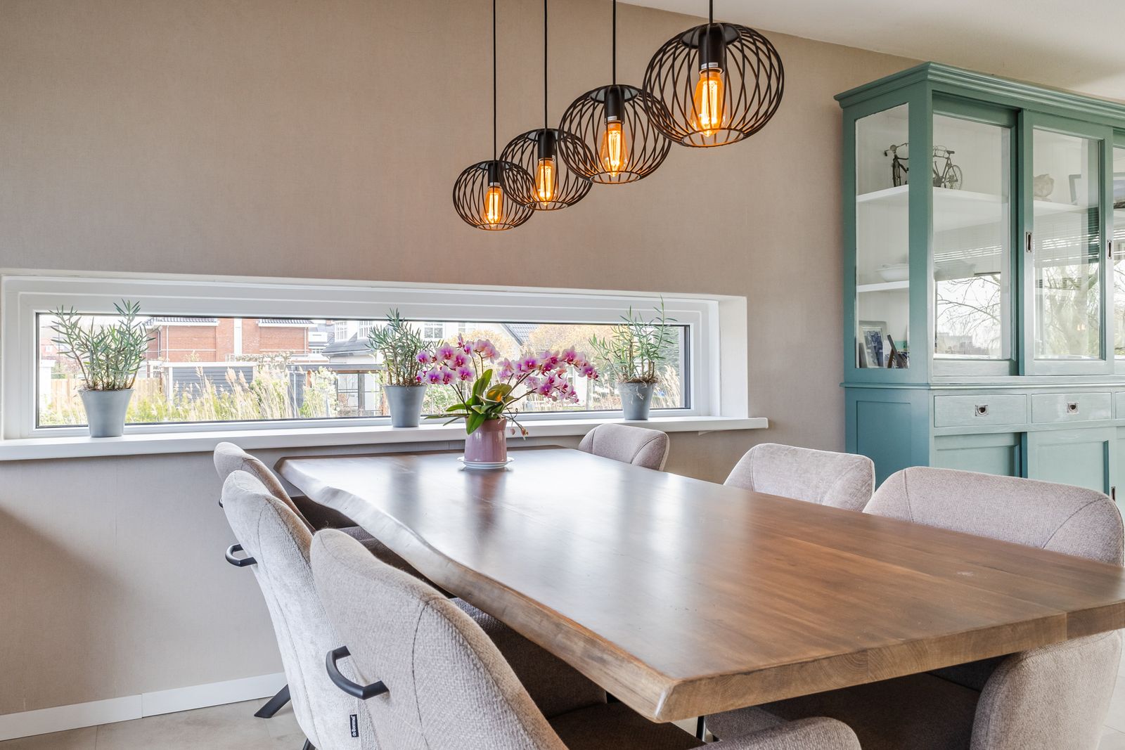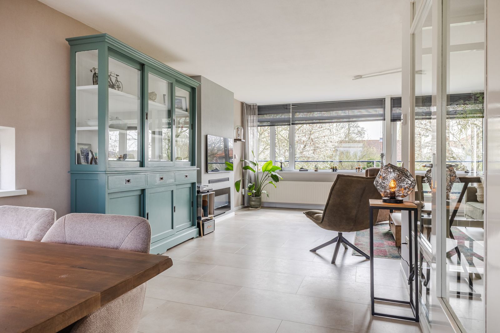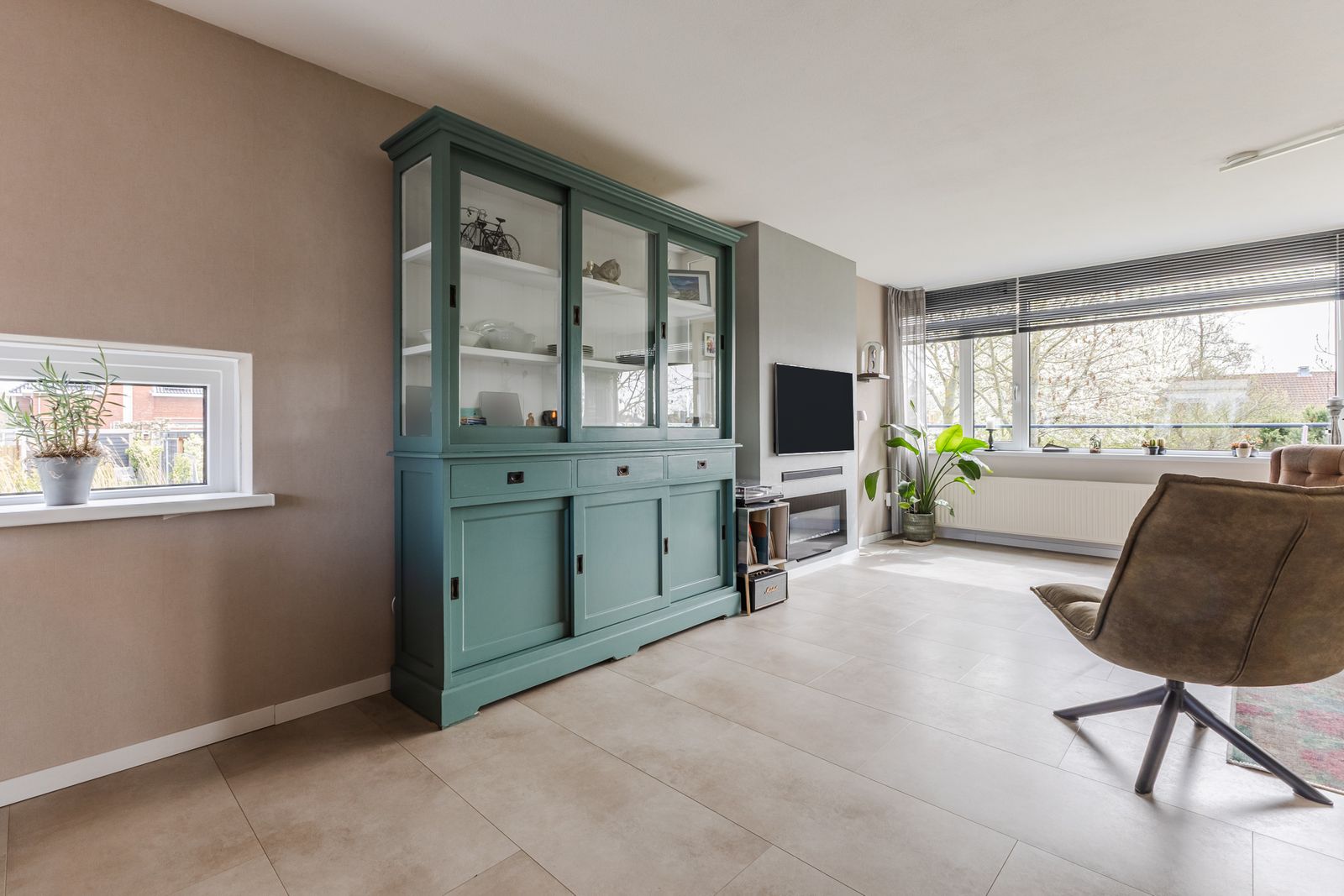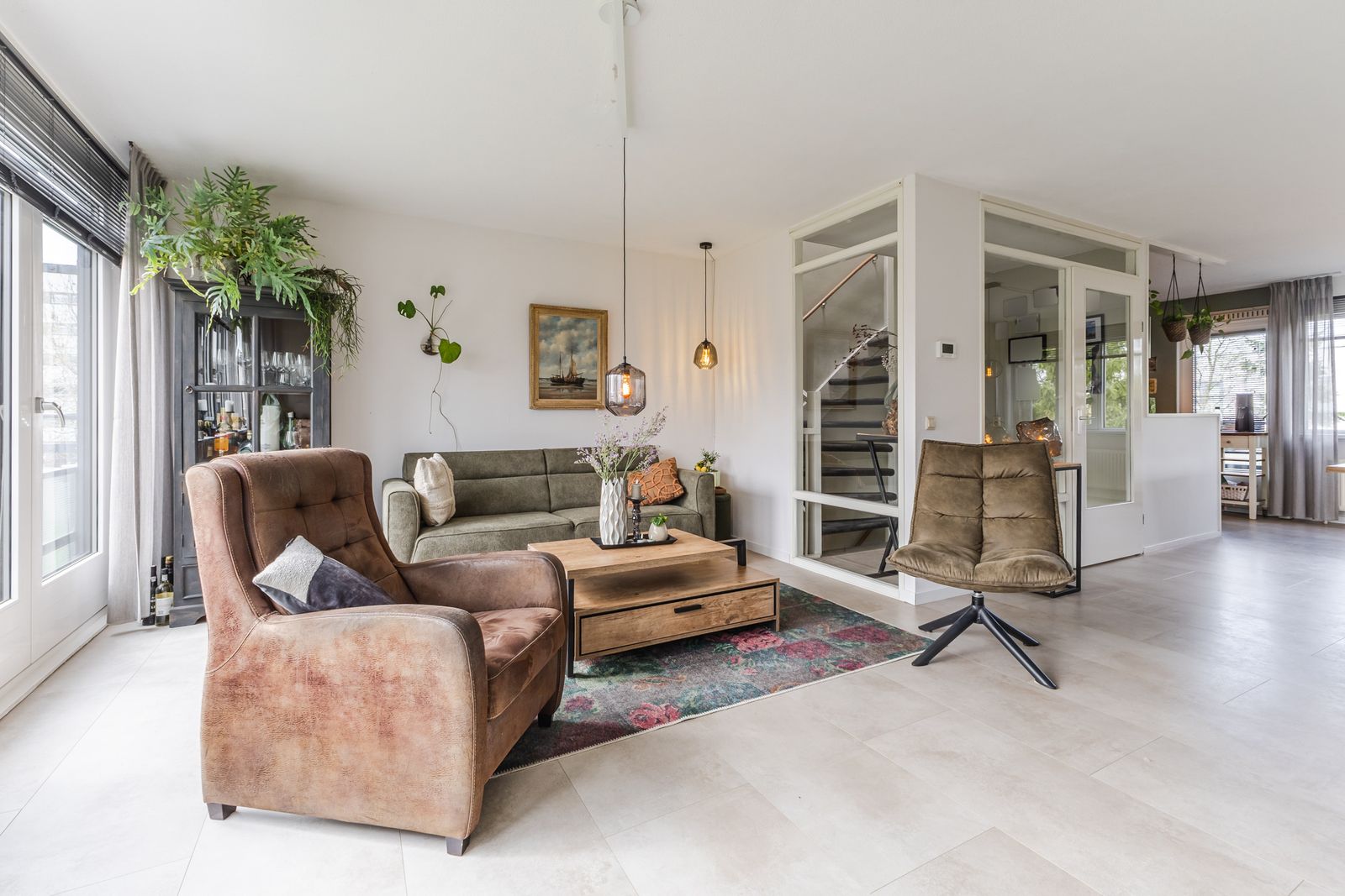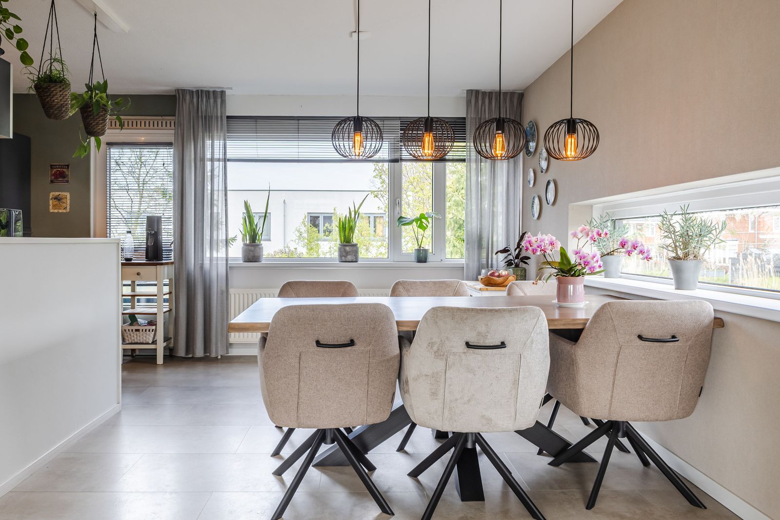 De lichte ruime woonkamer is gelegen op de eerste verdieping en geeft rondom een prachtig vrij uitzicht op het groen. De keuken is aan de achterzijde van de woning gelegen en voorzien van koelkast, vaatwasser, plint boiler en losse magnetron. De keuken is voorzien van grote inductiekookplaat. Het raam geeft een prachtige kijk op de tuin.