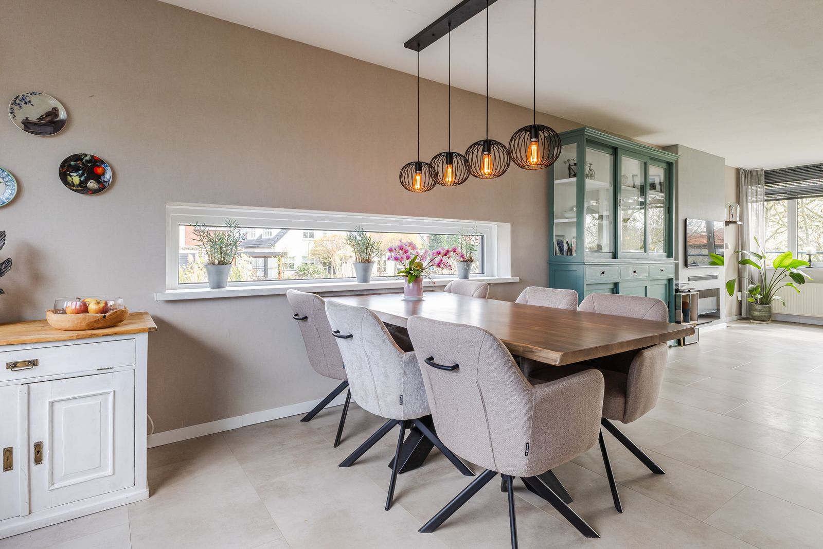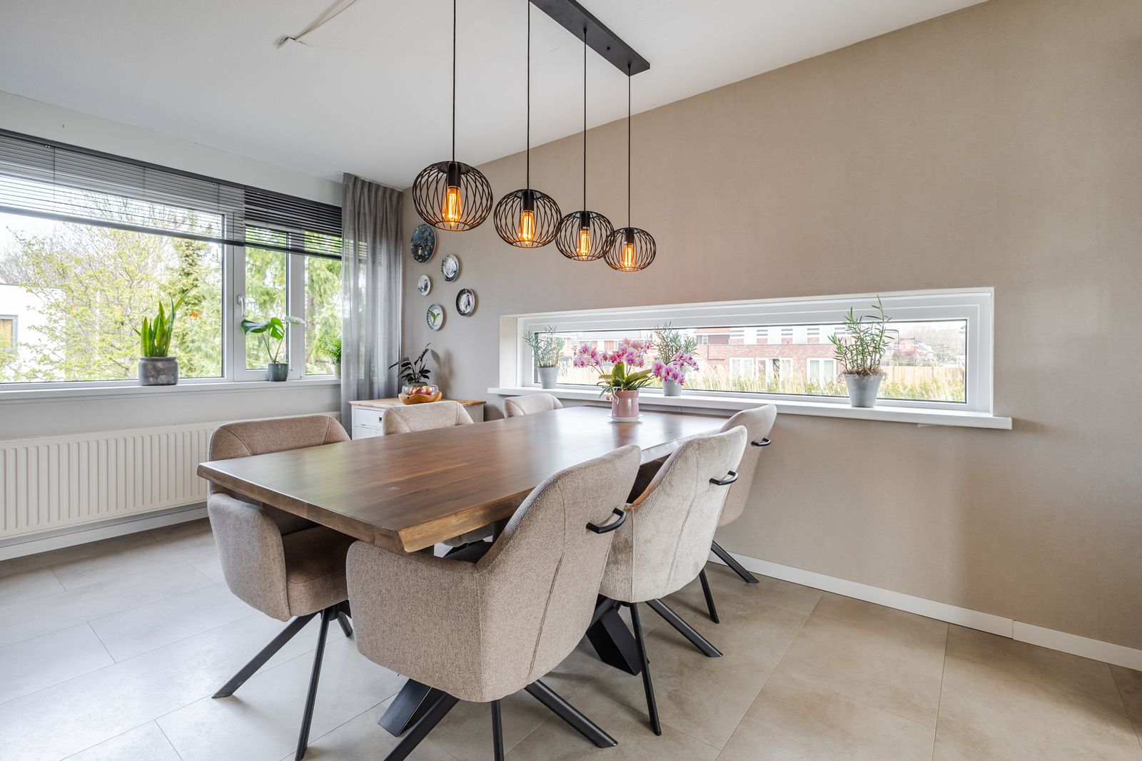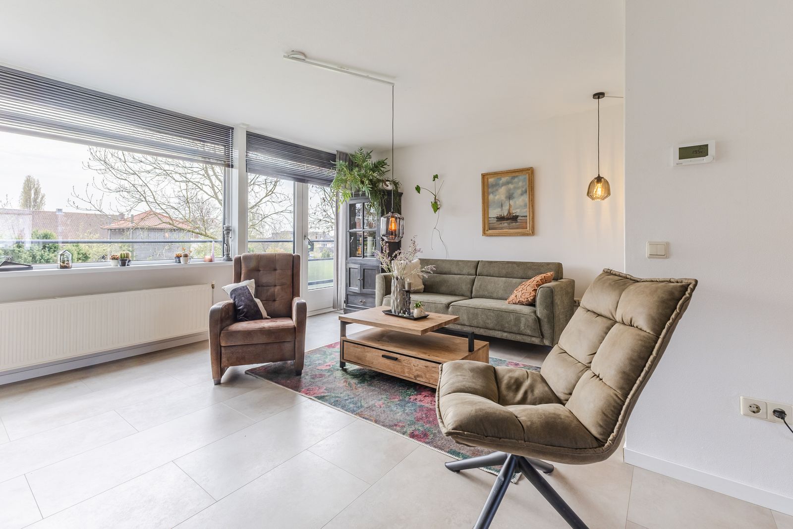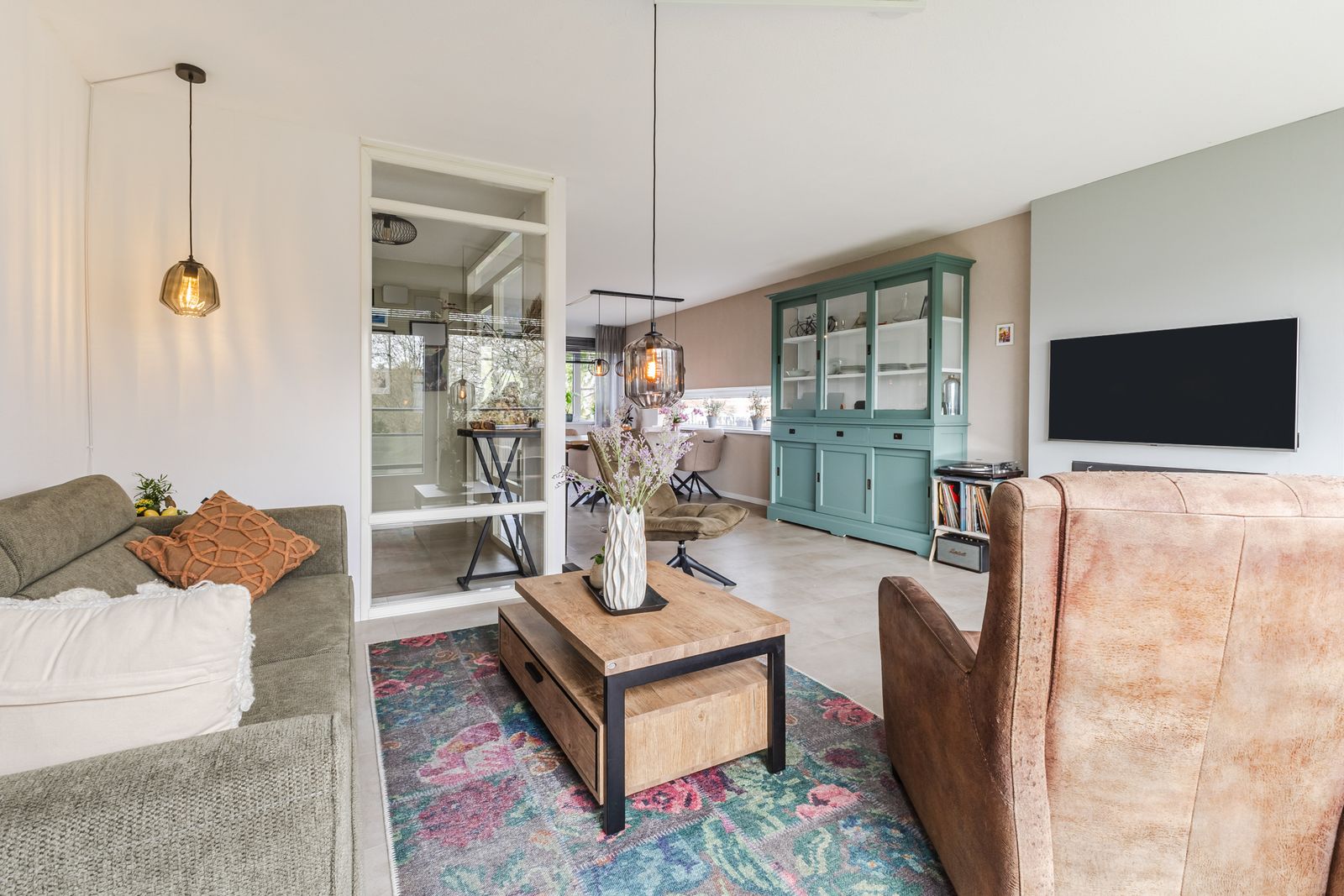 De lichte ruime woonkamer is gelegen op de eerste verdieping en geeft rondom een prachtig vrij uitzicht op het groen. De keuken is aan de achterzijde van de woning gelegen en voorzien van koelkast, vaatwasser, plint boiler en losse magnetron. De keuken is voorzien van grote inductiekookplaat. Het raam geeft een prachtige kijk op de tuin.