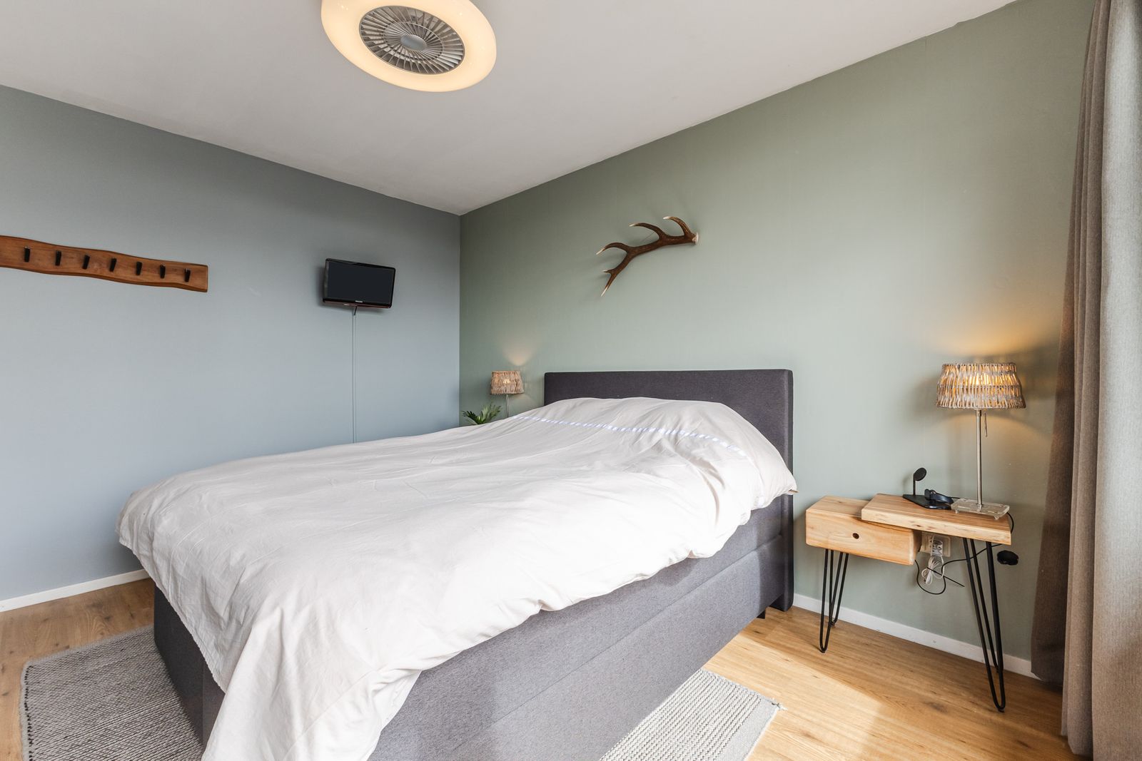 Deze verdieping heeft twee slaapkamers waarvan er 1 is voorzien van een mooi terras met weer uitzicht op de tuin van de kinderboerderij.