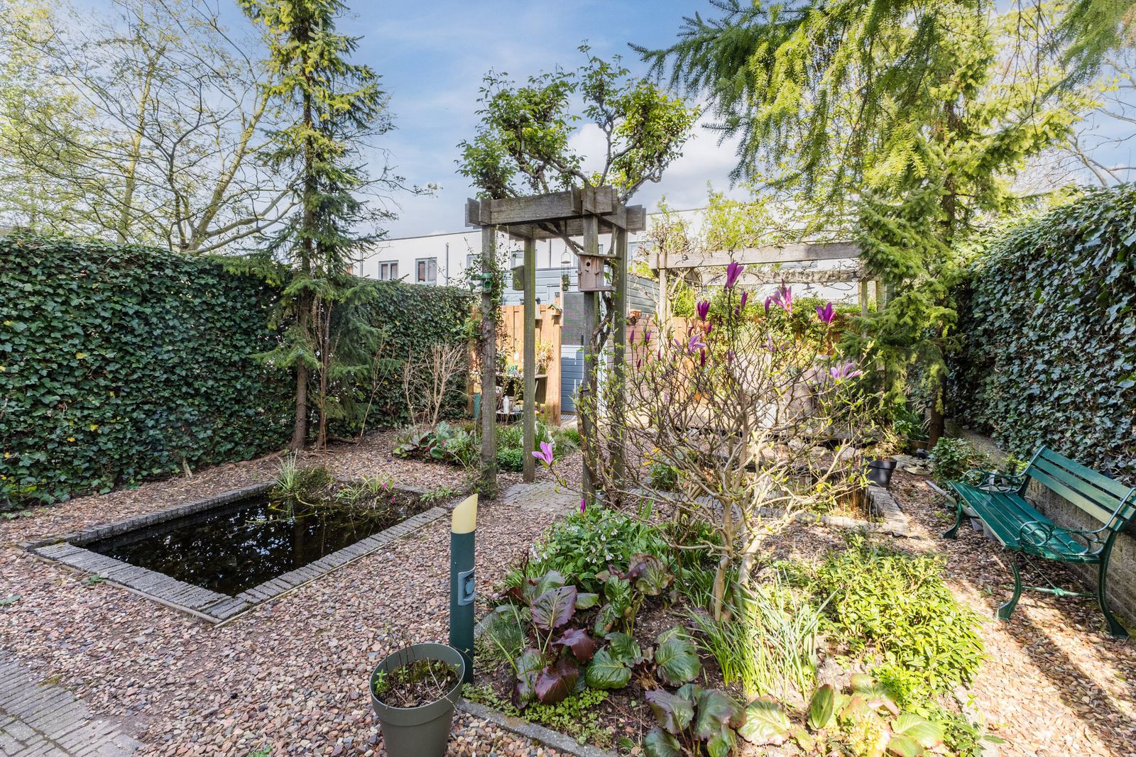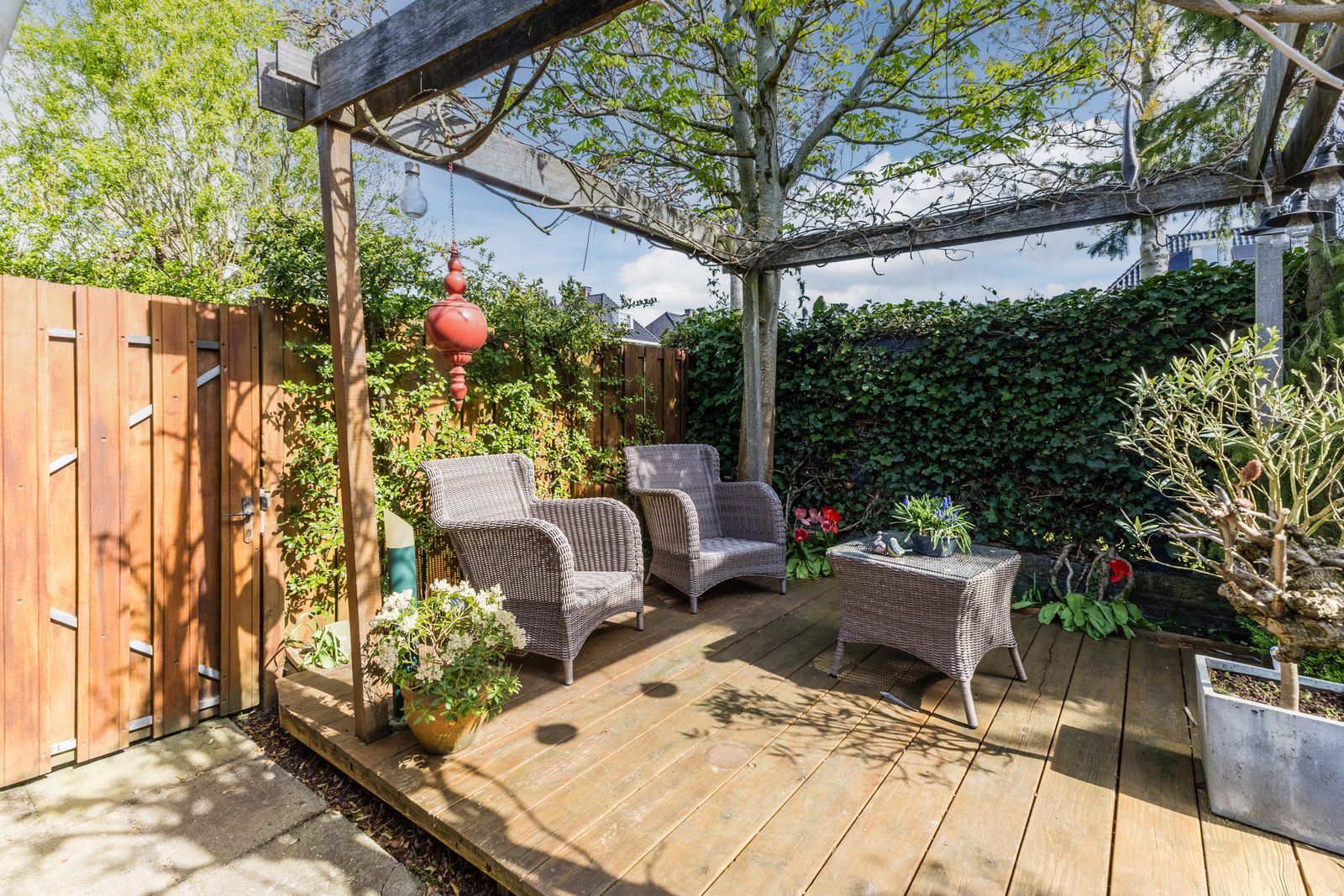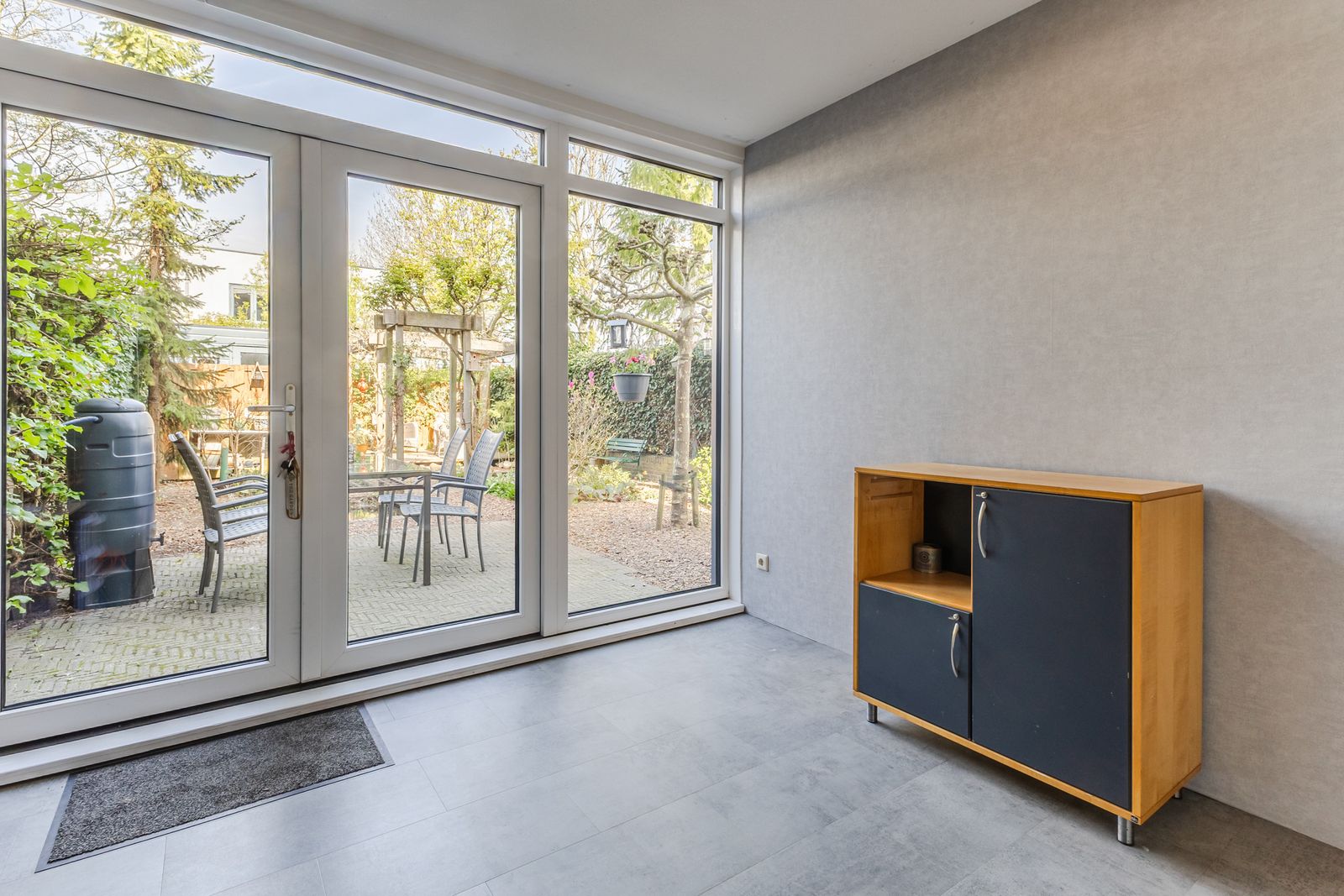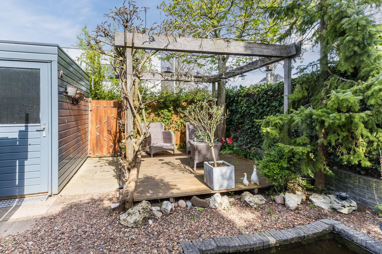 Aan de achterzijde van de woning is er een grote tuinkamer die ook als praktijkruimte ingericht kan worden. De kamer is voorzien van twee openslaande deuren naar de tuin die volledig is ingericht met aan de woning een terras voor een tuinset.