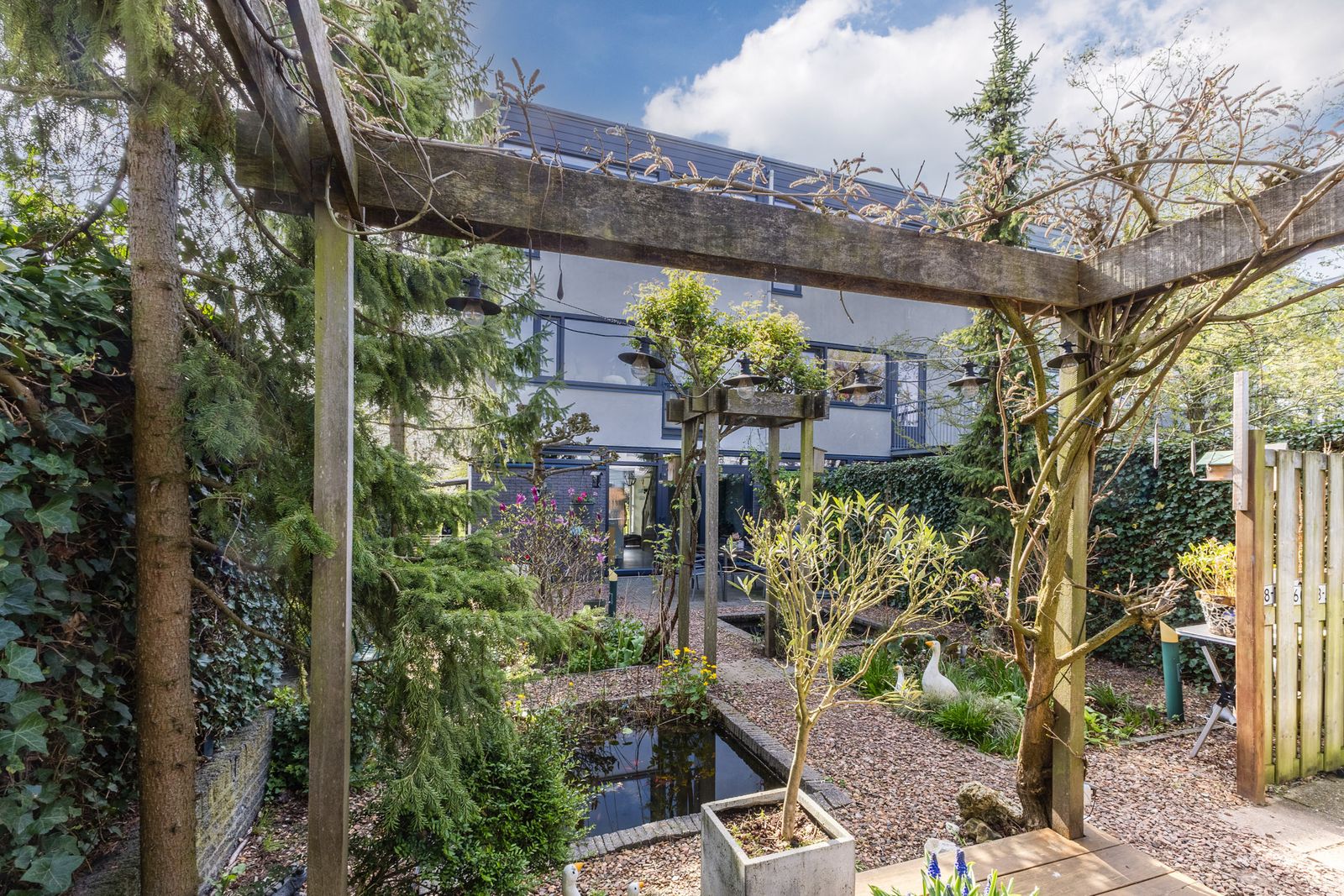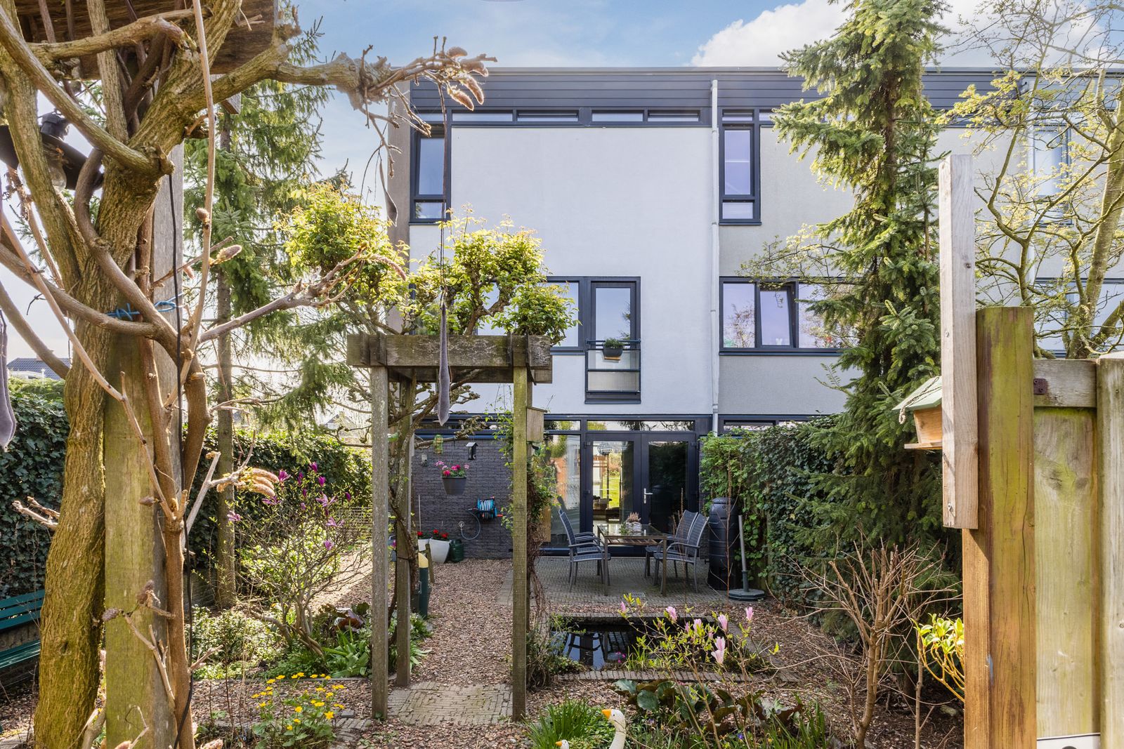 Er is een achterpad dat met fietsen toegang geeft naar de tuin en uitgang richtring de Vogelensanglaan.