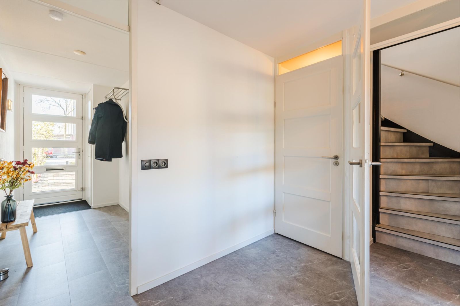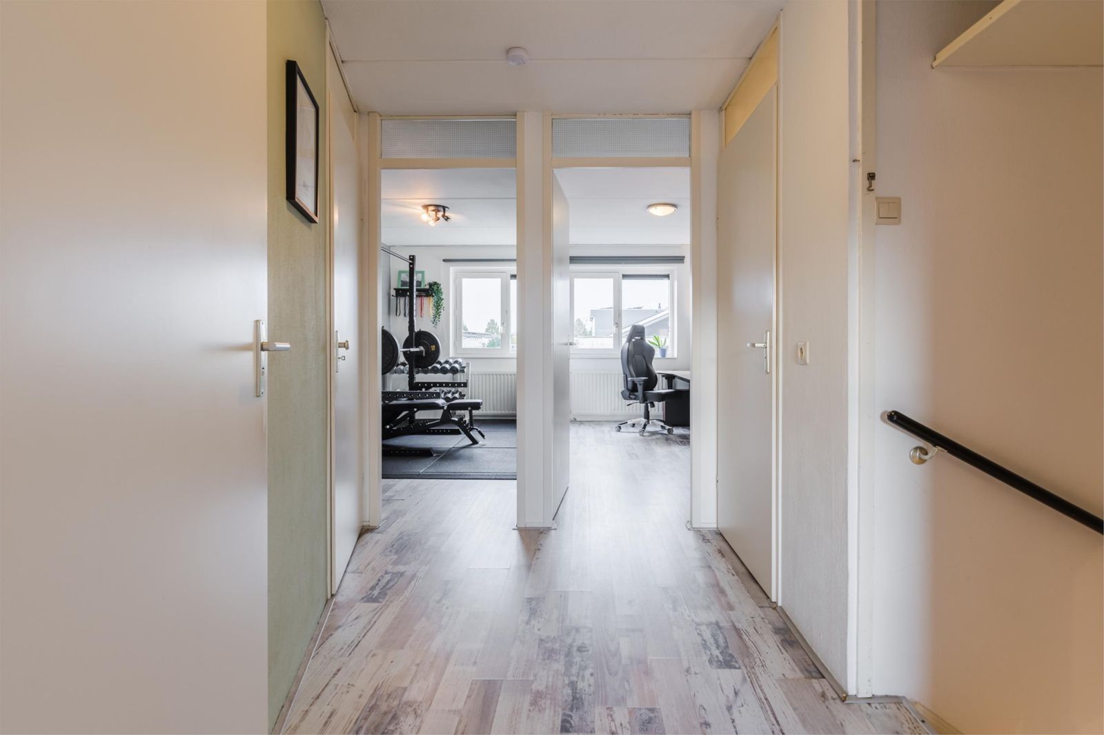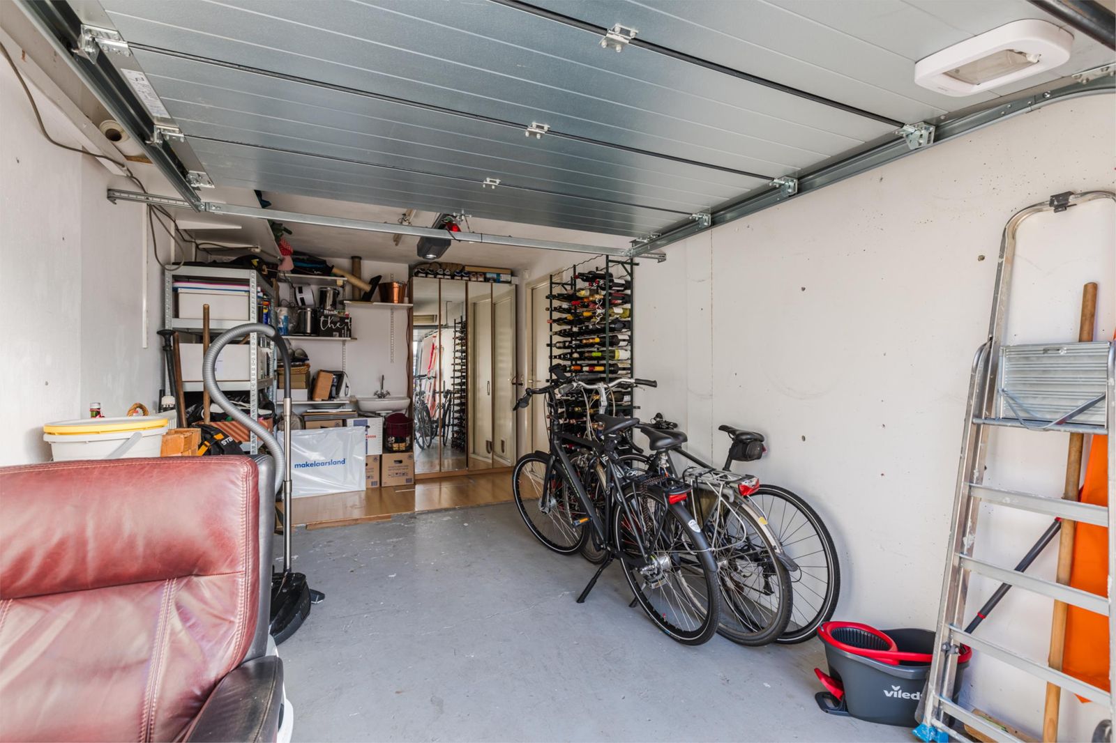 De inpandige garage (ca. 16 m²) is bereikbaar vanaf de begane grond en biedt volop mogelijkheden voor opslag, hobbyruimte of werken aan huis. De begane grond is voorzien van vloerverwarming.
