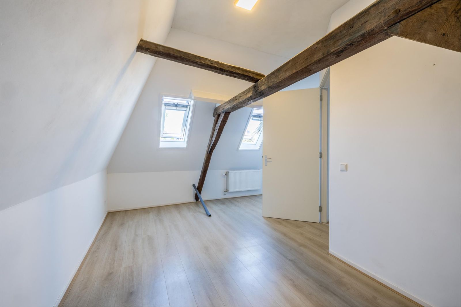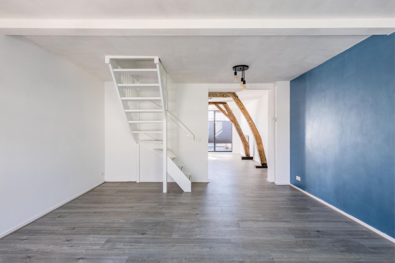 Bij binnenkomst in het appartement kom je in de grote woonkeuken met uitzicht op het eigen dakterras dat veel privacy biedt. Aansluitend ligt de ruime en lichte woonkamer waar de bovenramen zijn voorzien van het karakteristieke glas in lood ramen.
