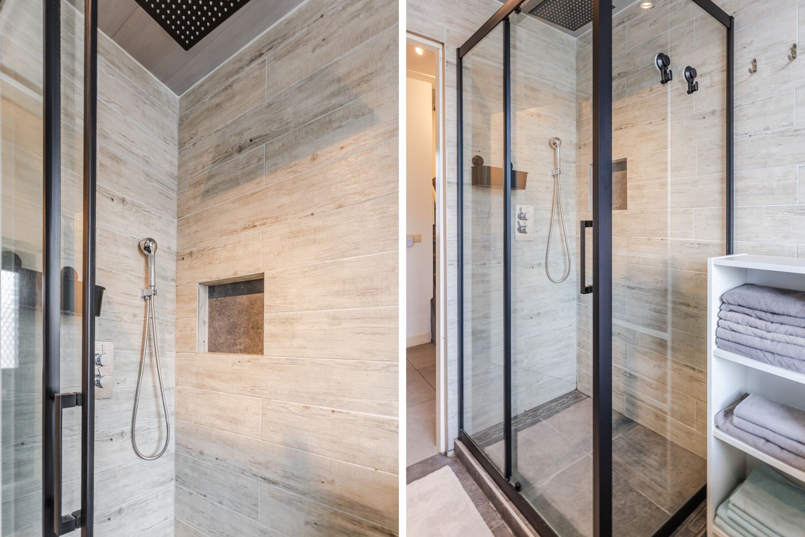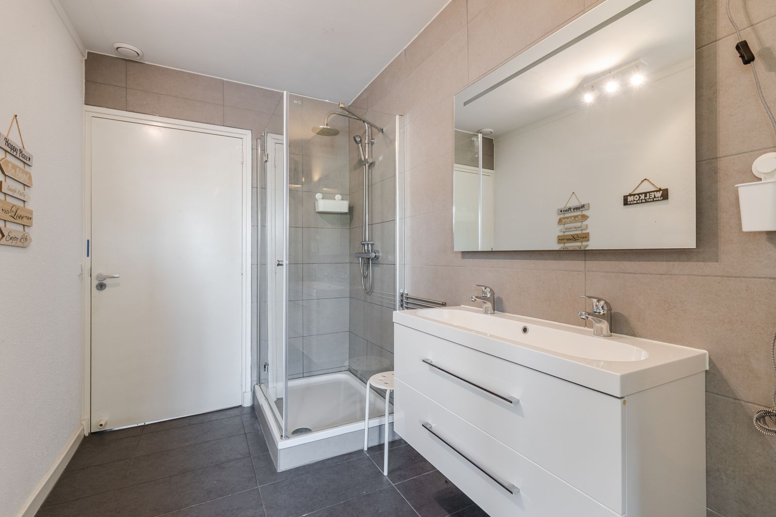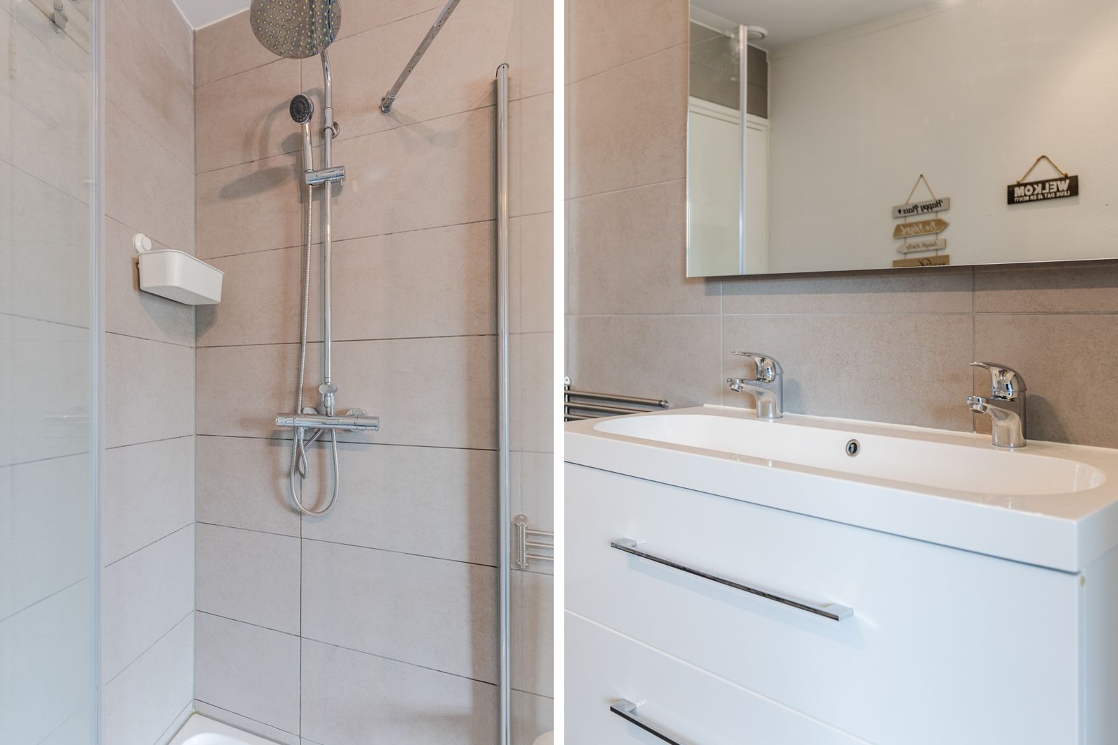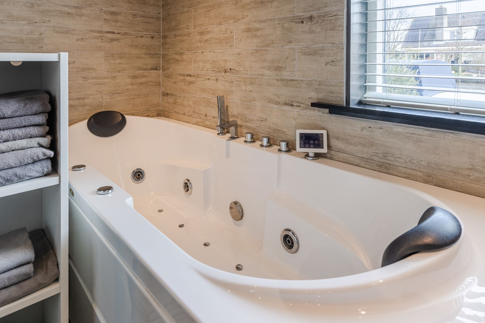 Hier vindt u ook meteen de pas gerenoveerde badkamer. Compleet uitgevoerd met 2-persoons jacuzzi, regendouche en dubbele wastafel. De ruimte is efficiënt ingericht en biedt alles wat u nodig heeft voor het dagelijkse comfort.