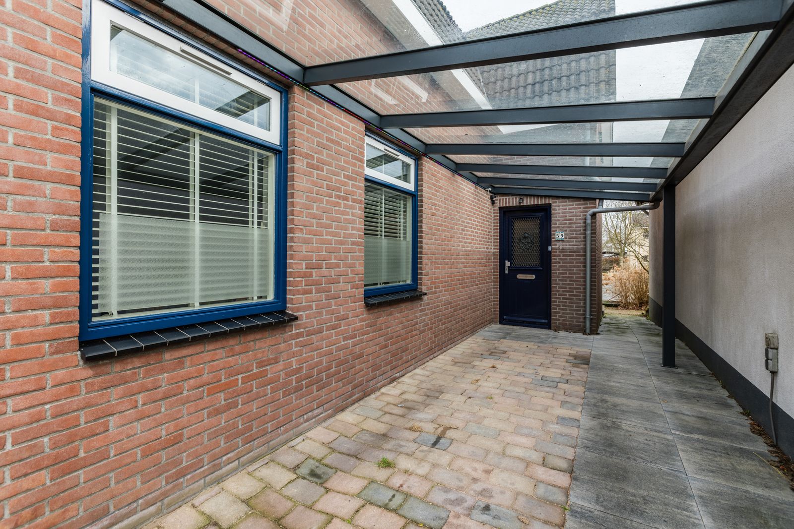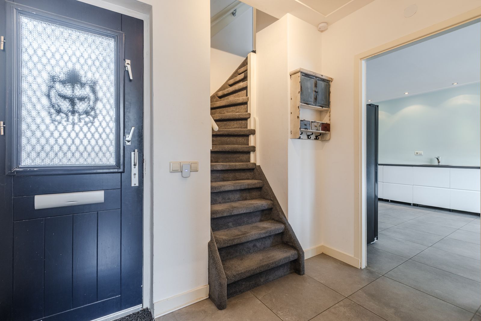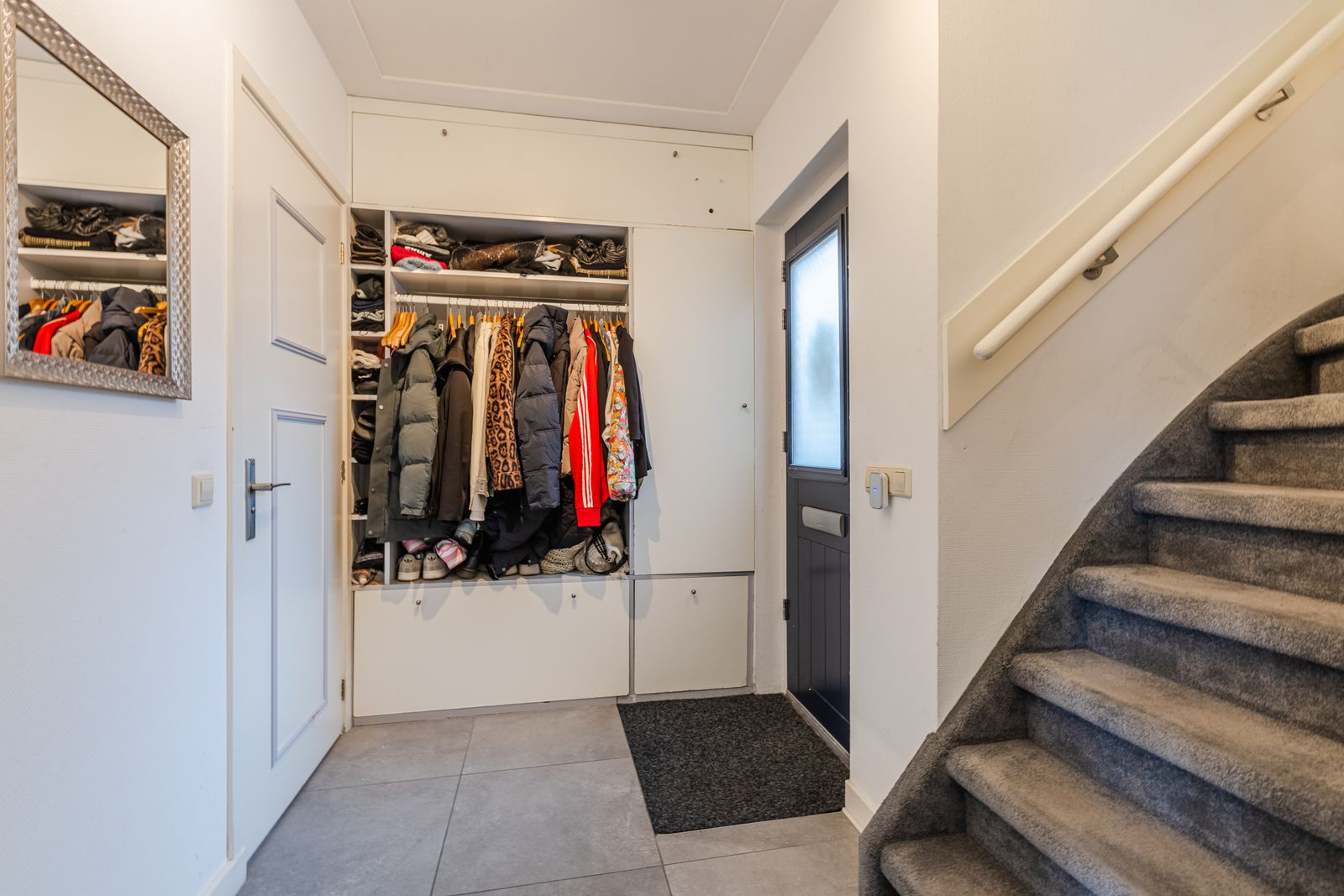 U parkeert uw auto onder de carport en via de entree komt u binnen in een ruime hal met garderobe, toilet en de trap naar boven.