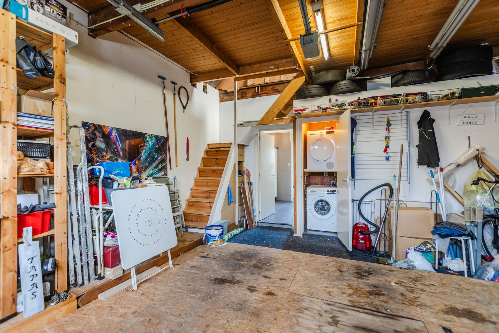 Naast het huis is er een grote garage met automatische roldeur. U kunt uw auto en uw fietsen veilig parkeren en er is ruimte voor opslag van goederen. Er is een kast met extra aansluiting voor wasmachine en droger. Boven de garage is een grote zolder met toegang tot het dakterras.
