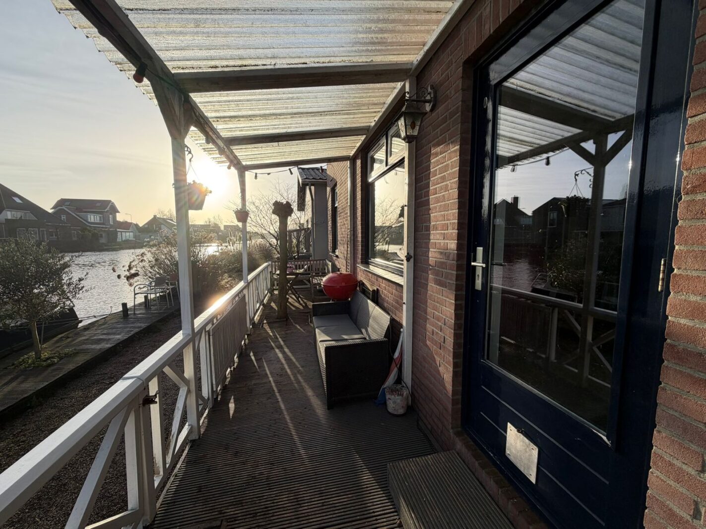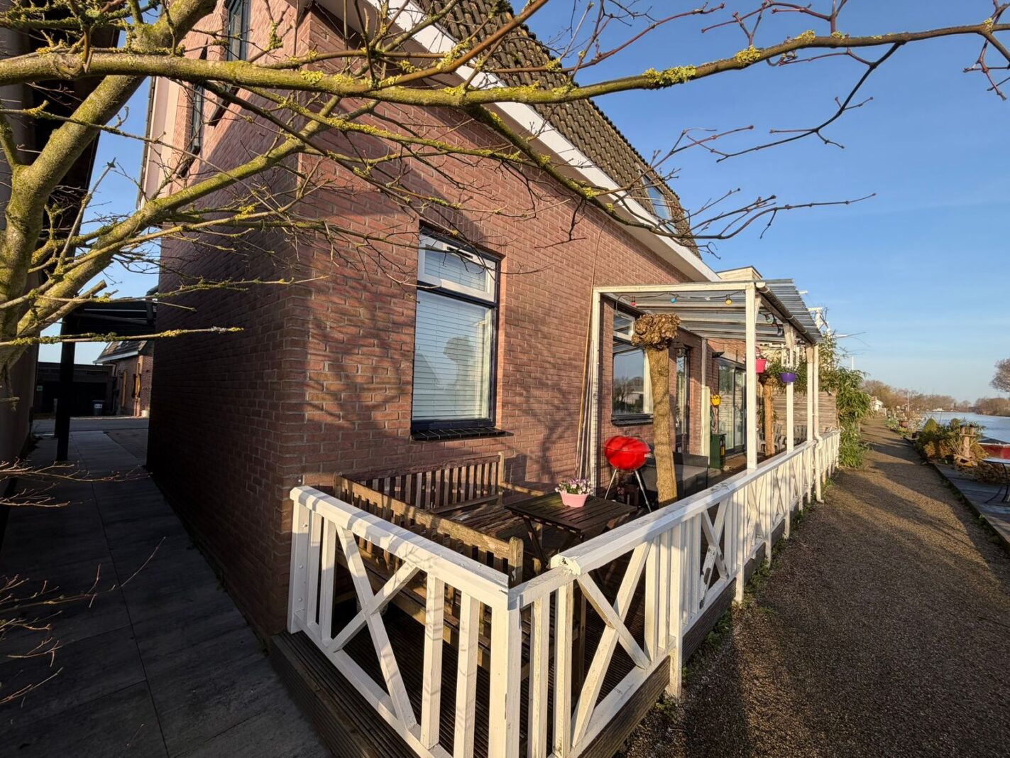 De veranda met een lengte van 13 meter, direct aan de Rijn, biedt een fenomenale plek om te genieten van de ochtendzon, het vrije uitzicht en de rust van het landelijke leven. Hier ervaart u het ultieme buitengevoel: ’s ochtends een kop koffie aan het water, even vissen of een duik in het water op een warme middag en ’s avonds dineren aan het water terwijl de zon ondergaat aan het eind van de Oude Rijn. De veranda vormt een heerlijke beschutte plek waar u vrijwel het hele jaar door buiten kunt zitten.