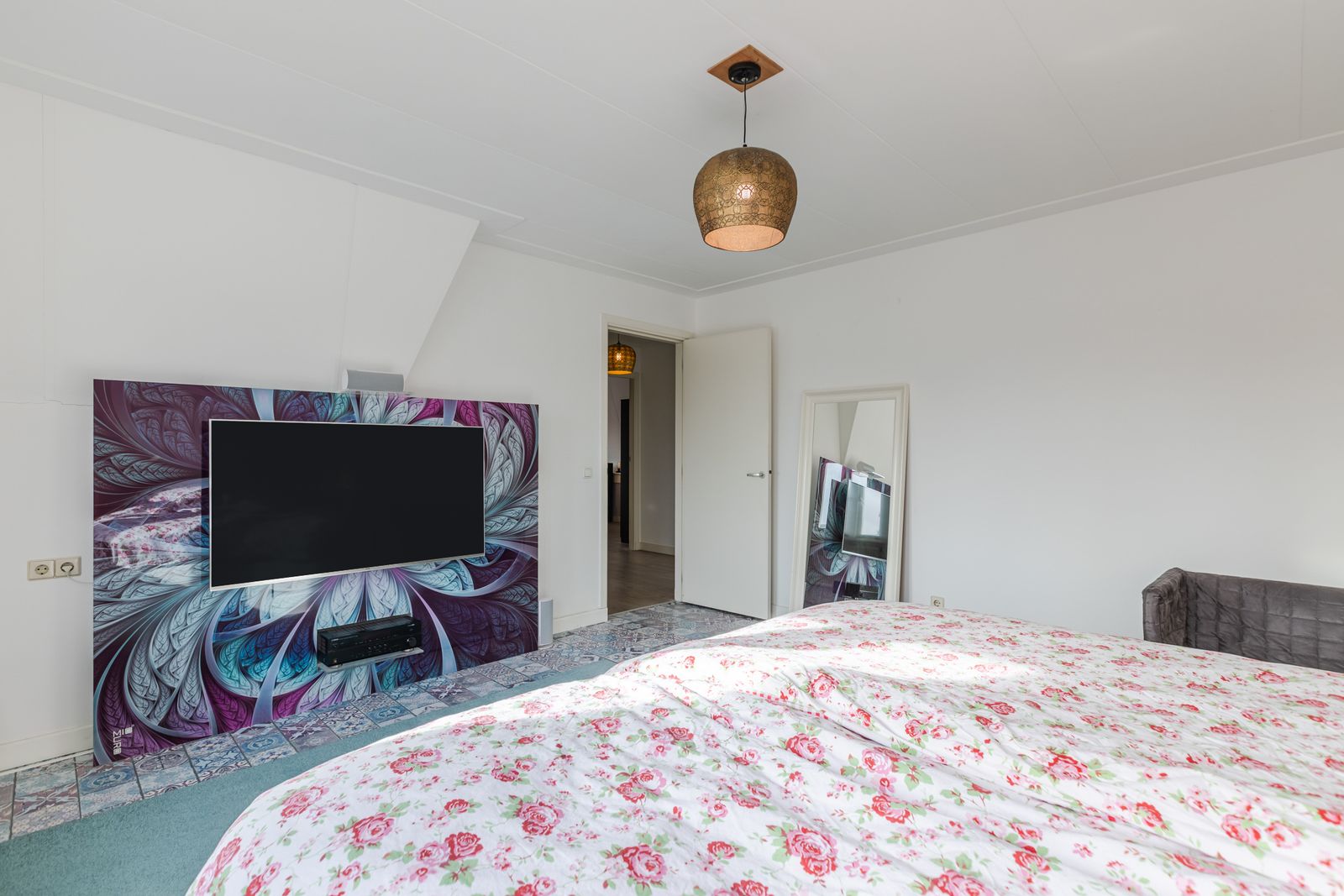 De hoofdslaapkamer is royaal van formaat en geniet van een prachtig uitzicht over de Rijn en de beroemde tolbrug van Nieuwerbrug.