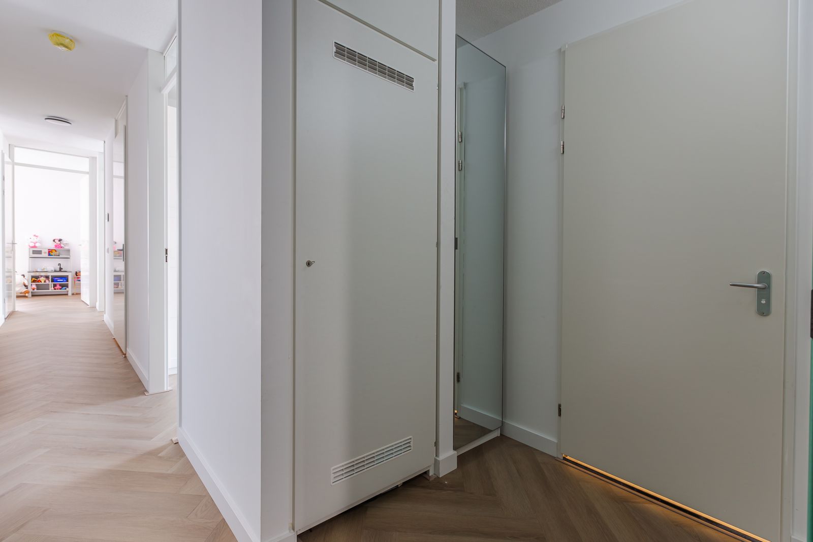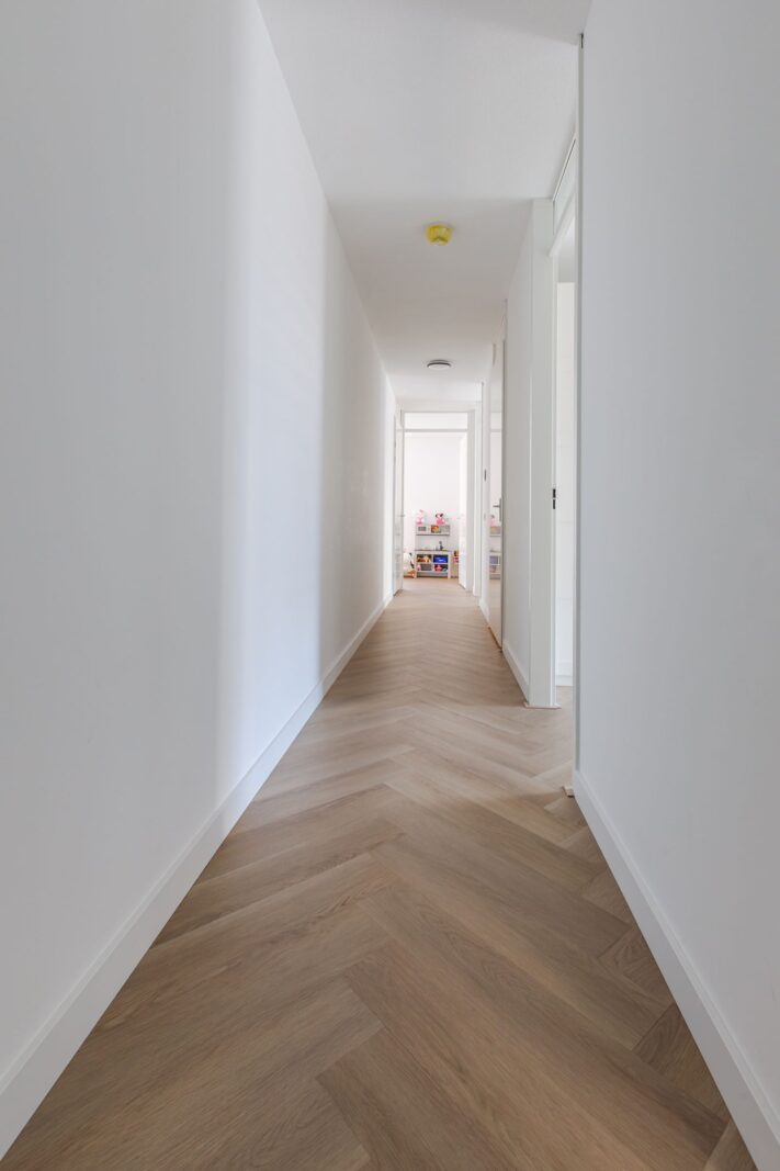 Upon entering, you immediately experience the sense of space and quality. The hallway provides access to all rooms and leads you to the spacious living room. Thanks to the large windows, this is a wonderfully bright living space where you will instantly feel at home. There is plenty of room for a cozy seating area and a large dining table.