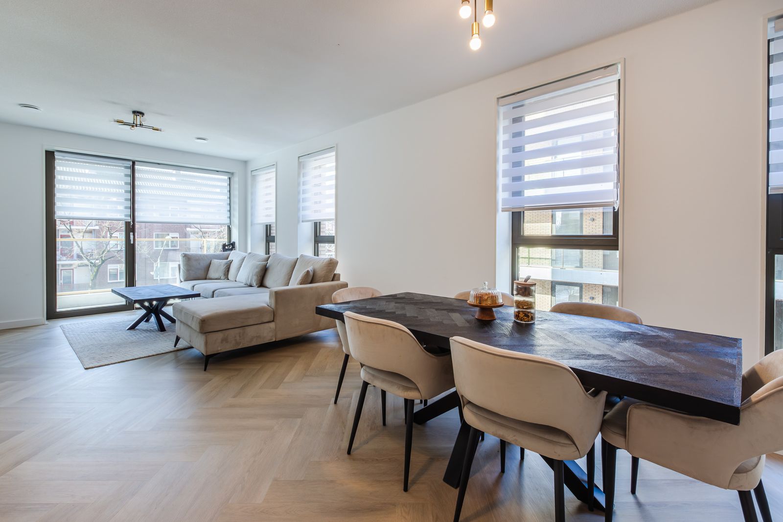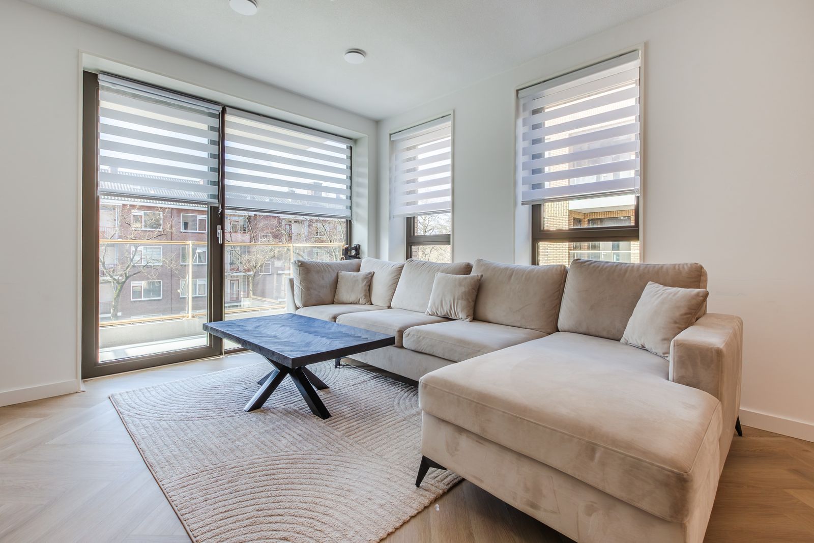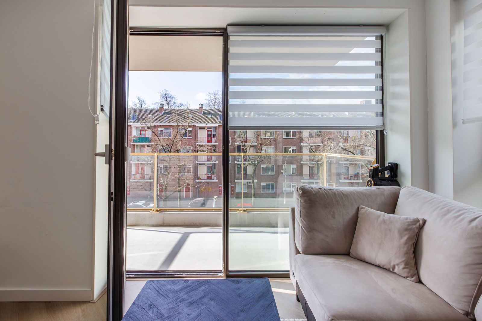 Zeer licht appartement door grote ramen
