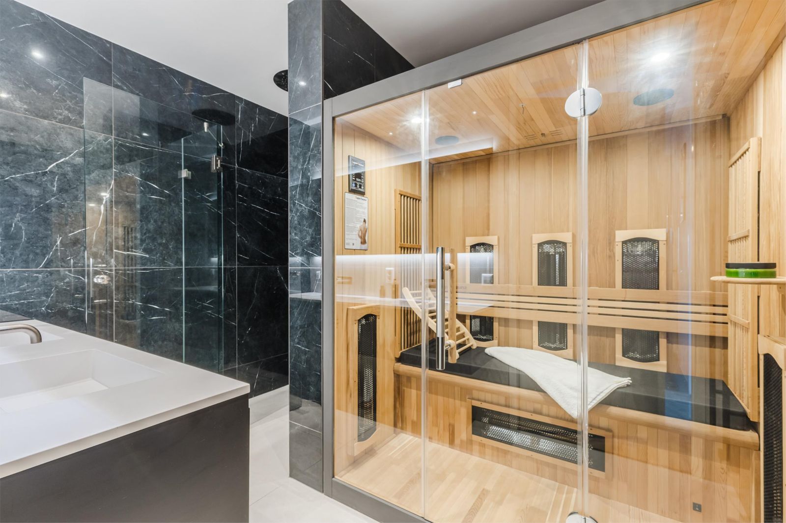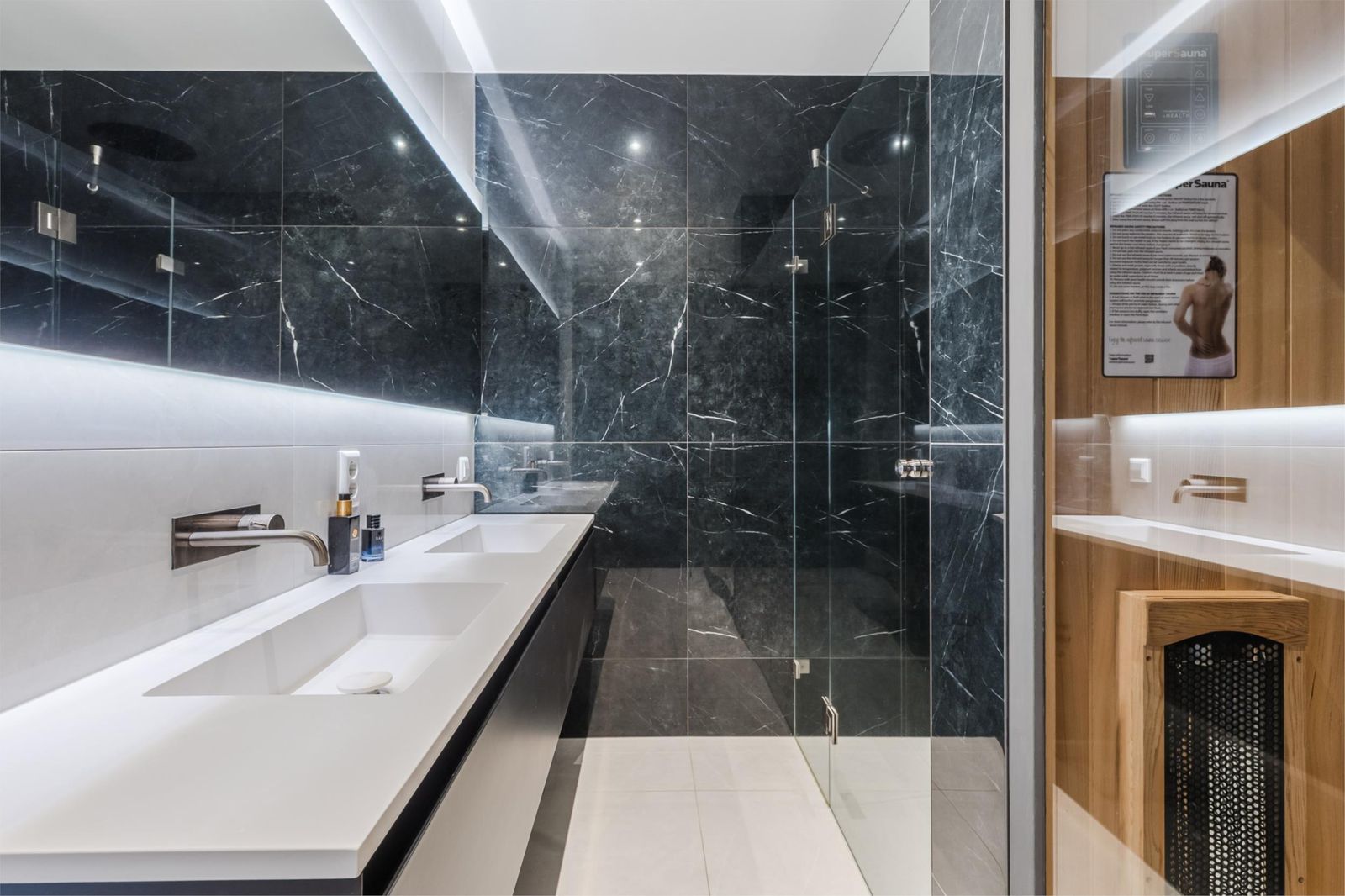 The entire residence is air-conditioned and equipped with the latest technologies, including underfloor heating, smart home system, solar panels and a heat pump. A private parking space with EV charging point and a generous 22 m² storage room are located in the underground garage.