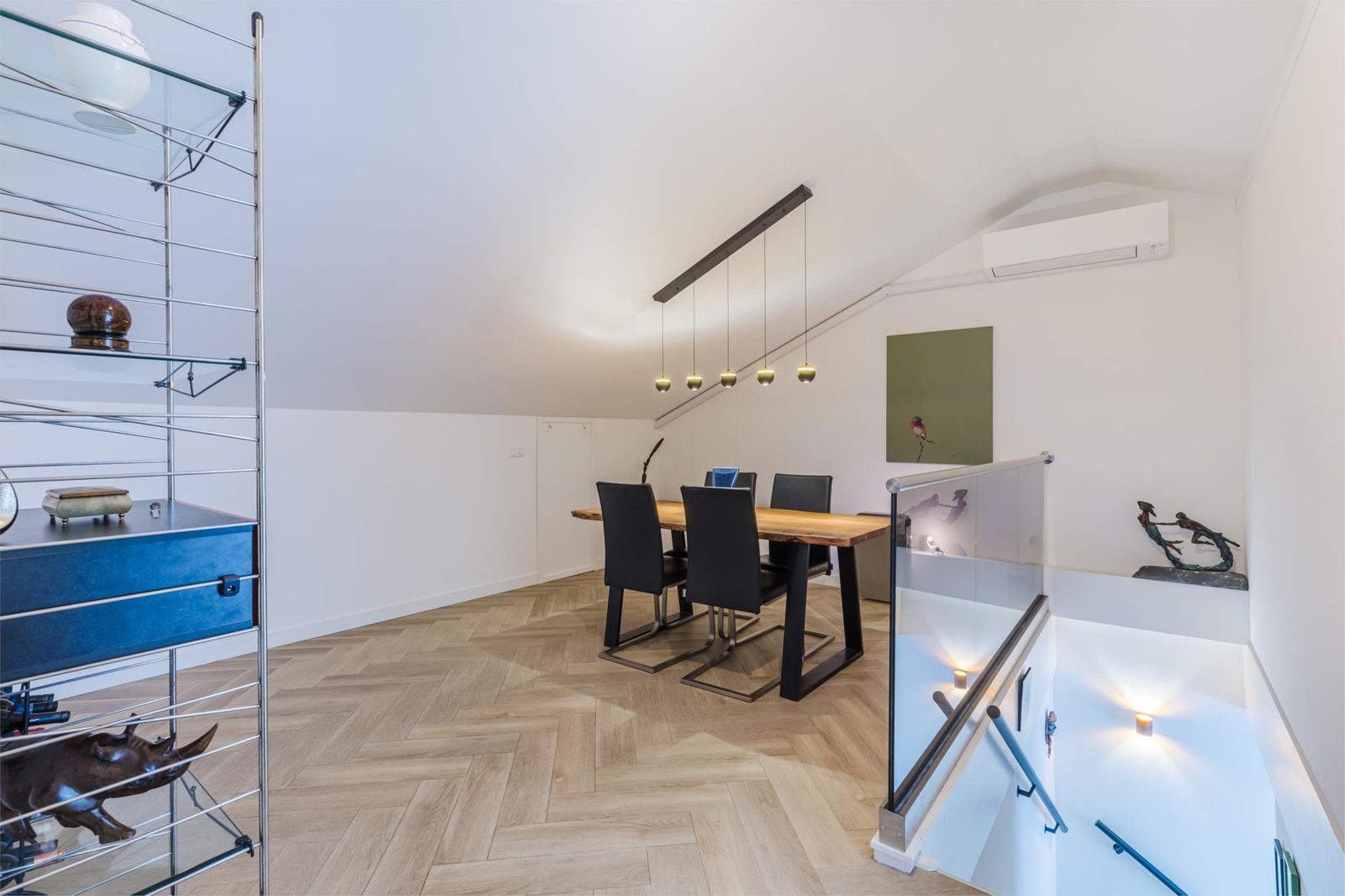 De gehele woning is voorzien van airconditioning en uitgerust met moderne technieken, waaronder vloerverwarming, domotica, zonnepanelen en een warmtepomp. In de ondergelegen garage bevindt zich een eigen parkeerplaats met laadpunt en een ruime berging van 22 m².