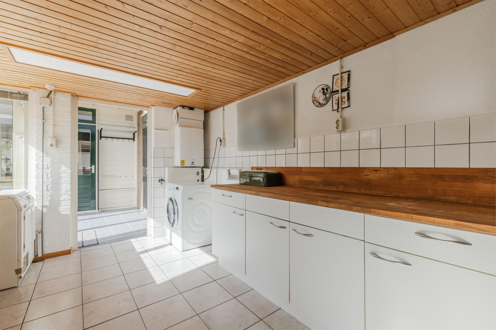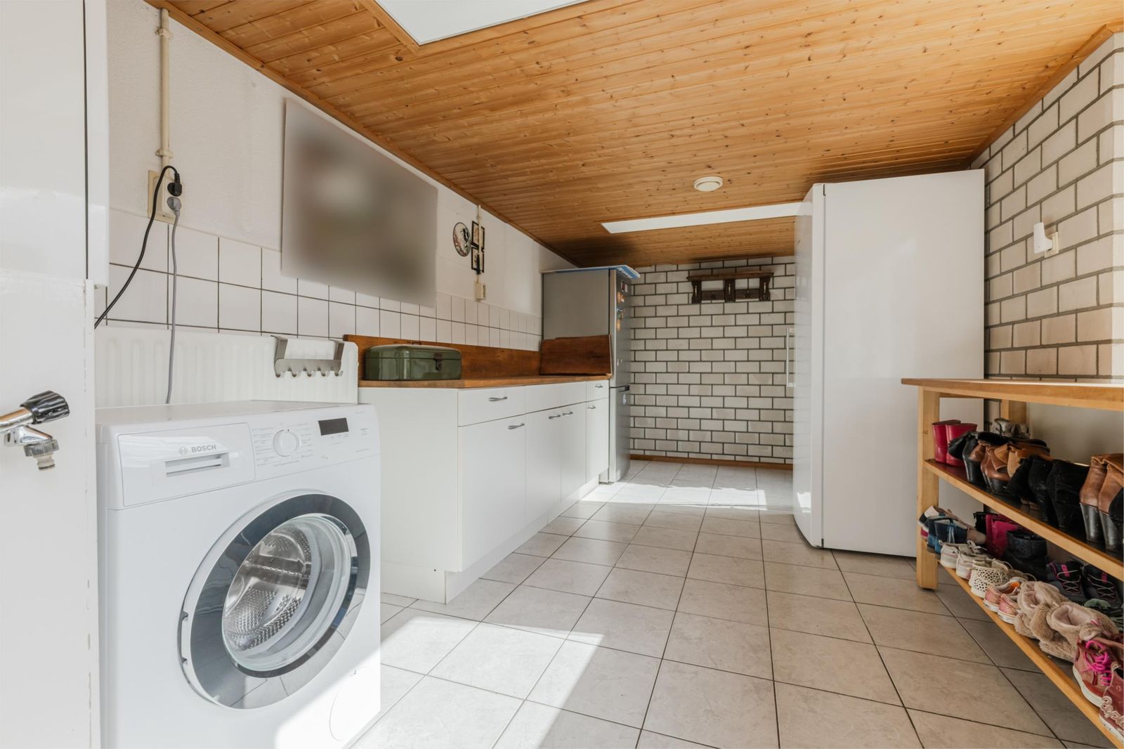 - Royale bijkeuken (ca. 13 m²) met extra keukenblok, opstelplaats voor wasmachine, droger en vriezer of extra koelkast.
