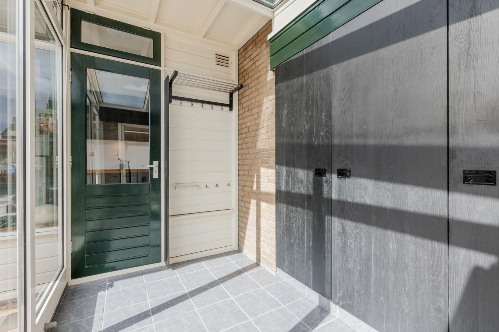 Via de oprit bereik je de meest gebruikte ingang: de praktische achterdeur. Je stapt binnen in een royale hal met ingebouwde schoenenkast en kapstok. Rechts ligt de ruime bijkeuken, links de moderne keuken.