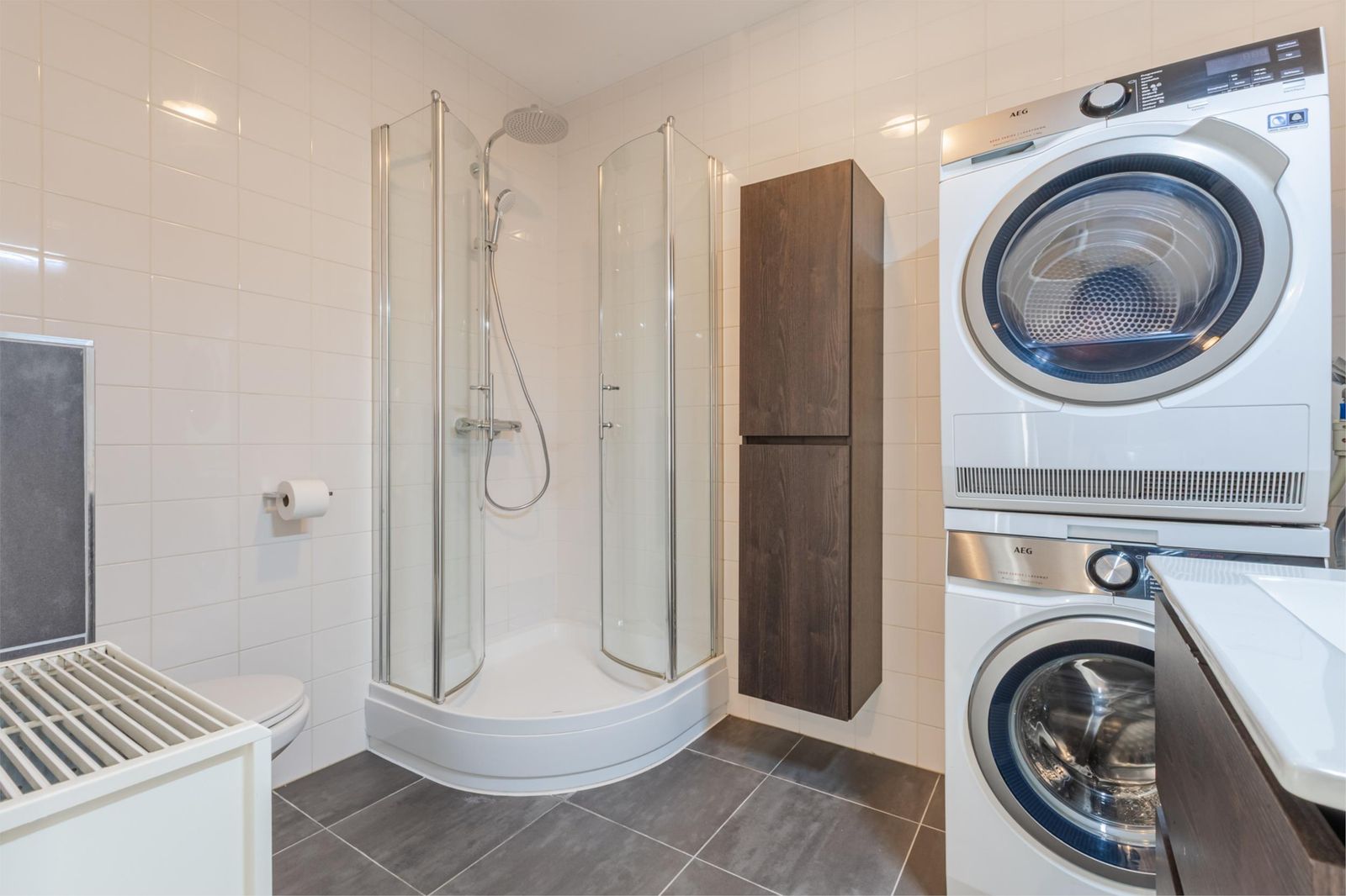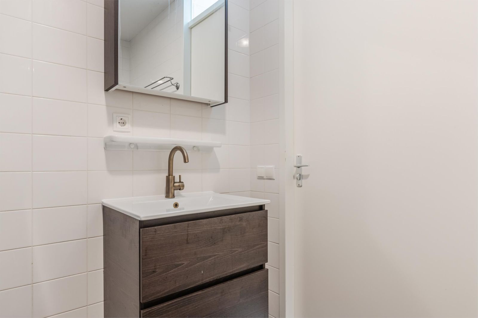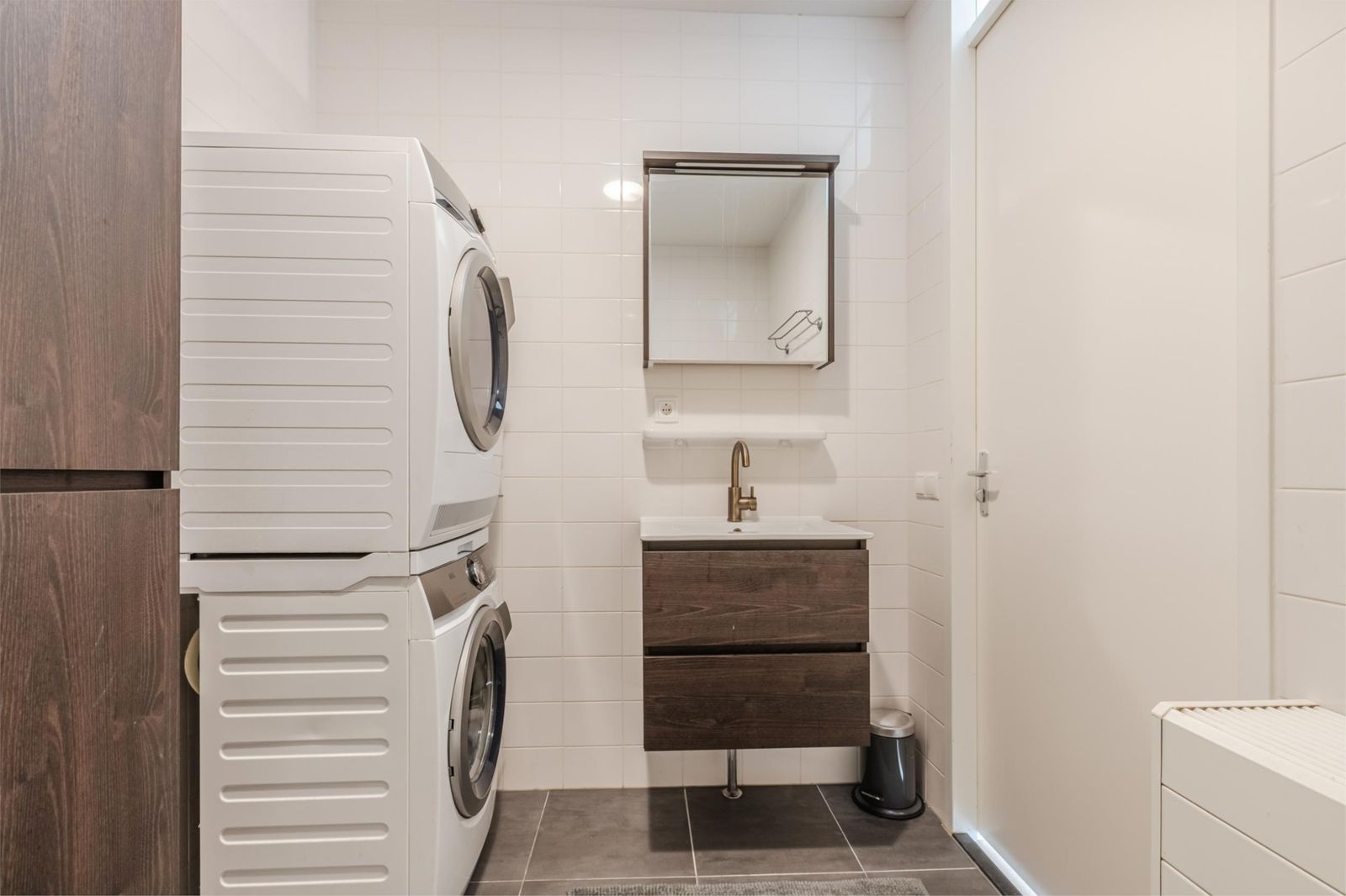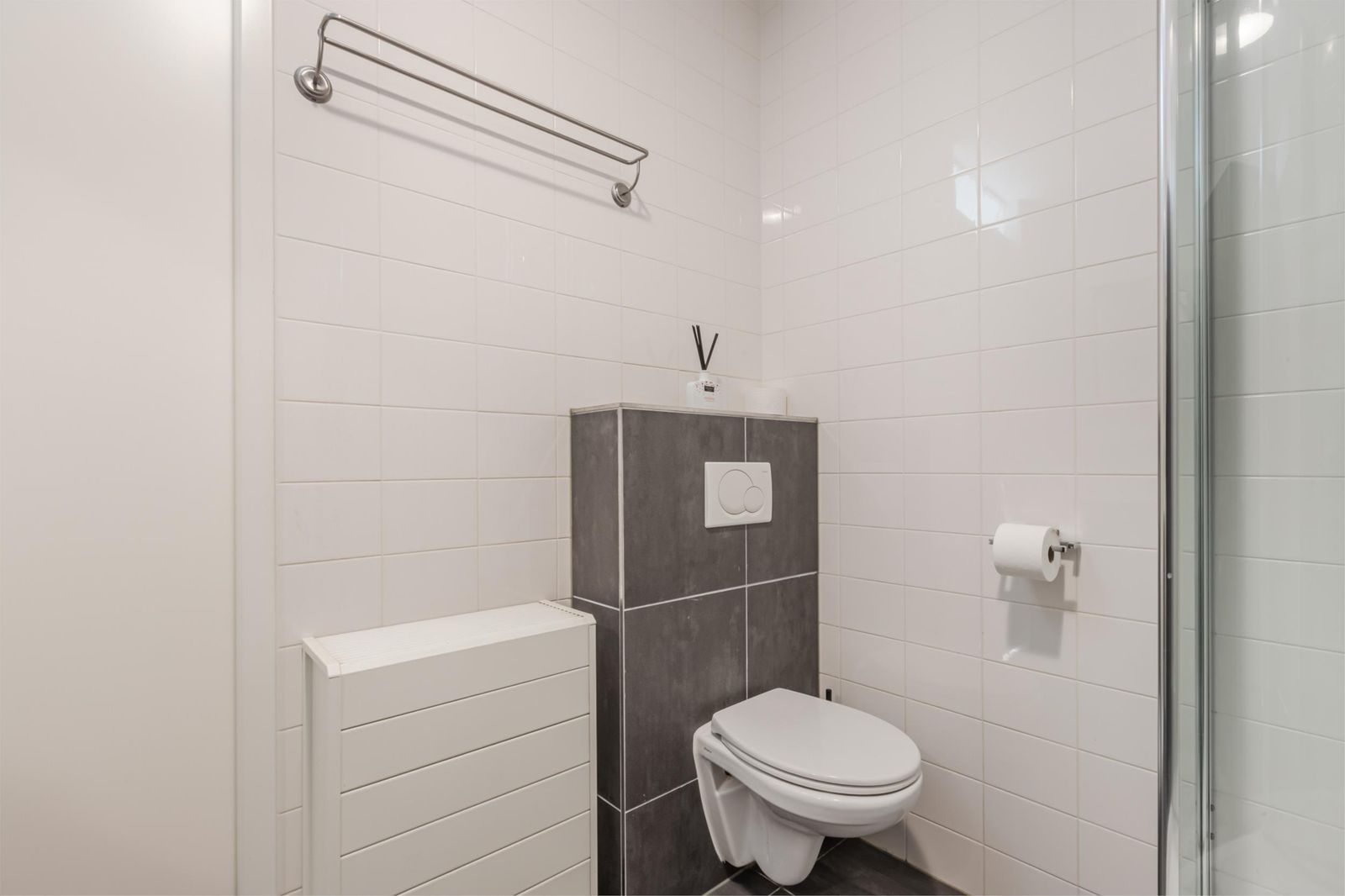 De slaapkamer ligt aan de tuin en biedt genoeg plek voor een tweepersoonsbed en een kledingkast. De badkamer is netjes en voorzien van alle basisvoorzieningen, waaronder een douchecabine, wastafelmeubel, toilet en aansluiting voor de wasmachine. Daarnaast beschik je over een eigen berging, ideaal voor fietsen of extra opslag.