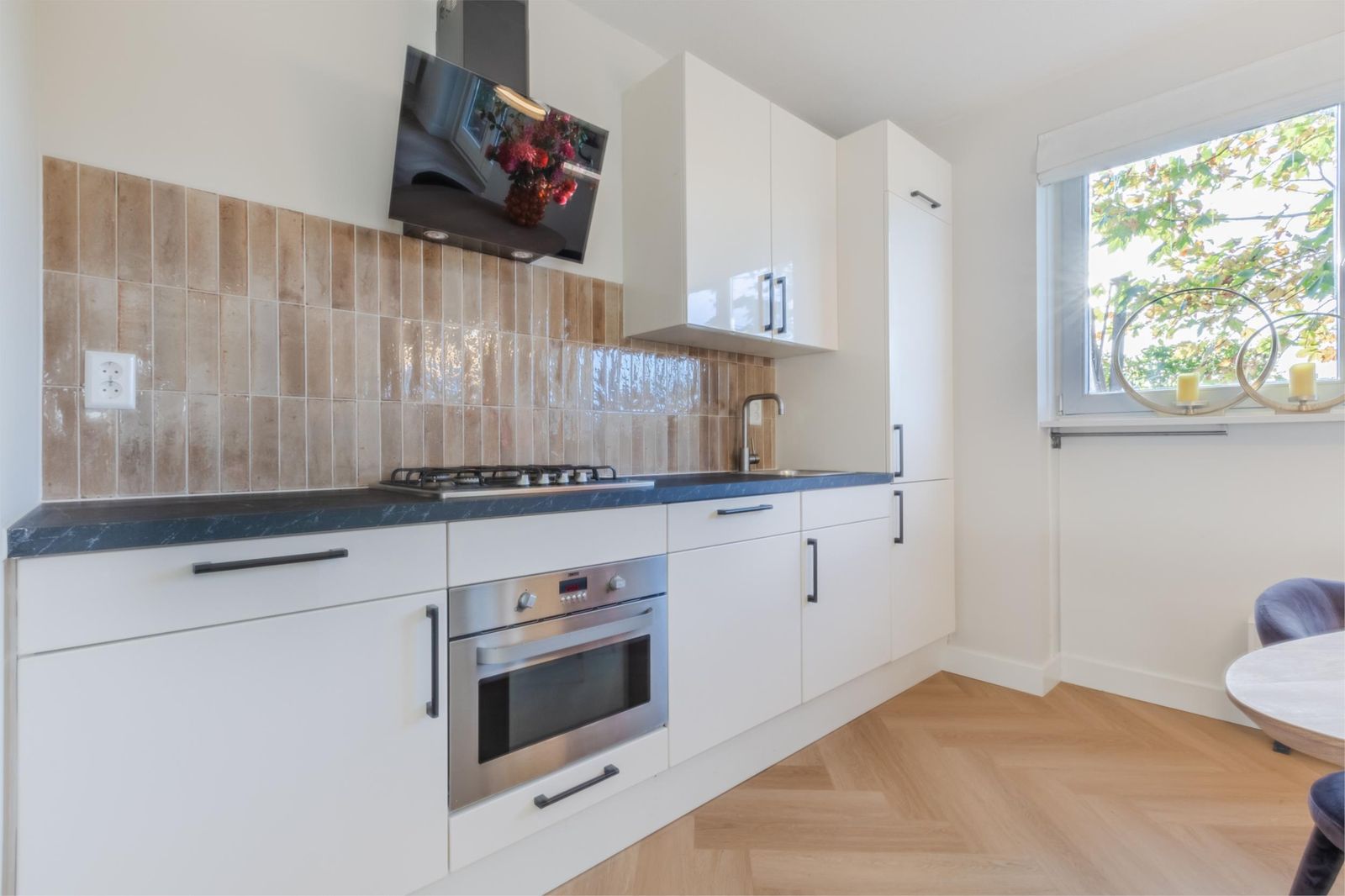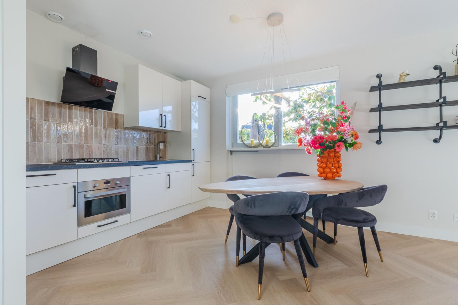 De keuken is praktisch ingedeeld en voorzien van diverse inbouwapparatuur, met voldoende werk- en opbergruimte voor dagelijks gebruik.