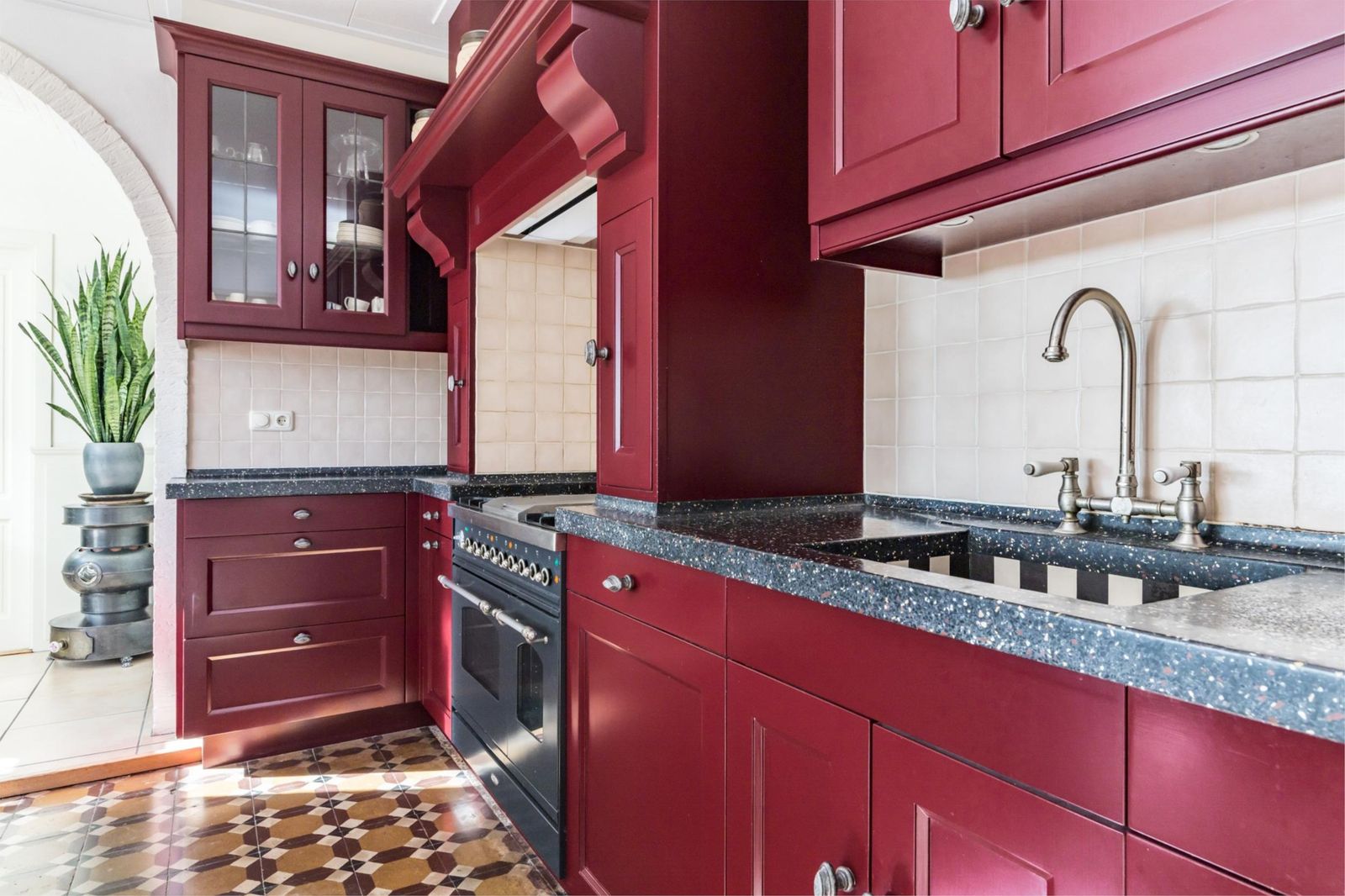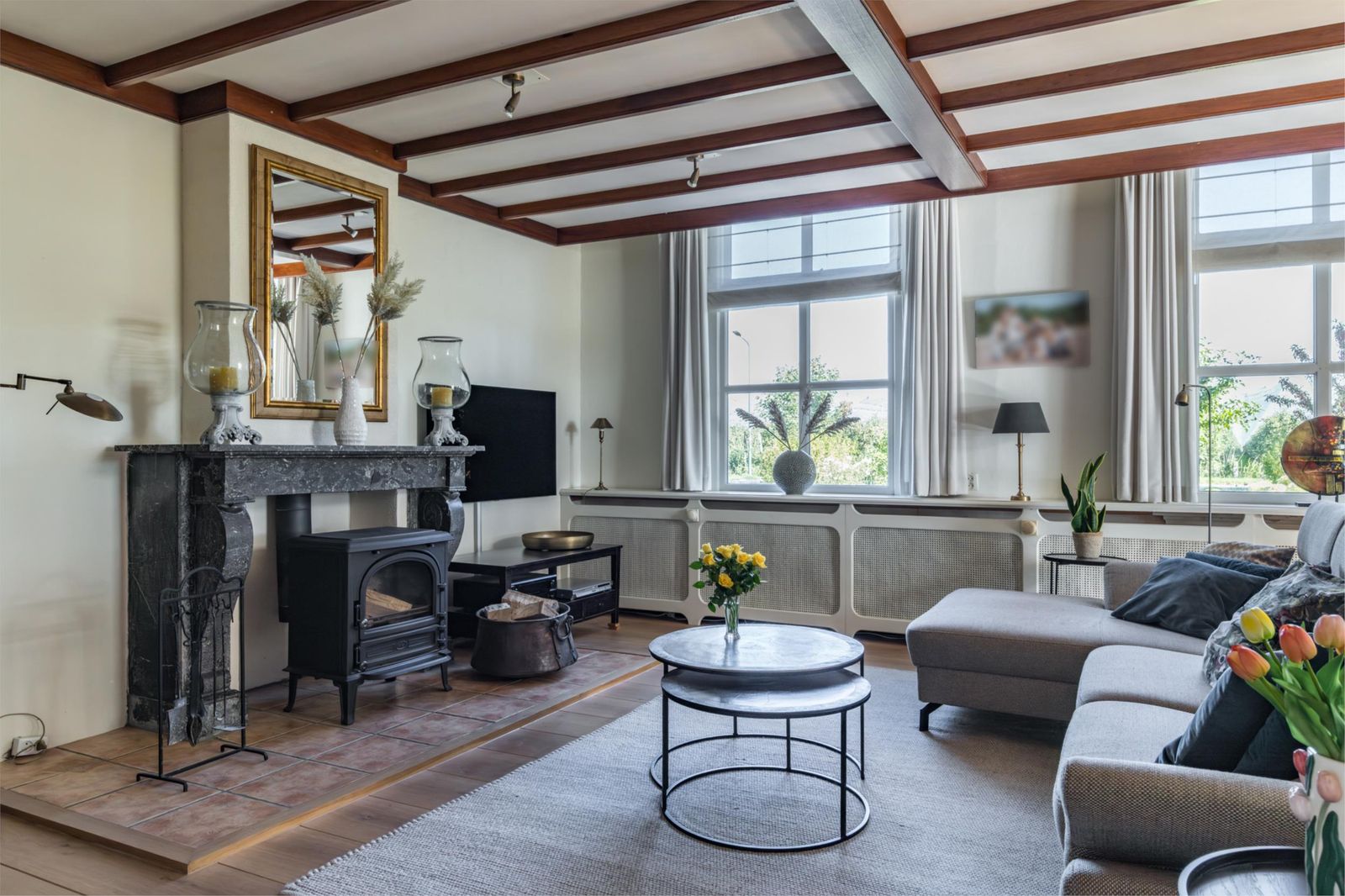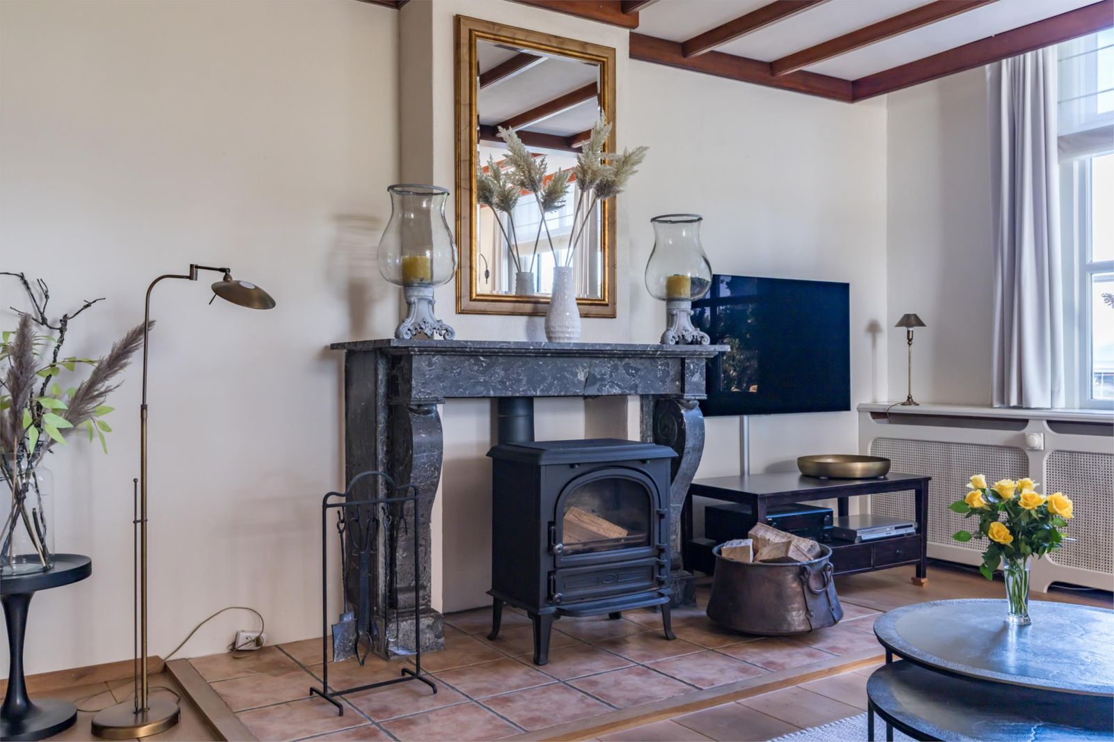 - Diverse originele details aanwezig, zoals de schouw, glas-in-loodraam en eerste legsteen
