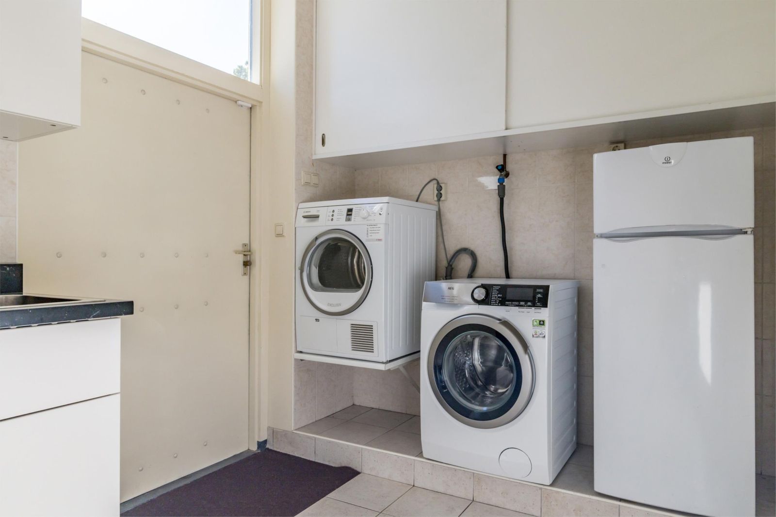 - Keuken voorzien van koelkast, gasfornuis met oven, afzuigkap, magnetron en vaatwasmachine