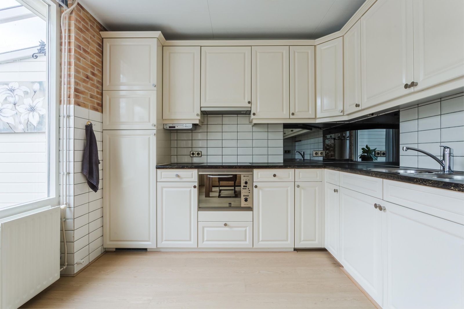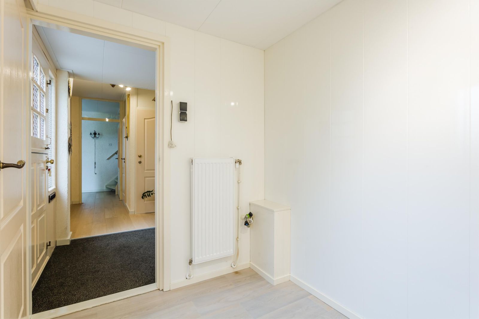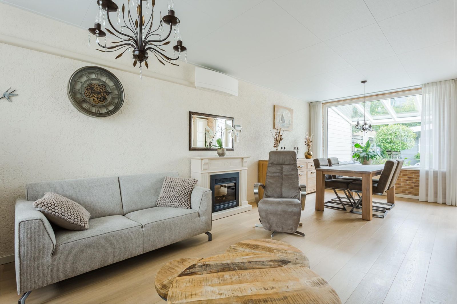 Entree, hal met meterkast, toilet, toegang tot de bijkeuken en de woonkamer. De woonkamer is straatgericht en heeft een airco en een open trap naar de eerst verdieping. De nette keuken met diverse inbouwapparaten is aan de achterzijde van de woning en geeft toegang tot de serre en de fraai aangelegde achtertuin met berging. In de bijkeuken is de wasmachineaansluiting.