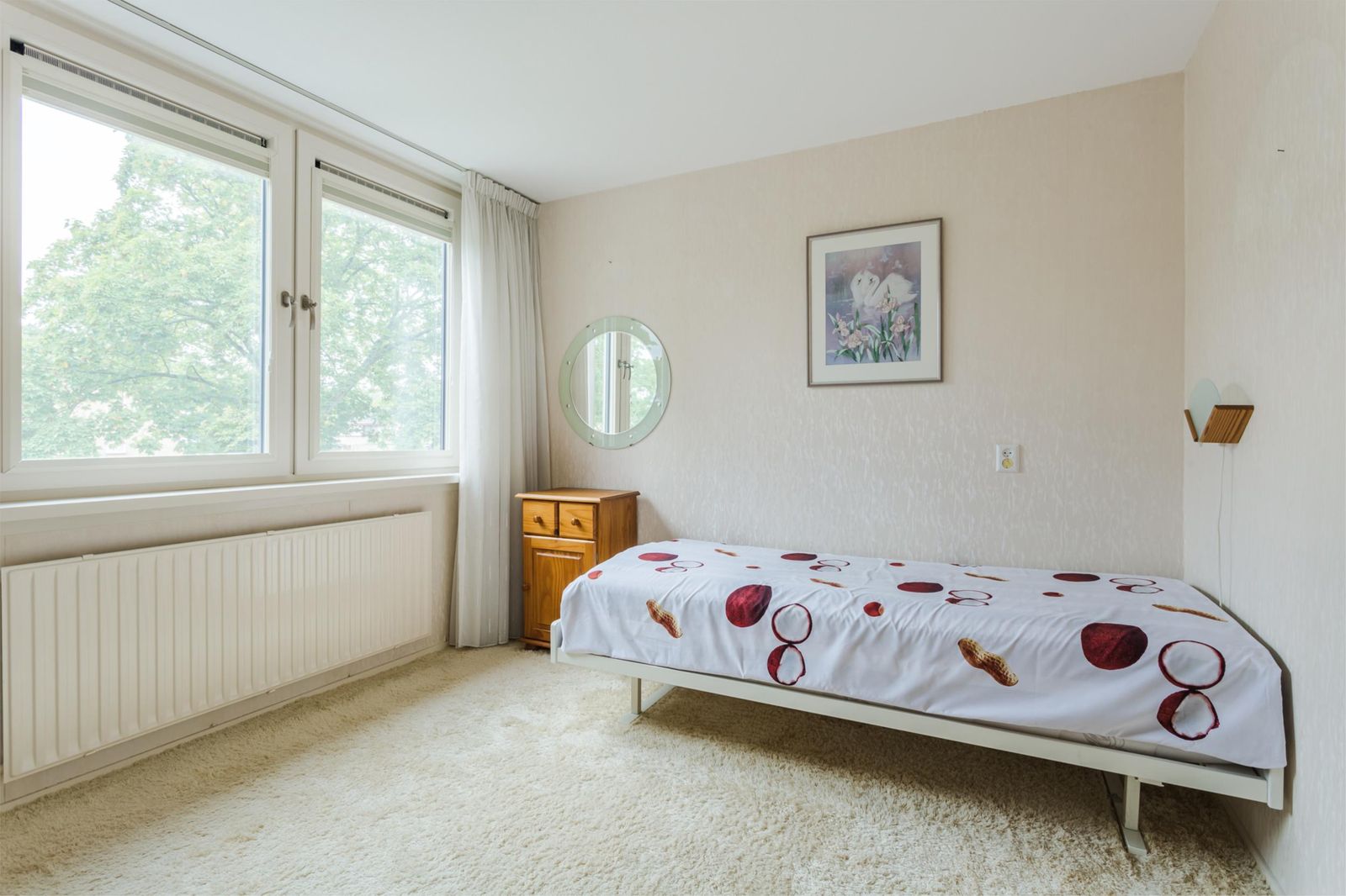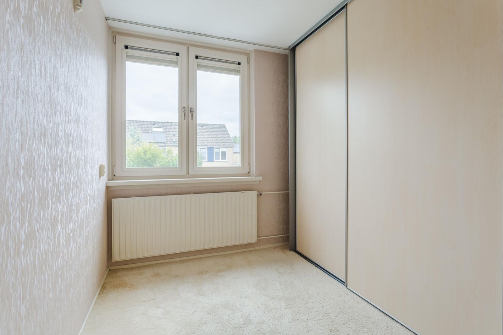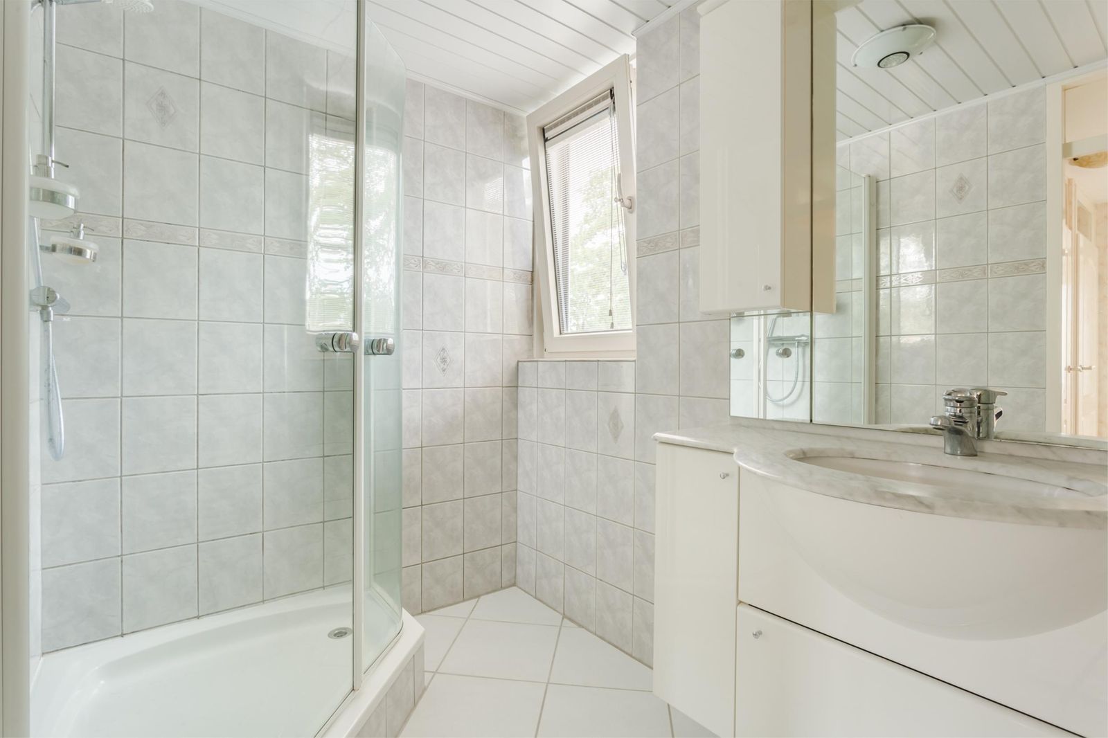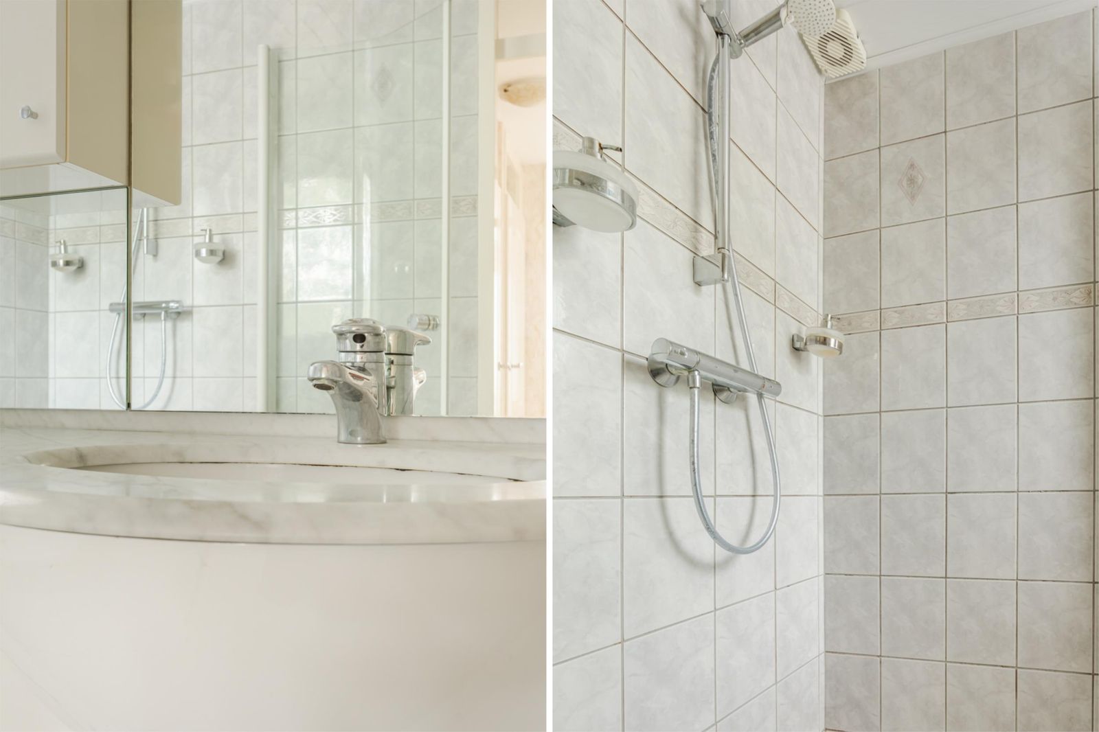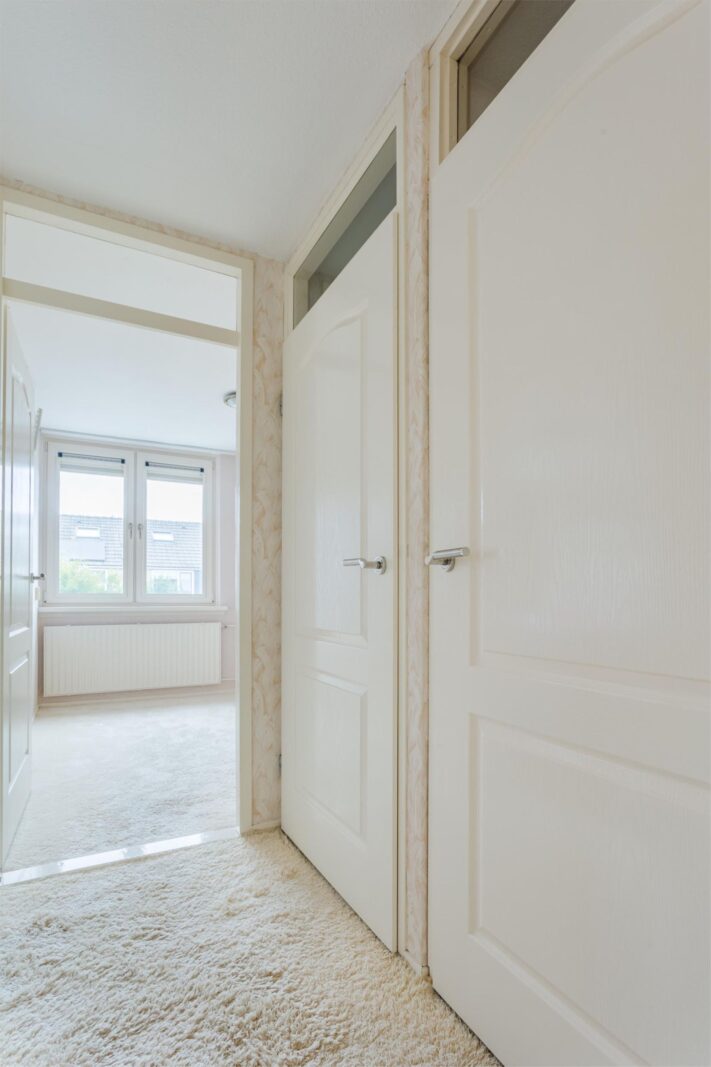 Overloop, drie slaapkamers, badkamer en een separaat toilet. Alle slaapkamers hebben een vaste kast. De badkamer is voorzien van een douche en een wastafel met meubel.