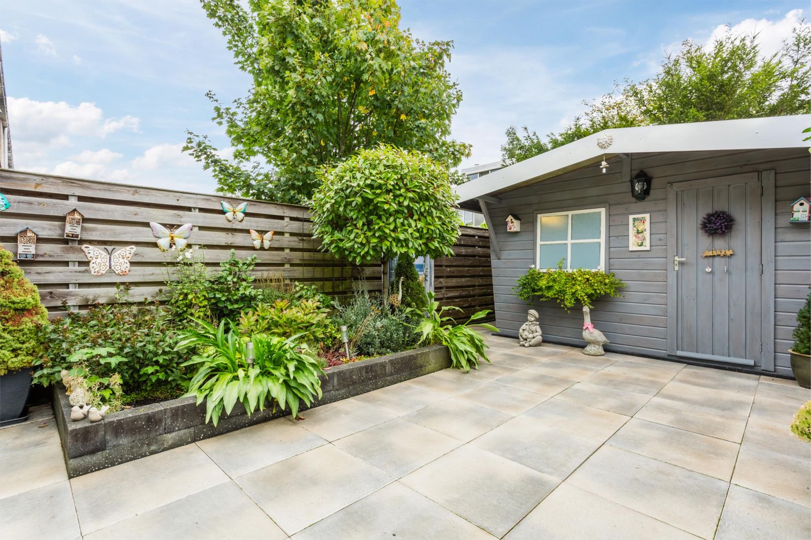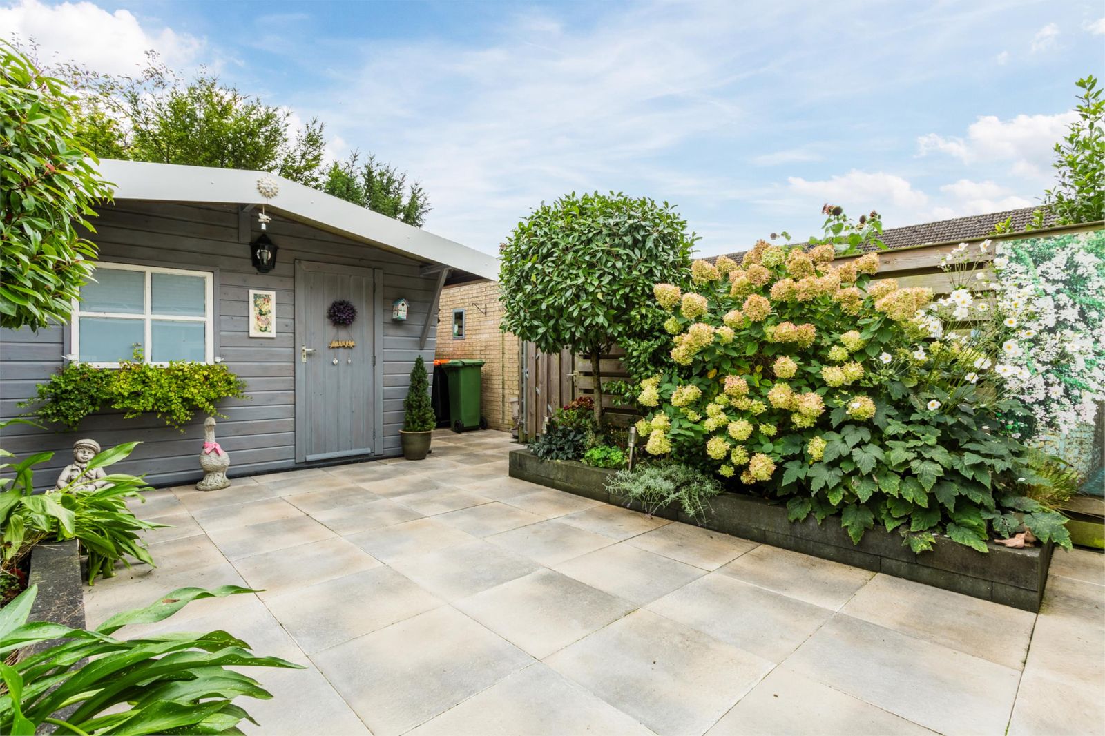 De voor en achtertuin zijn keurig aangelegd. De achtertuin heeft een riante serre en en een houten berging.