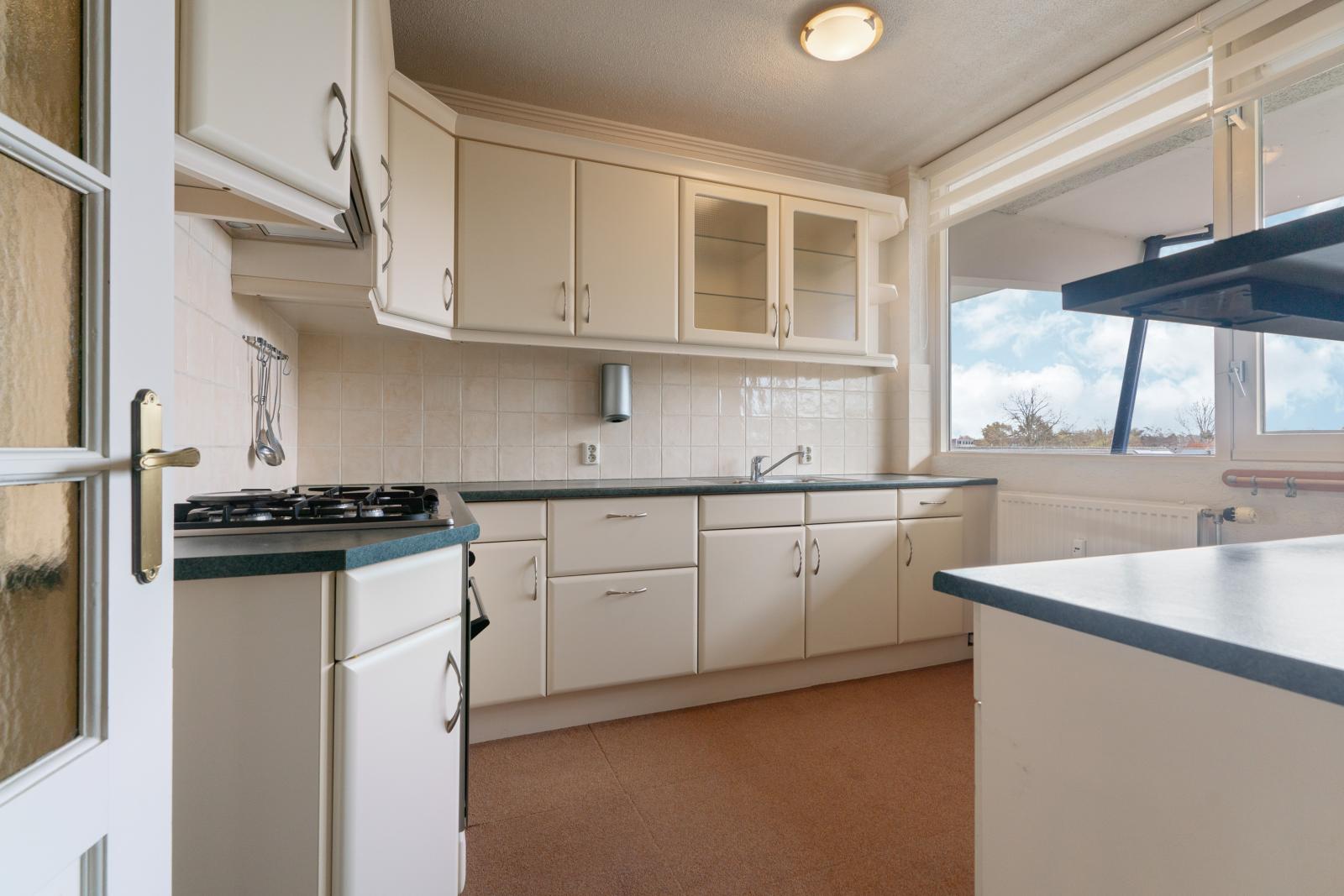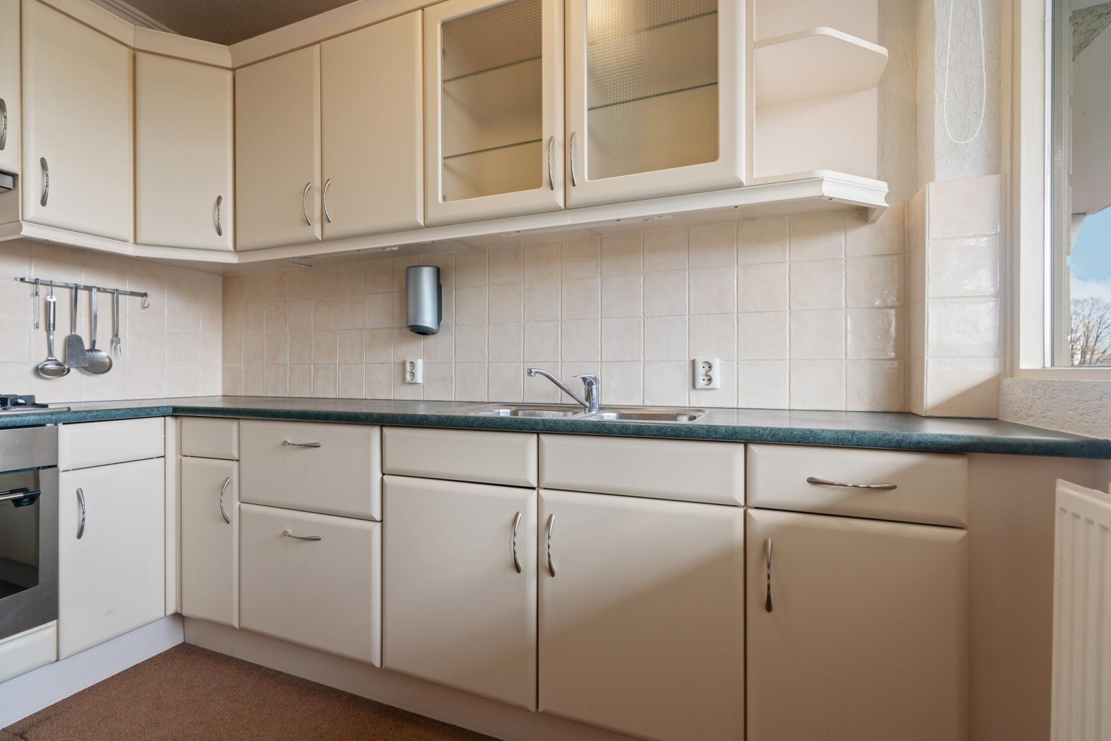 Vanuit de woonkamer loop je door naar de keuken, die praktisch is ingedeeld en volop bergruimte biedt. Terwijl je kookt, kijk je fijn naar buiten. Een prettige plek om de dag te beginnen of af te sluiten. Verder zijn de eerste slaapkamer, de overloop én het fantastische balkon ook vanuit de woonkamer bereikbaar.