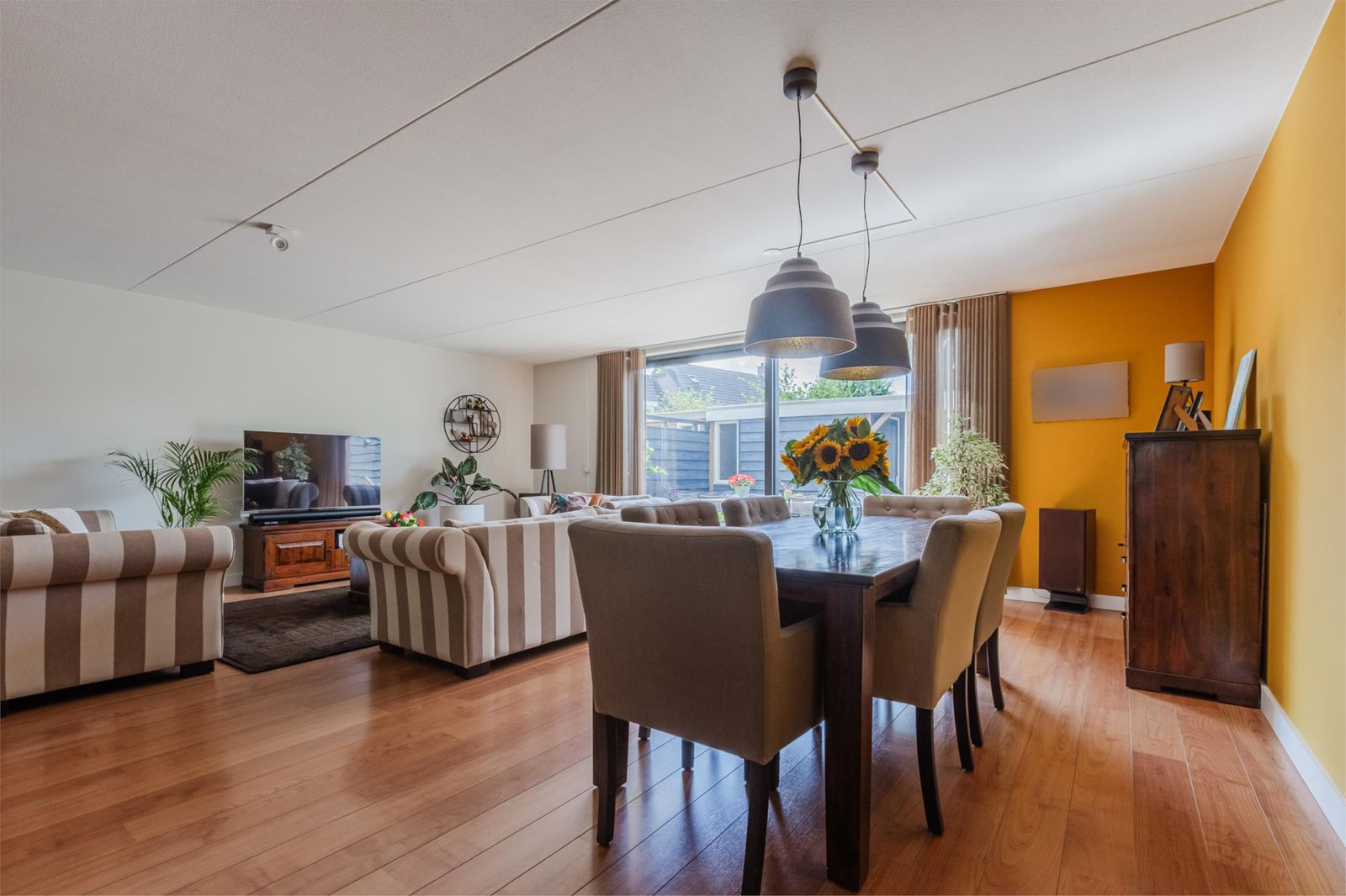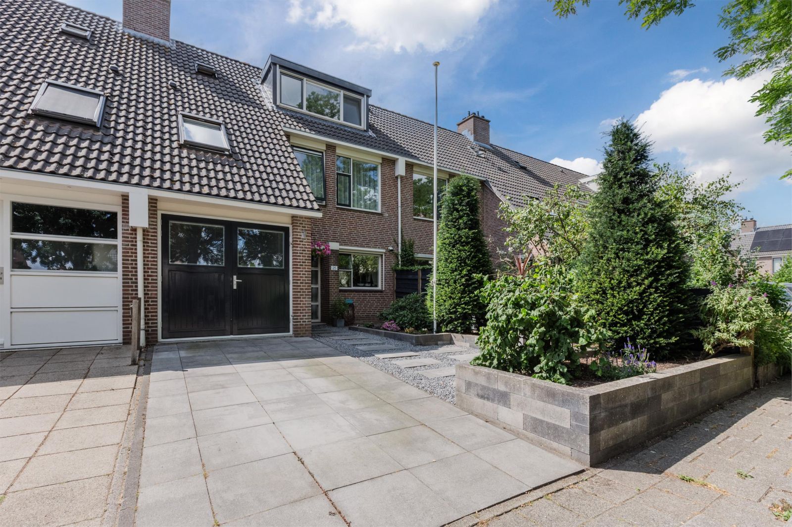 Ons huis is een zeer royale, goed onderhouden eengezinswoning met 5 slaapkamers en een ruime woonkamer met uitbouw voorzien van een nieuwe aluminium schuifpui, geplaatst voorjaar 2025. De woning is gelegen aan een rustig hofje met een speeltuintje aan de achterzijde en ook een Jeu de boules baan. Een eigen oprit, waar u de auto kan parkeren en een half inpandige garage annex bijkeuken. De moderne uitgebouwde keuken met kookschiereiland is geheel voorzien van nieuwe apparatuur in 2022. Het toilet op de begane grond is gesitueerd in het trappenhuis en de trappen zijn geheel gemoderniseerd in 2018.
