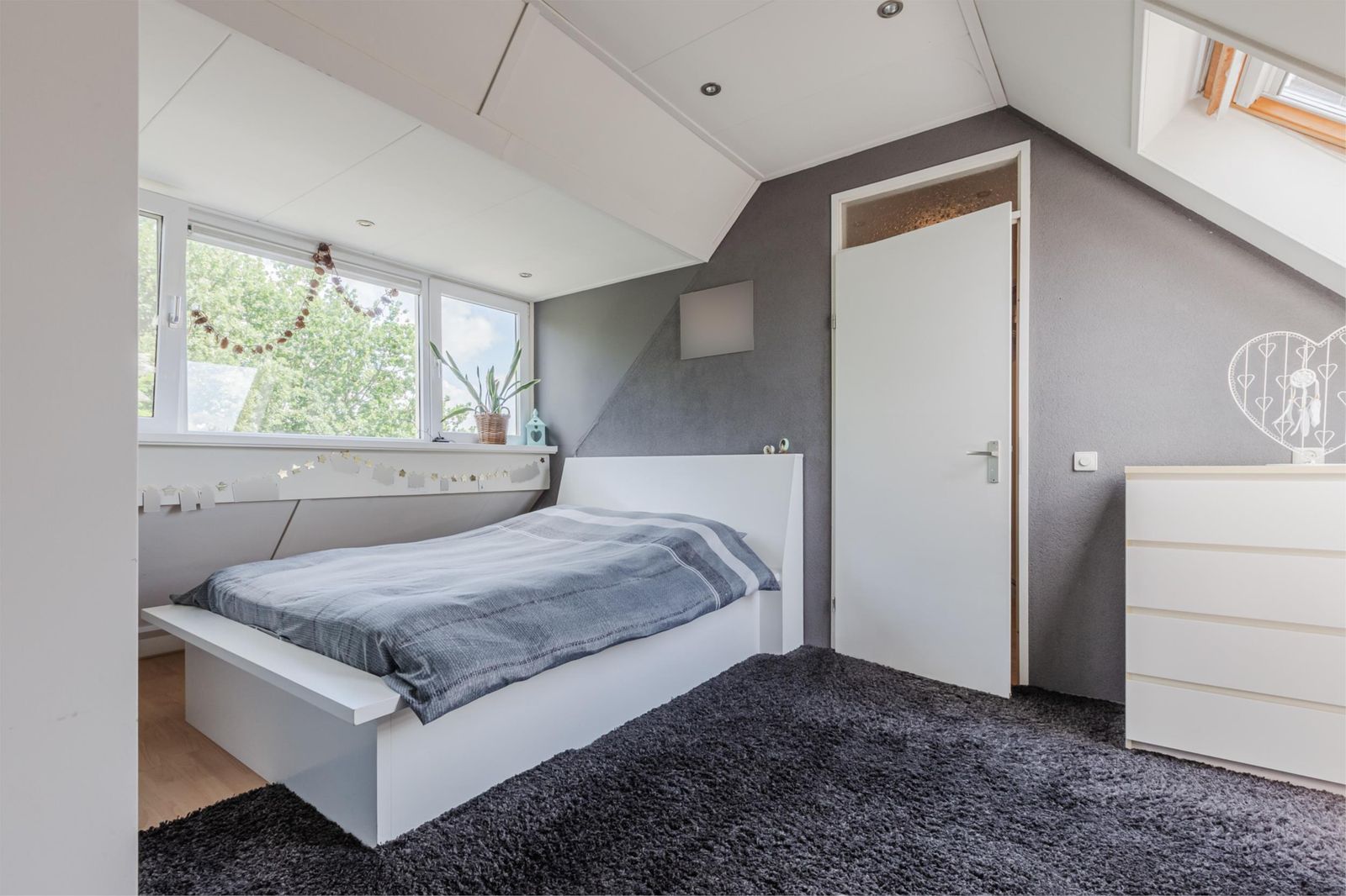 Op de tweede verdieping is de overloop met aansluiting voor de wasmachine en wasdroger. Daar is ook de cv-ketel uit 2024, de mechanische afzuiging en de omvormer van de zonnepanelen (12 stuks) die in 2022 zijn geplaatst. De 5e slaapkamer met de in 2023 gerenoveerde dakkapel bevindt zich ook op zolder.
