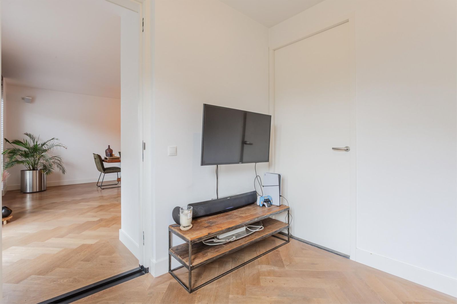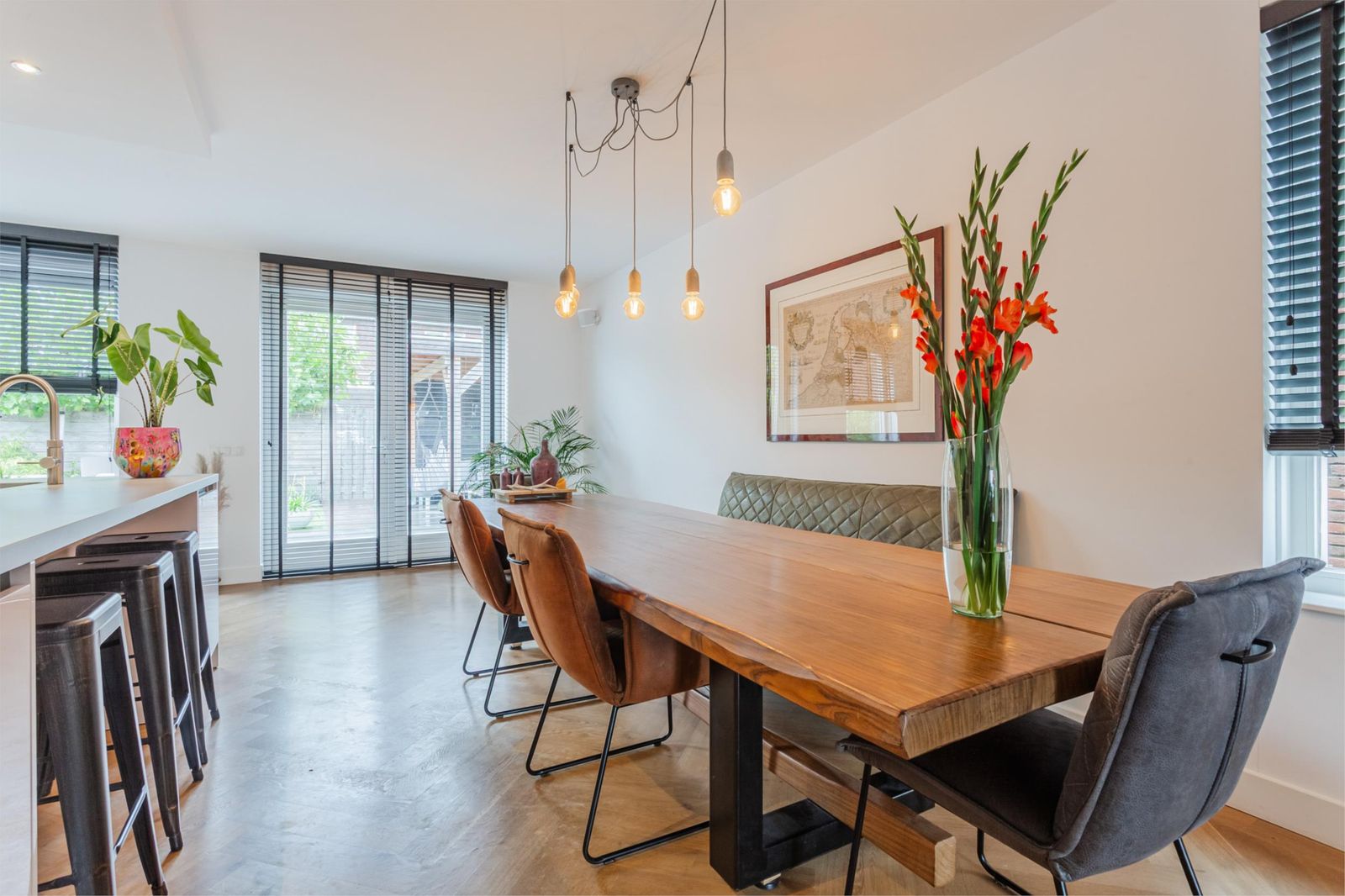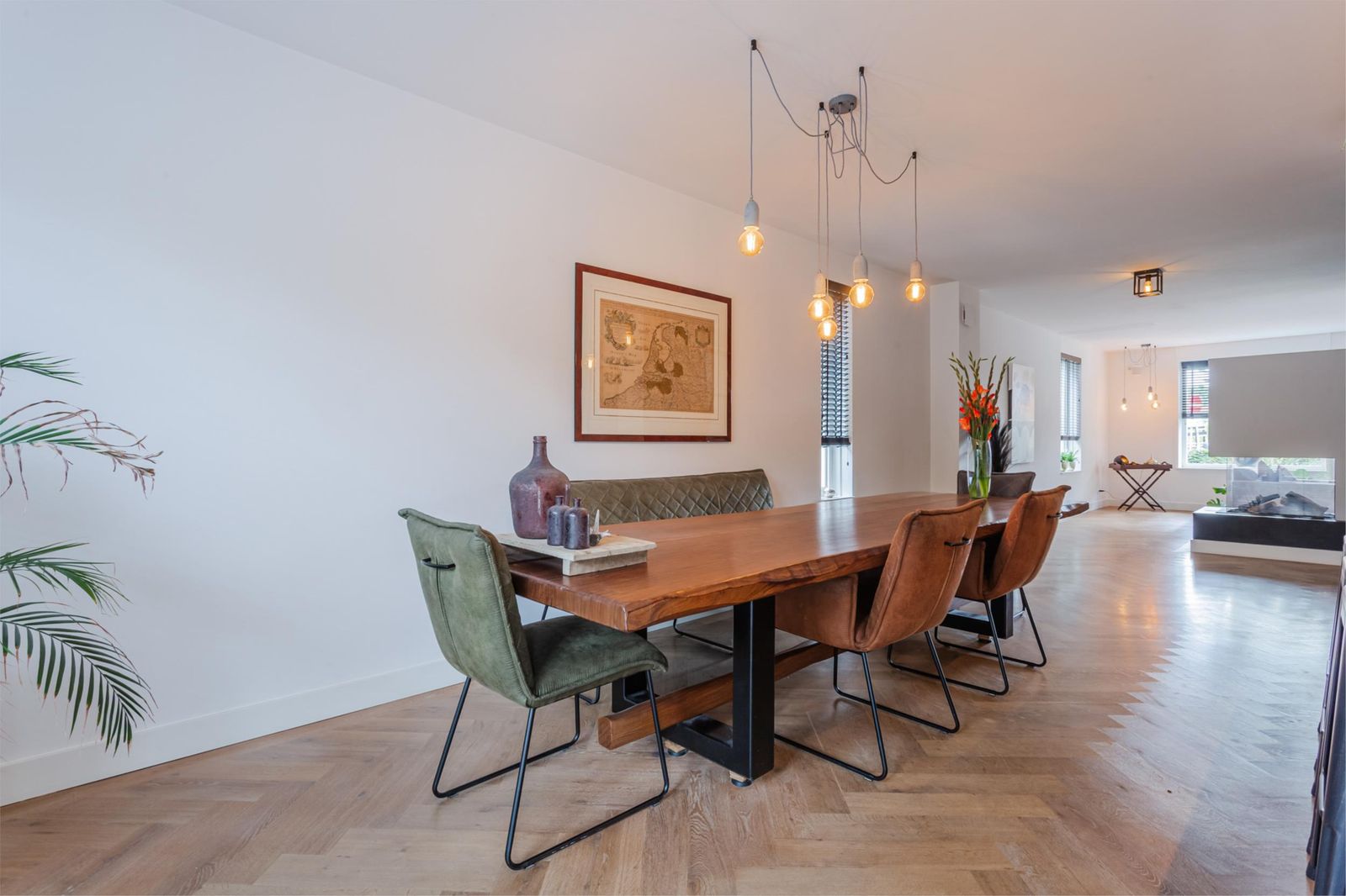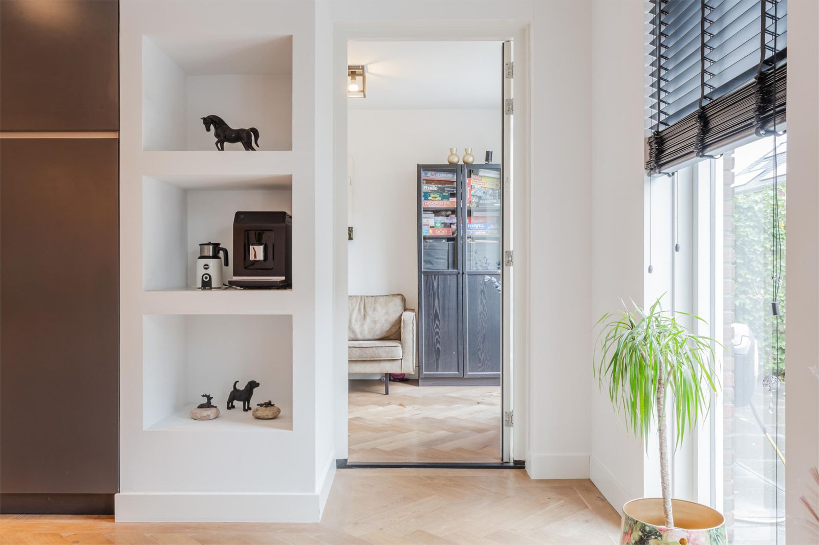 De woonkamer (ca. 30 m²) is licht en uitnodigend, met de gashaard als warme scheiding tussen zit- en eetgedeelte. De woonkeuken (ca. 36 m²) is uitgevoerd met luxe Siematic-keuken, AEG-apparatuur, twee ovens (stoom en combi) en een wijnklimaatkoelkast. Een groot kookeiland met bar maakt dit de perfecte plek voor lange maaltijden en gezellige avonden. Aansluitend ligt de tuinkamer (10 m²) met openslaande deuren naar de tuin, een fijne ruimte voor werk, spel of ontspanning. Vanuit hier bereikt u ook de garage.