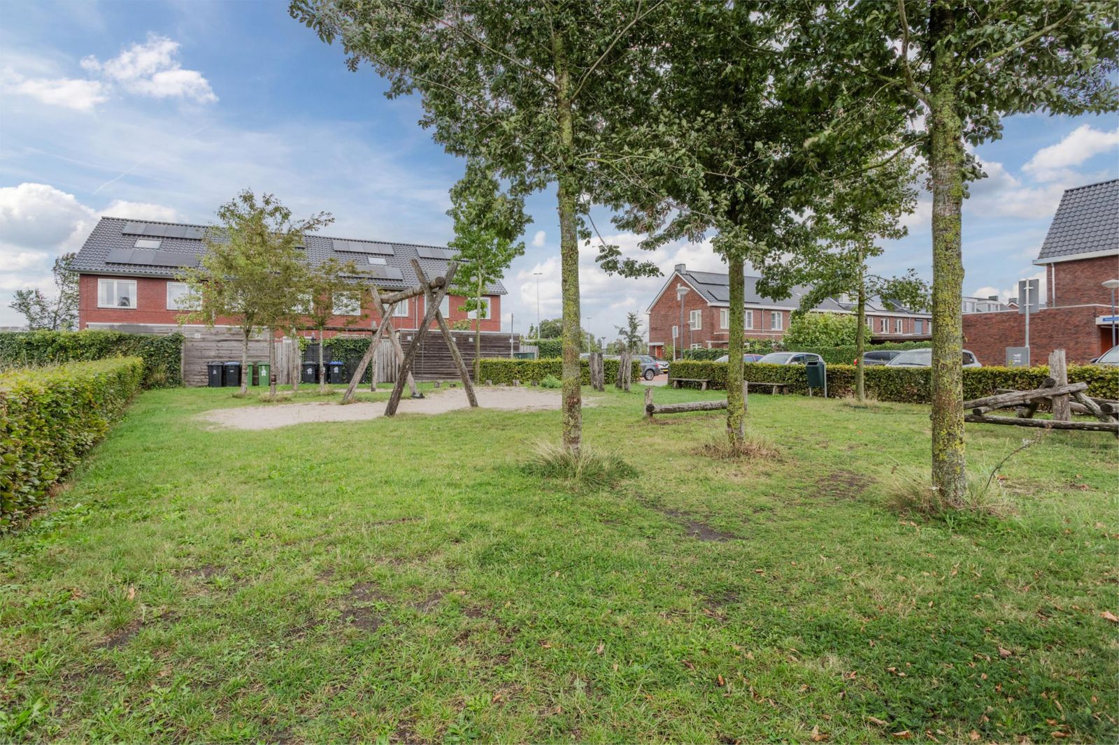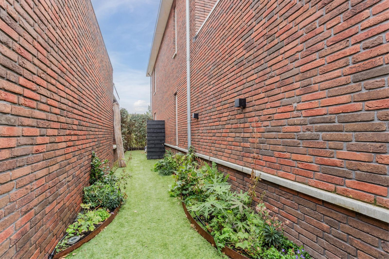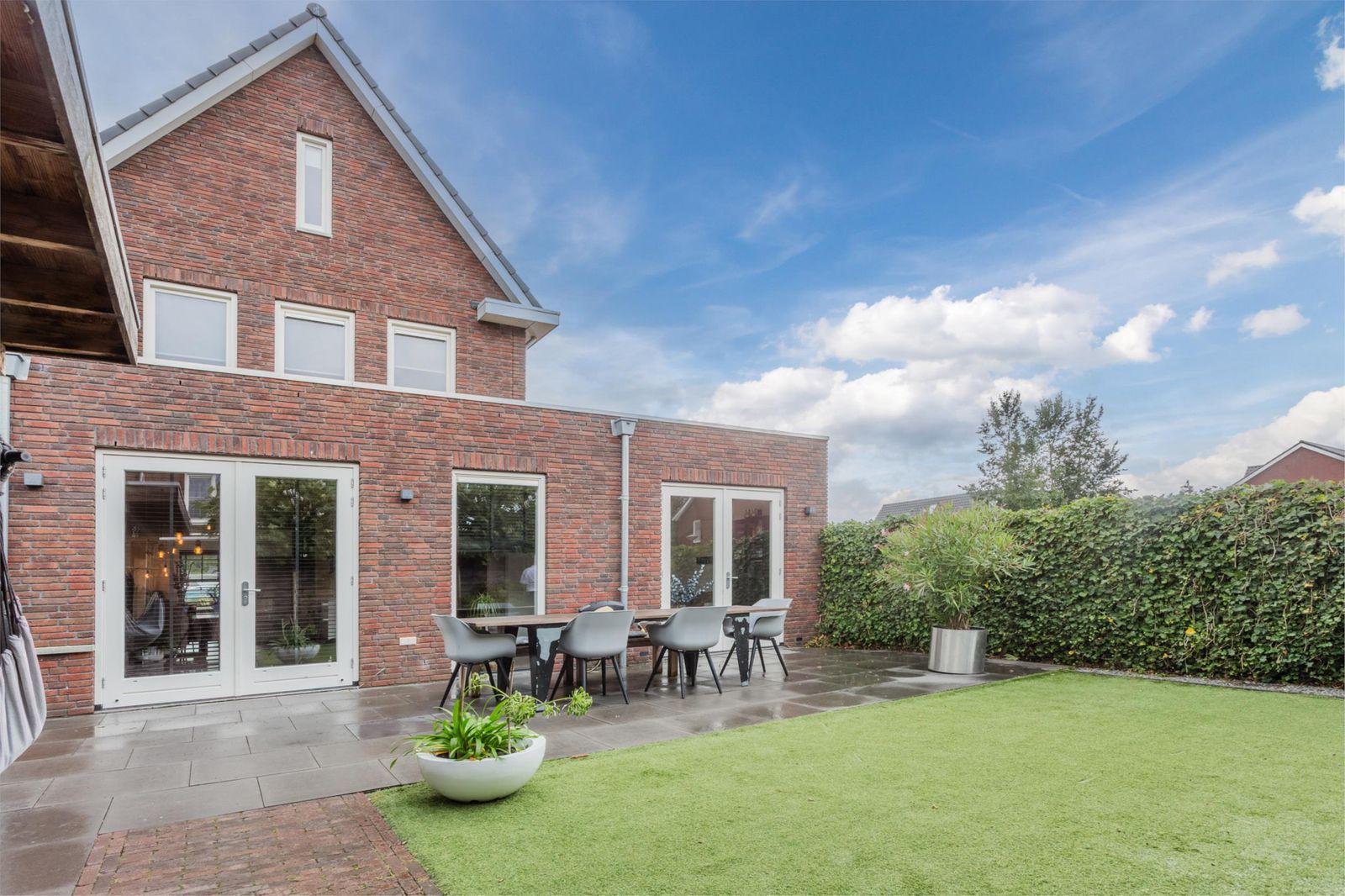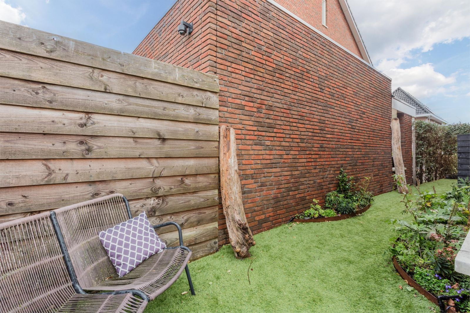 De tuin op het noordwesten is royaal en zonnig. Achterin staat een grote schuur met overkapping, een plek waar u ook in het voor- en najaar buiten kunt zitten. Het ligterras vangt de zon de hele dag en is ideaal om te ontspannen. Hier is ruimte voor spel, tuinieren en lange avonden met vrienden of familie. Aan de voorzijde is ruime parkeergelegenheid op eigen terrein.