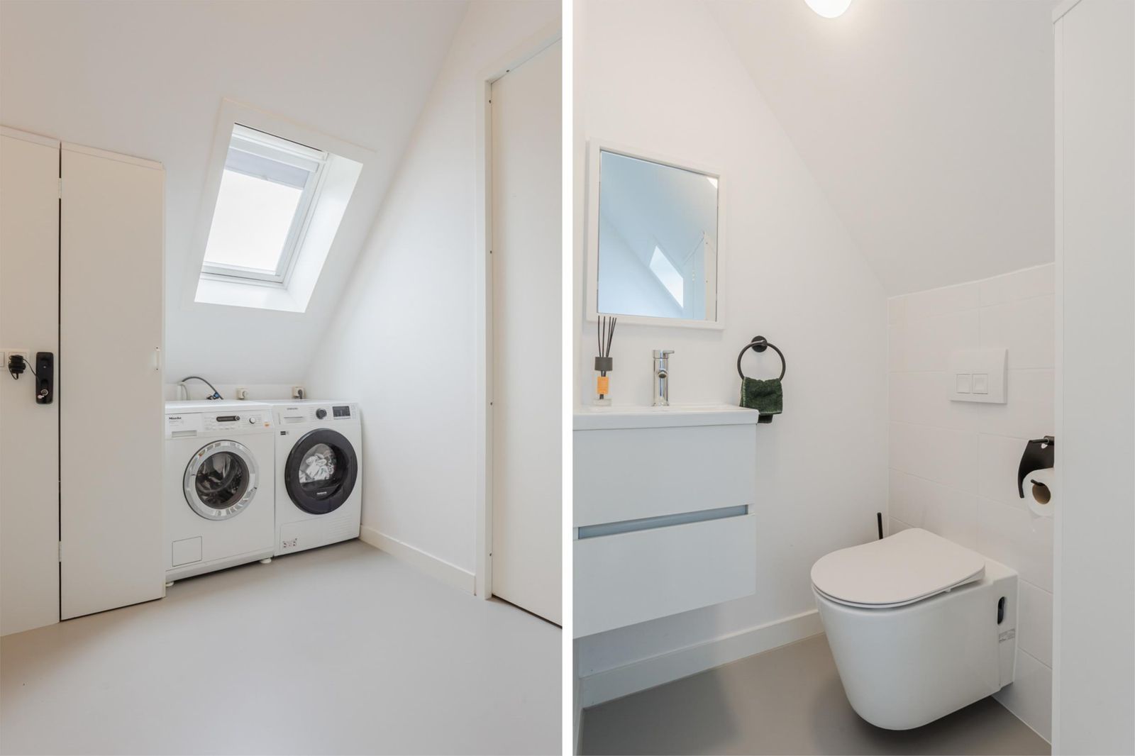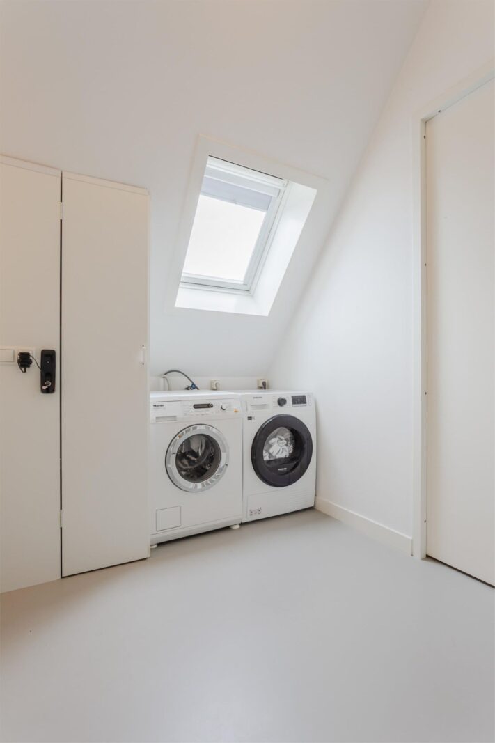 Nog twee slaapkamers en een aparte wasruimte. Een tweede badkamer is eenvoudig te realiseren; toilet en wastafel zijn al aanwezig.