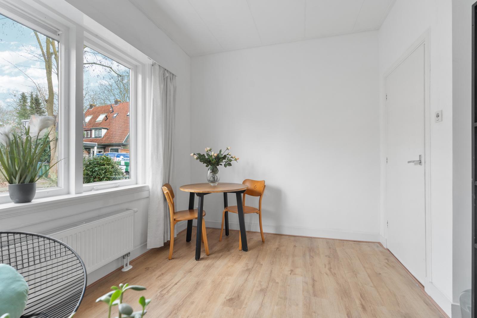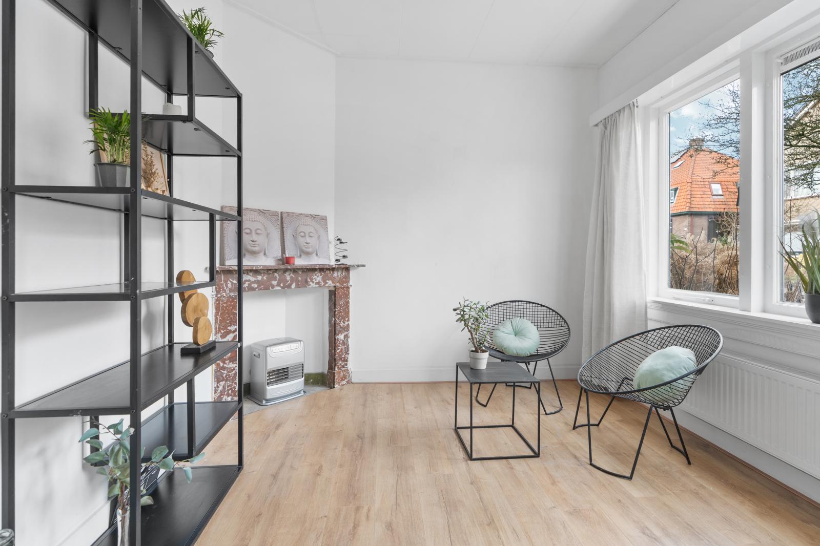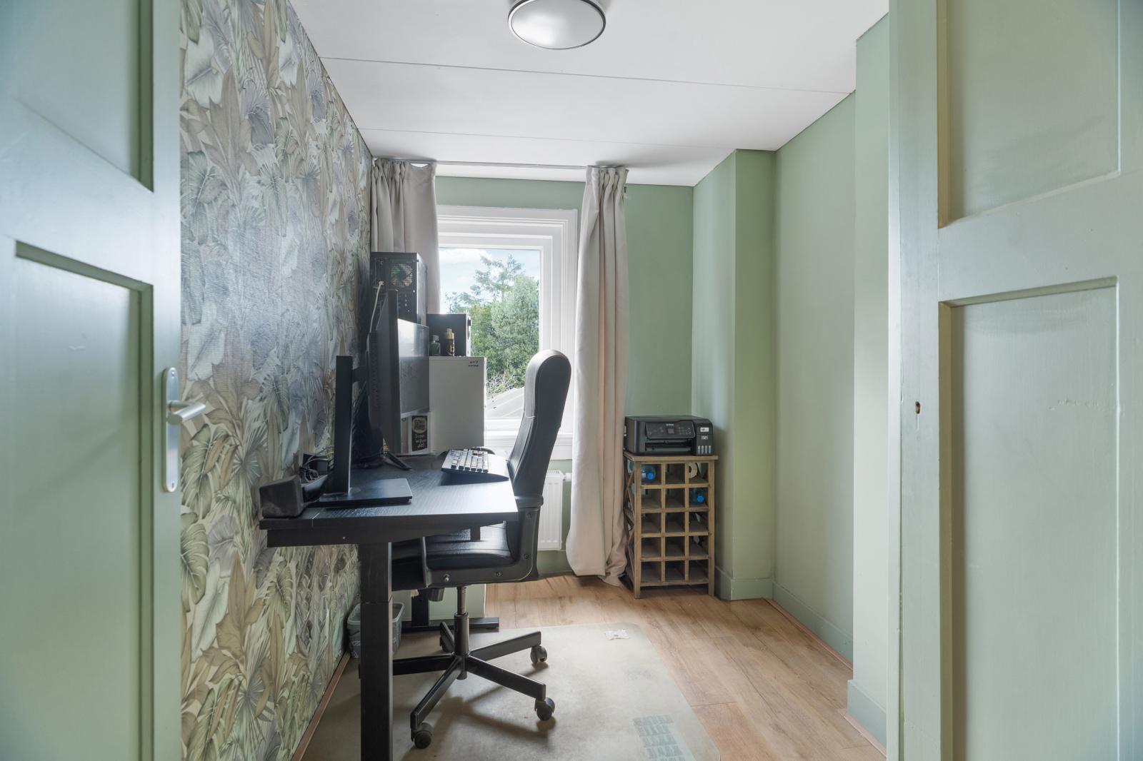 Aan de voorzijde van de woning bevindt zich een multifunctionele ruimte die uitstekend kan dienen als werkplek, hobbyruimte of speelkamer, maar waar ook alle mogelijkheden zijn om een gezellige leefruimte te creëren, bijvoorbeeld als eetkamer, zitkamer of knusse loungeplek.
