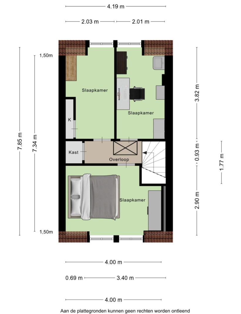Via de trapopgang komt u op de overloop met toegang tot 3 slaapkamers, een bergkast en de vlizotrap naar de bergzolder. De grote slaapkamer heeft prima afmetingen. Alle slaapkamers zijn voorzien van een dakkapel met rolluiken. De kleinste slaapkamer is voorzien van een vaste inbouwkast. Ideaal als kinderkamer, logeerkamer of walk-in closet.