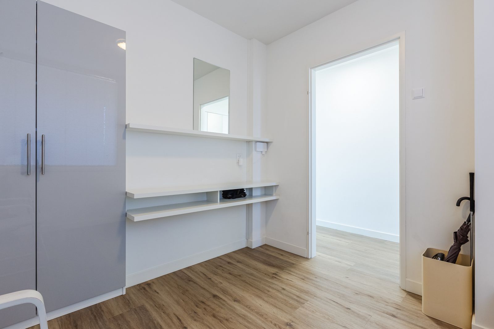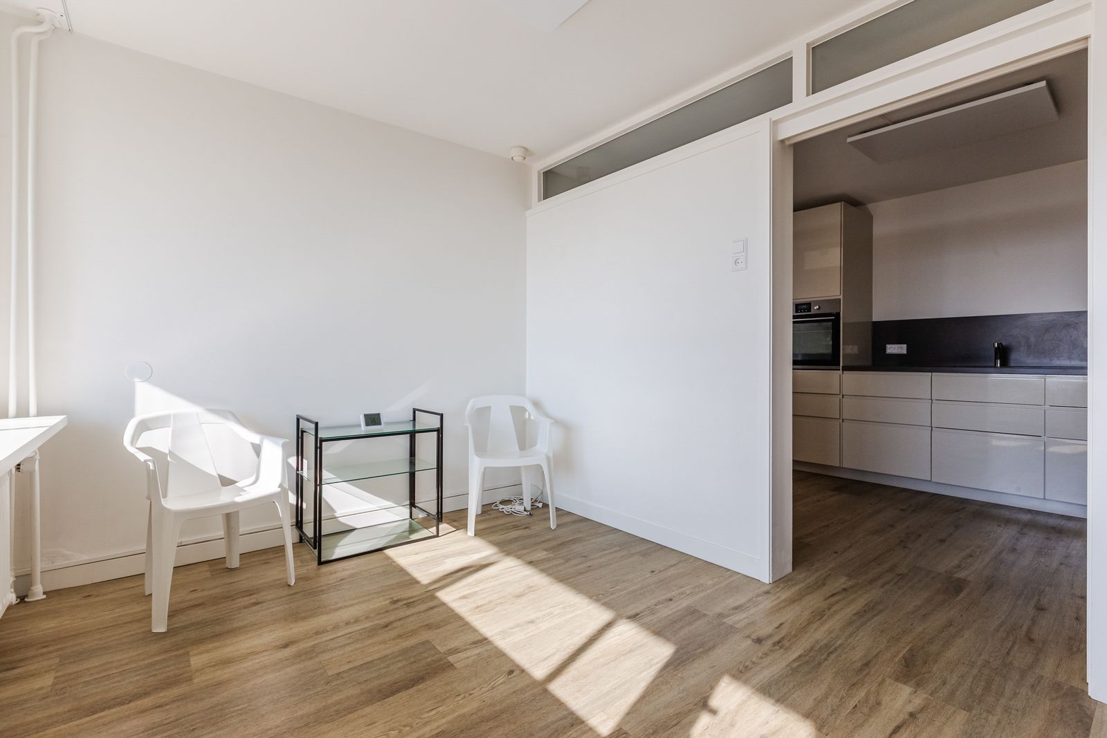 Het in 2018 prachtig gerenoveerde interieur heeft een ruime open keuken, voorzien van alle benodigde apparatuur. Ook de moderne badkamer is ruim en efficiënt. Het hele appartement is drempelloos en voorzien van een houtlook pvc-vloer. Ook is er een fraaie glazen deur geplaatst, die de woonkamer afsluit van de gang. Aan het plafond zitten energiebesparende infraroodpanelen die een alternatief vormen voor de gasgestookte blokverwarming.