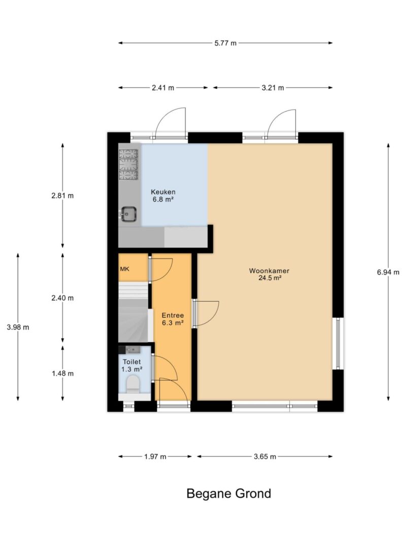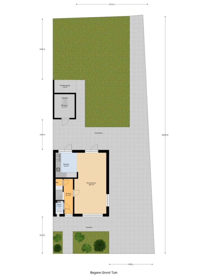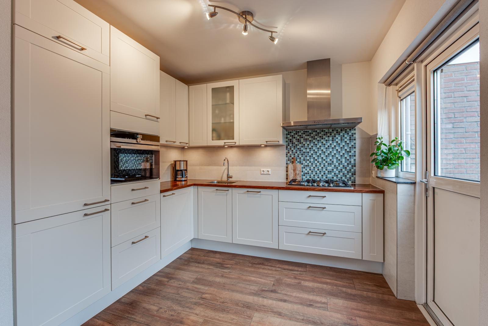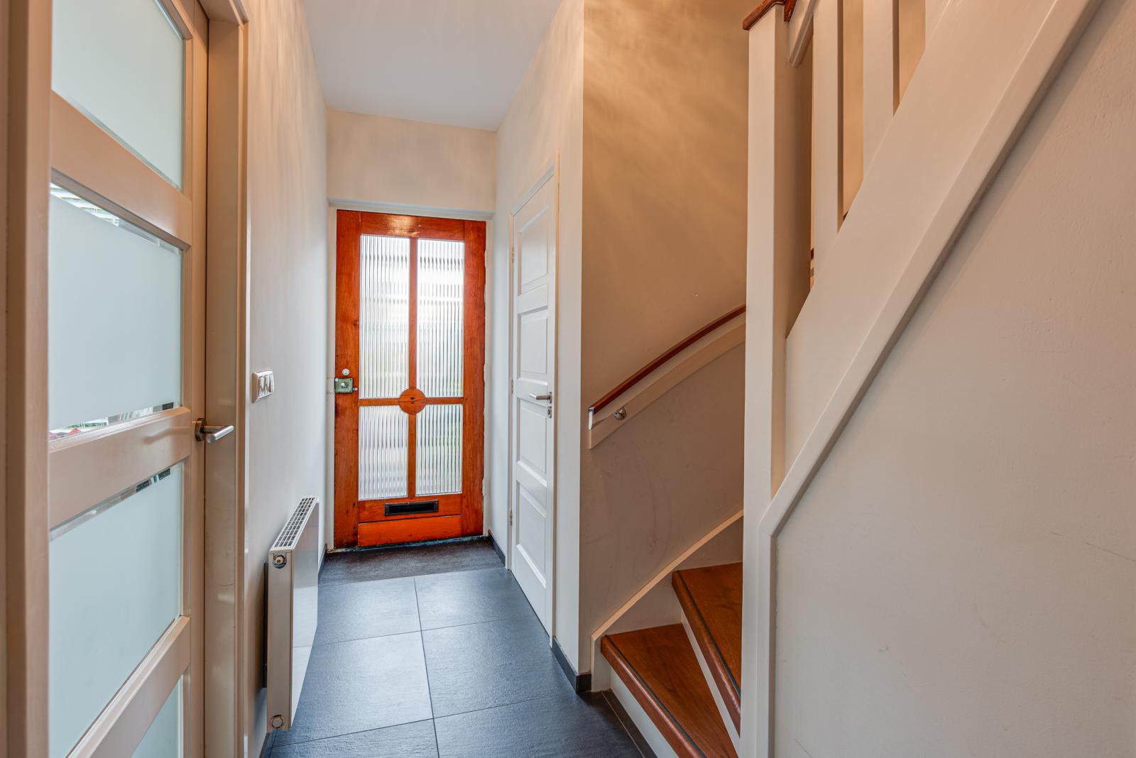 Begane grond: entree, hal, modern toilet met hangcloset, toegang naar de ruime kelder, woonkamer, lichte open keuken voorzien van inbouwapparatuur (gasfornuis, afzuigkap, koel/-vriescombinatie, vaatwasser, (stoom-)oven), openslaande deur naar de riante tuin, ruime externe stenen berging.