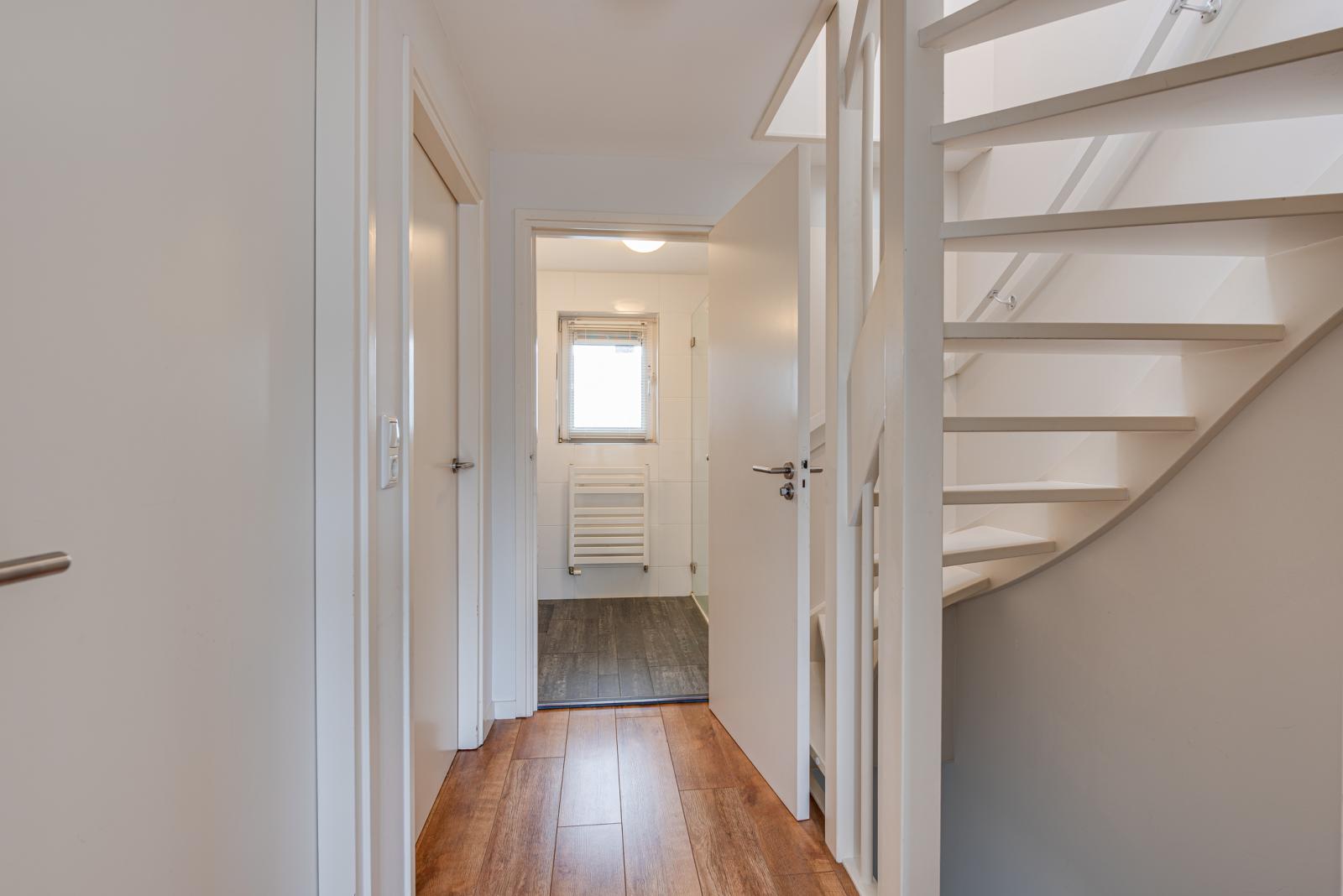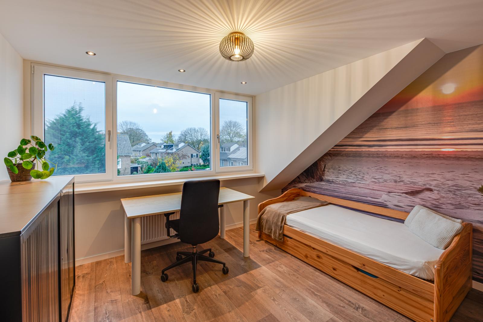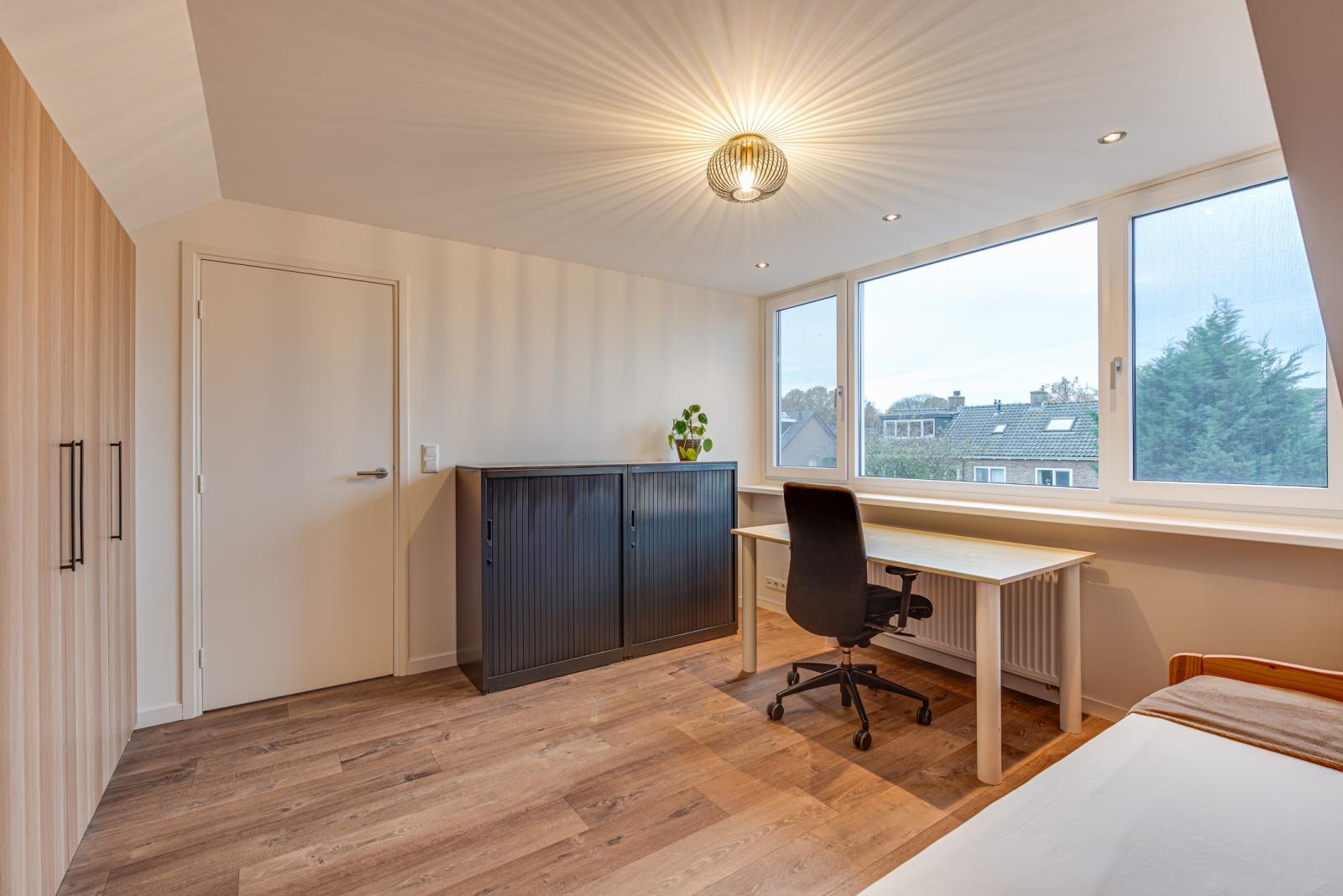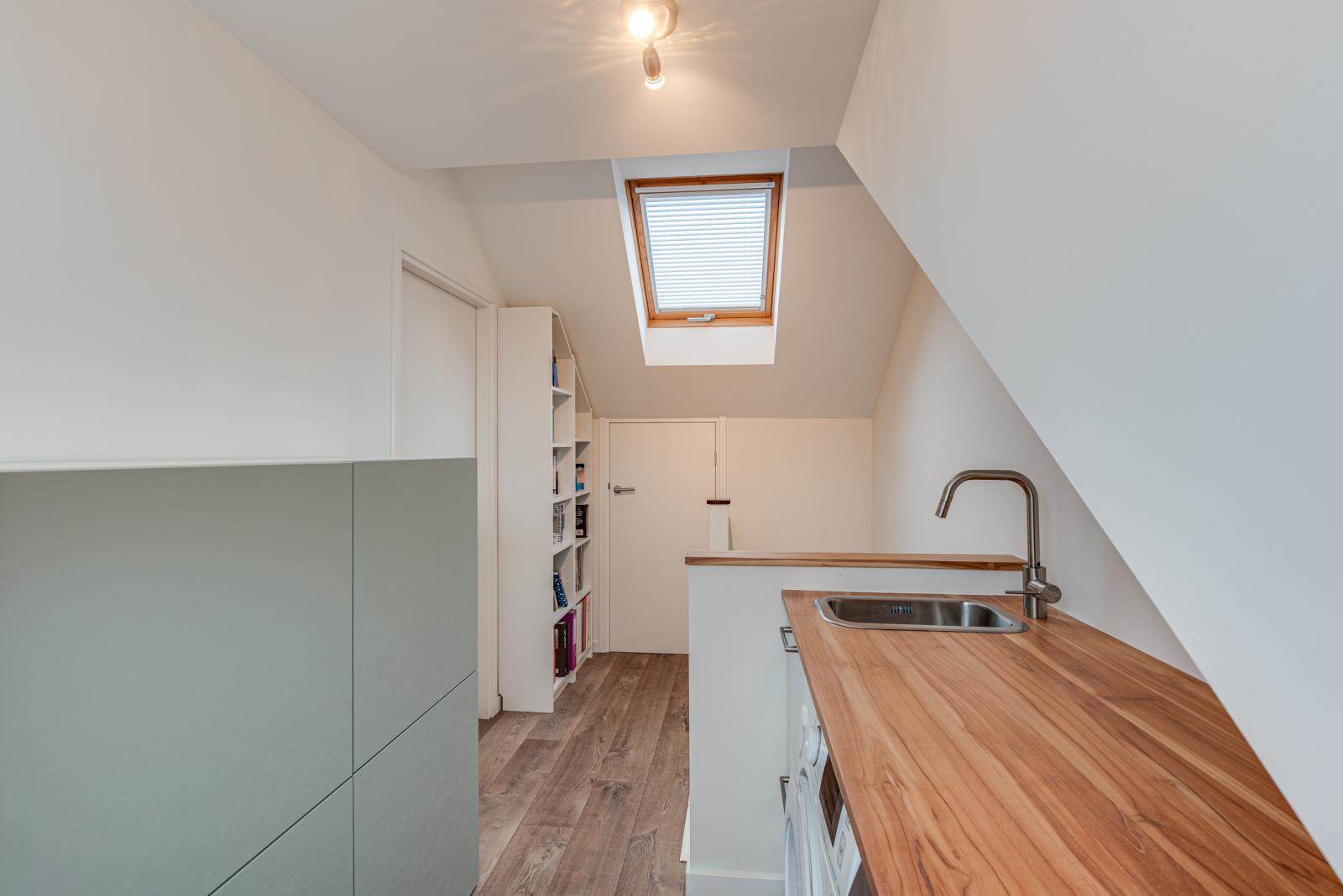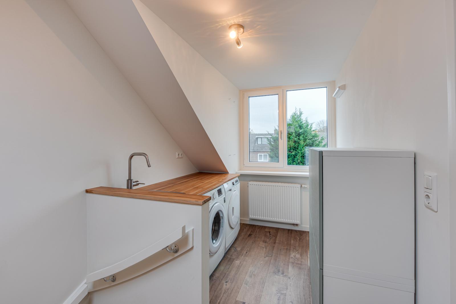 Tweede verdieping: vaste trap naar zeer ruime en goed geïsoleerde zolder met voorzolder met veel bergruimte, wastafel met ruimte voor wasmachine en droger, riante lichte vierde slaapkamer, welke ook uitstekend te gebruiken is als werkruimte of thuiskantoor.