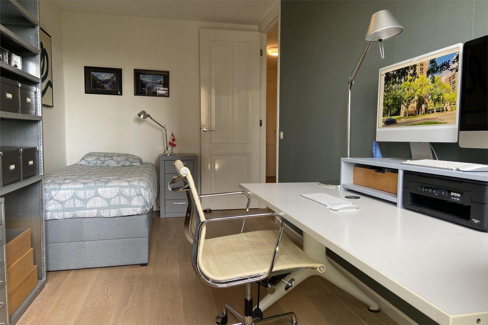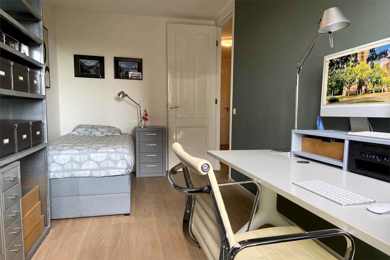 De tweede slaapkamer (12 vierkante meter) wordt nu gebruikt als slaap/studeerkamer.