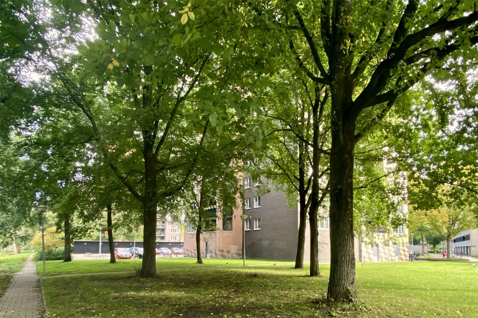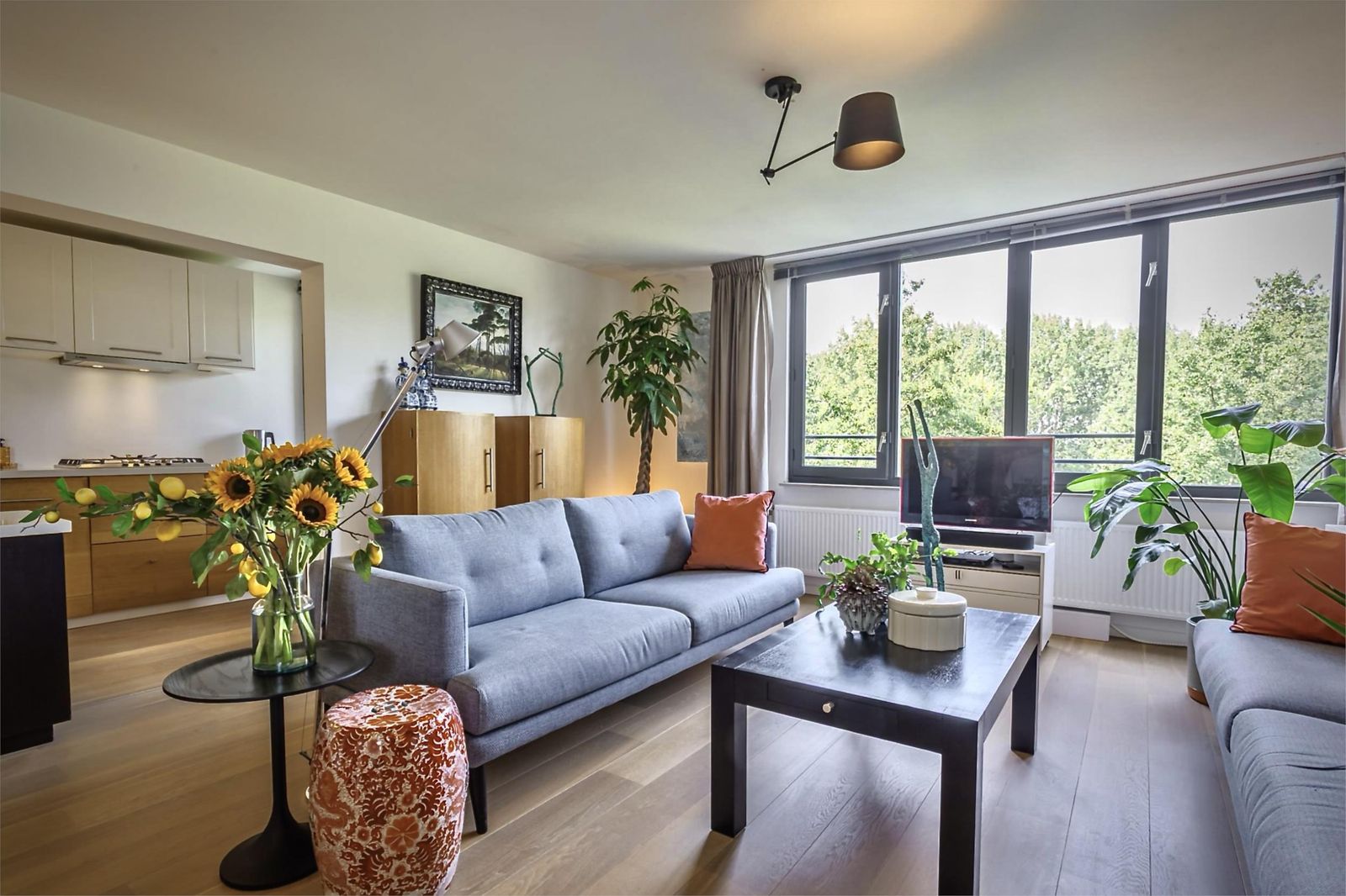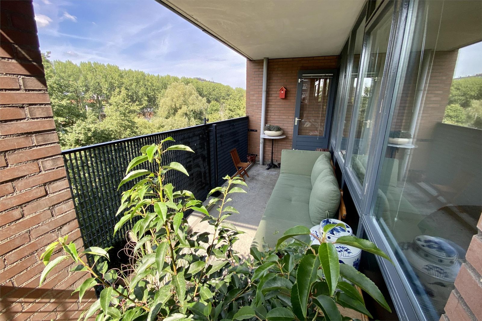 De woning heeft twee royale slaapkamers, een open keuken, een ruim balkon en een ruime en lichte woonkamer. Dit alles met uitzicht op veel groen. Zomers waan je je in het bos en heb je de reuring van het centrum binnen handbereik.