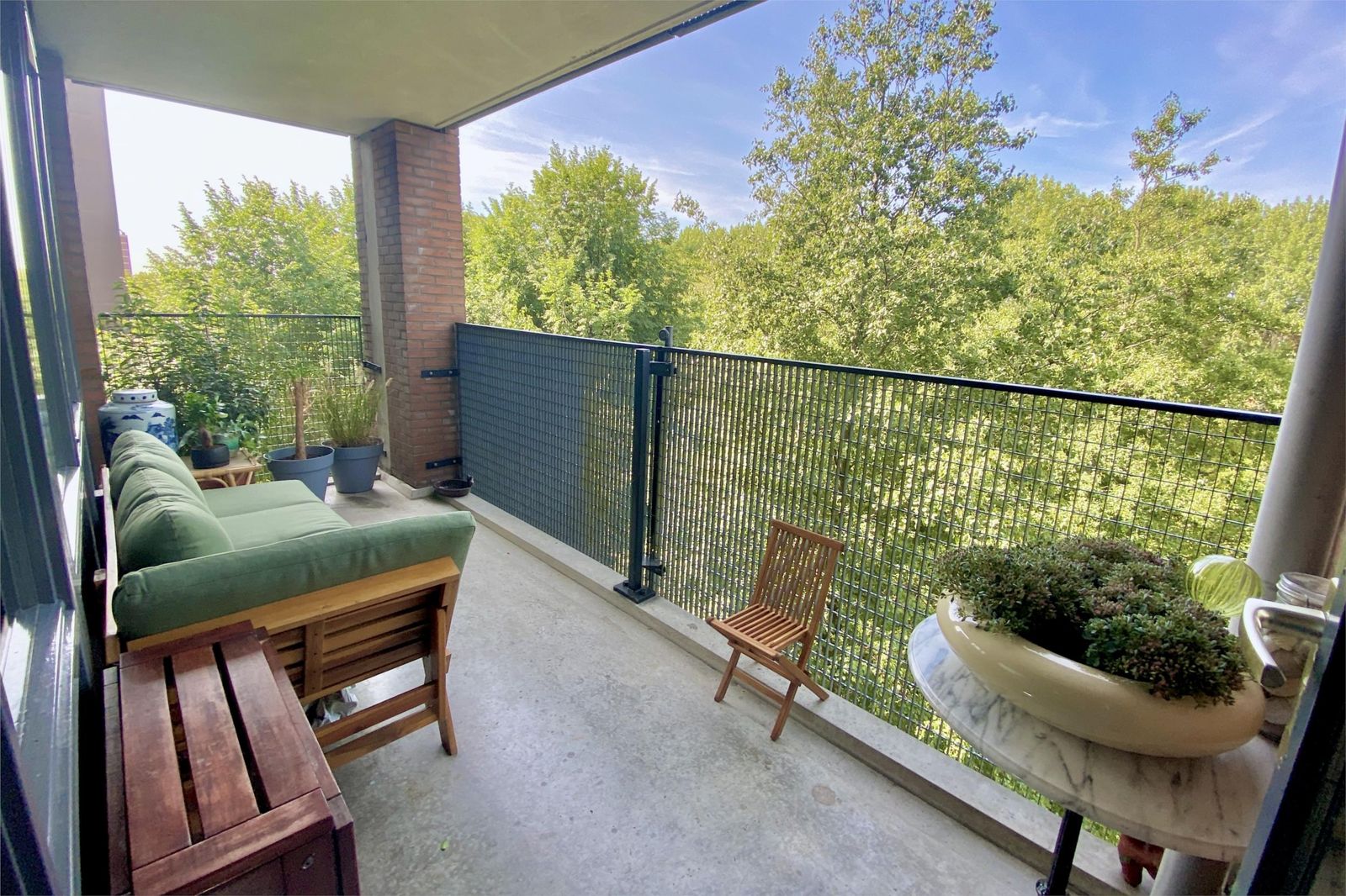 The apartment features two generous bedrooms, an open-plan kitchen, a spacious balcony, and a spacious and bright living room. All of this offers a view of lush greenery. In the summer, you'll feel like you're in the woods, with the hustle and bustle of the city center within easy reach.