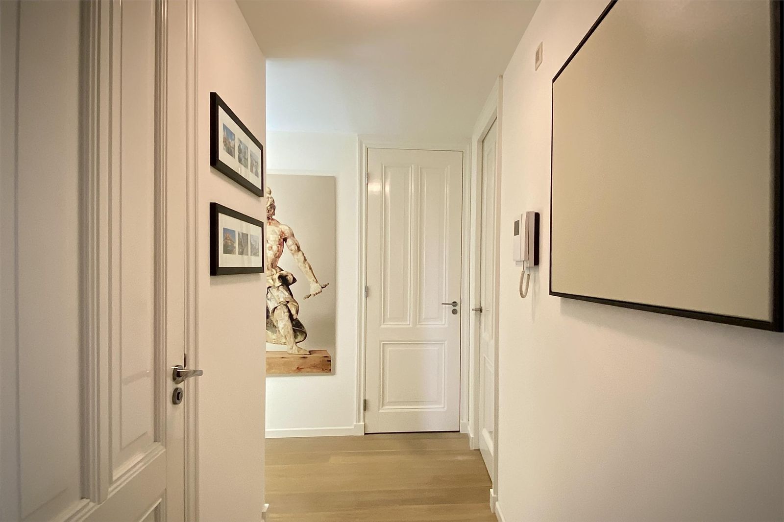 You enter the building through a spacious hallway with two elevators. The apartment is located on the sixth floor. Here, too, there's a spacious hallway that provides access to the apartment. A nice bonus is that there are only four apartments per floor, each with its own corner of the building. This provides a sense of privacy.