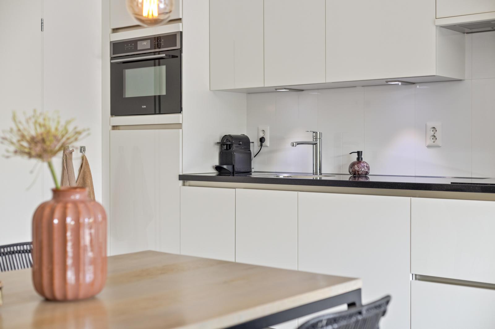- Moderne woonkeuken met diverse hedendaagse inbouwapparatuur;