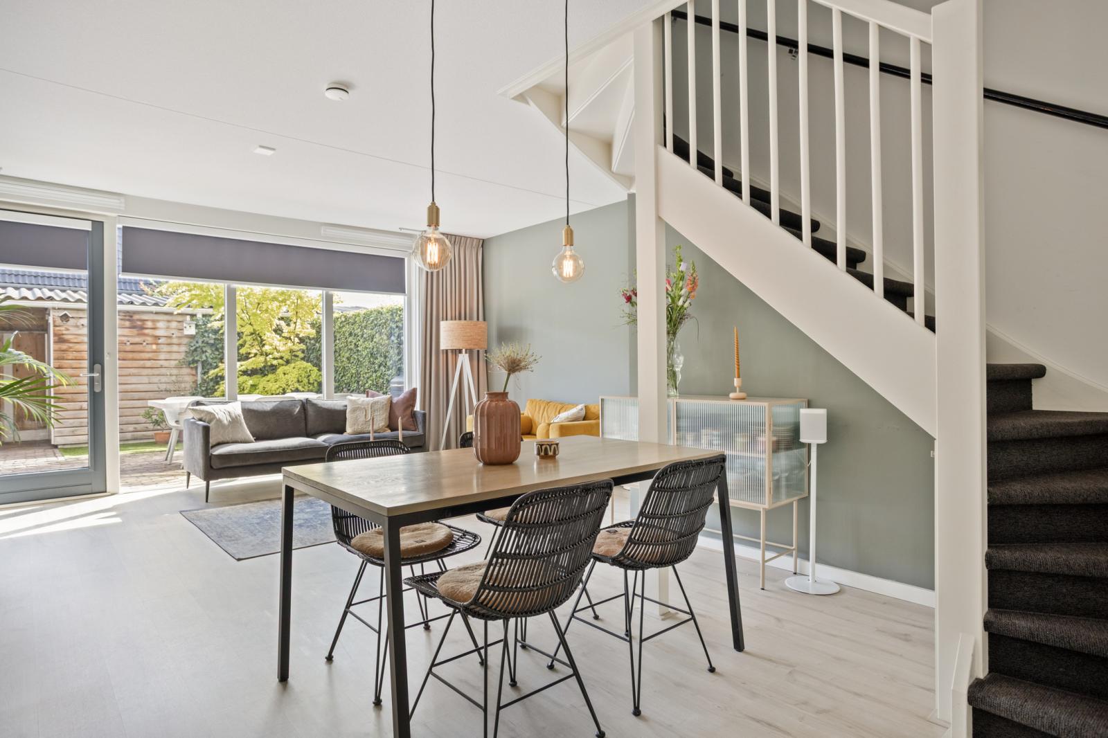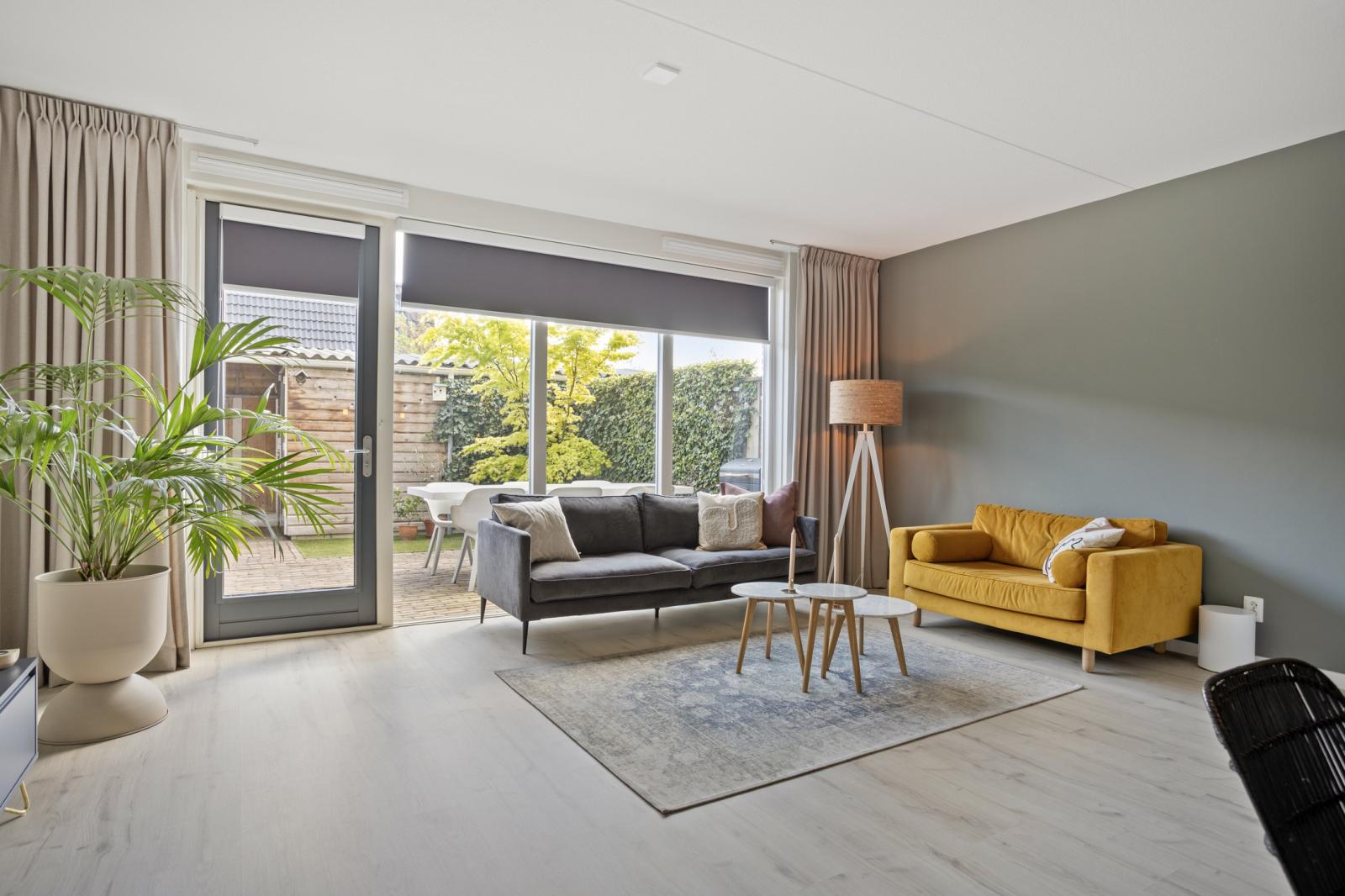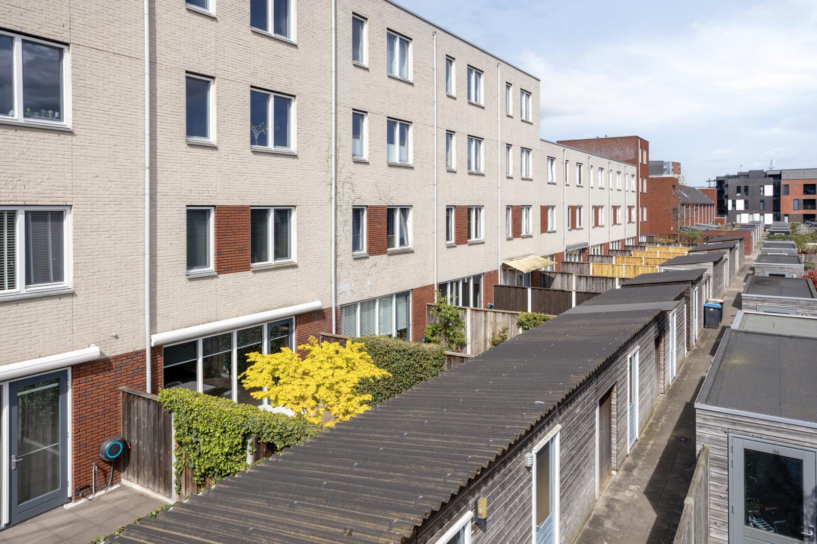 De achtertuin is zonnig gelegen op het oosten en biedt een fijne combinatie van privacy en ruimte. De tuin beschikt over een achterom en een vrijstaande geïsoleerde houten berging, ideaal voor fietsen en opslag.