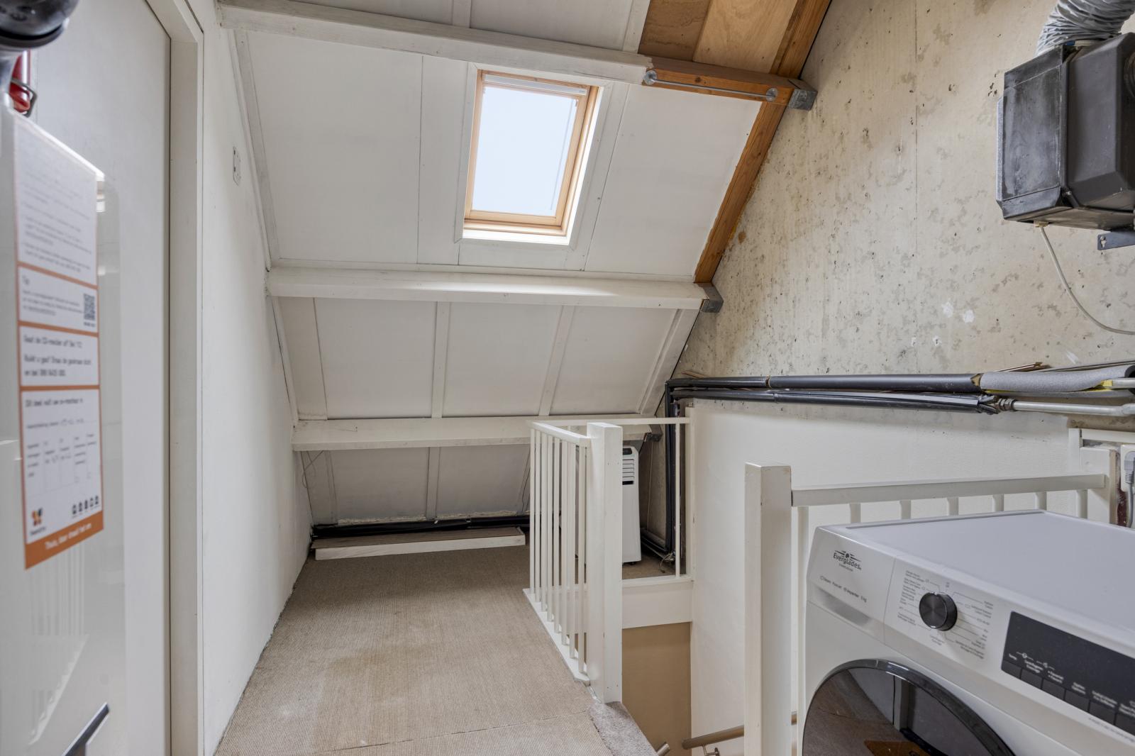 Voorzolder met Velux dakraam met voldoende bergruimte, opstelling HR combi ketel uit 2020, de