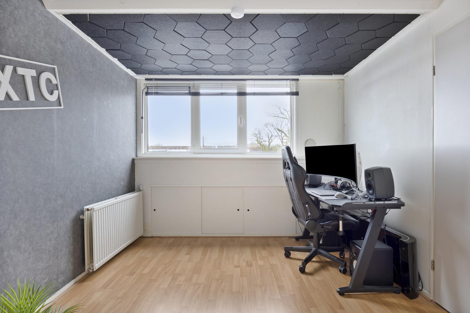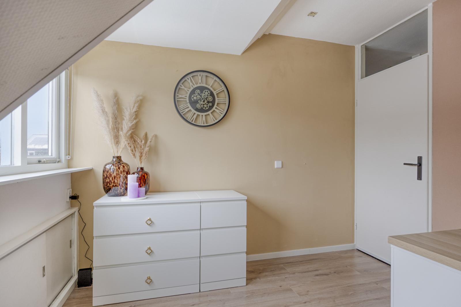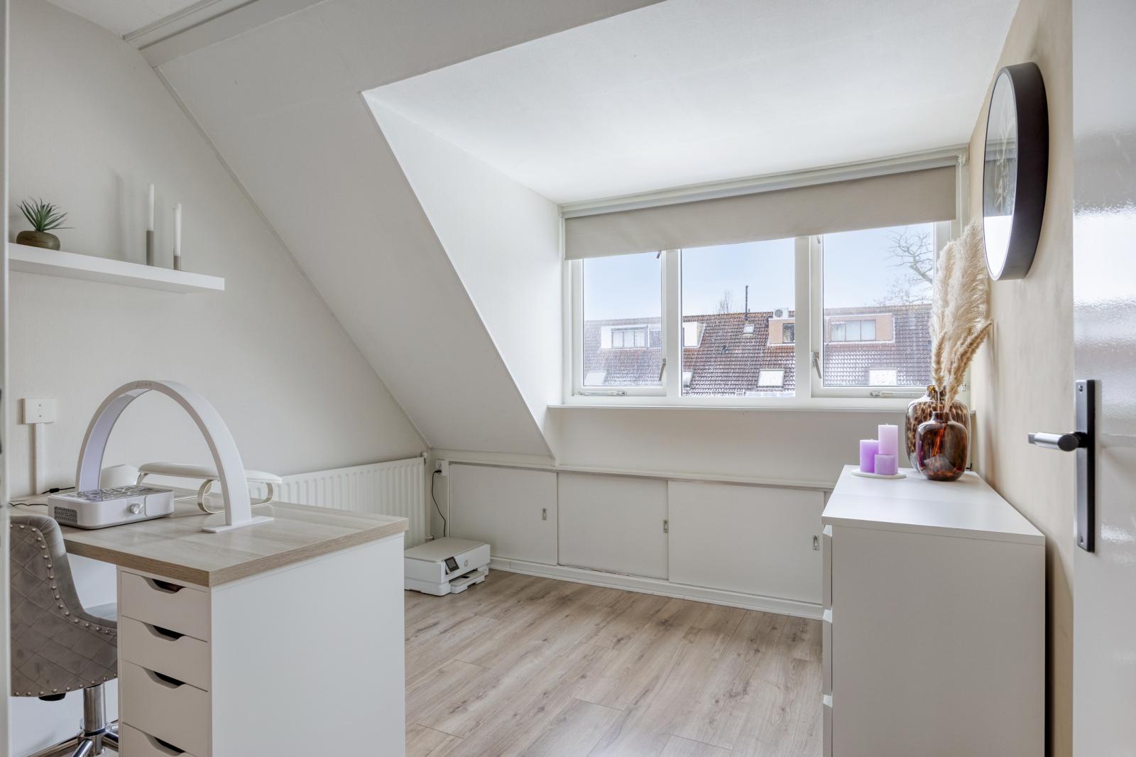 4e slaapkamer voorzien van dakkapel met kunststofkozijn, bergruimte achter de knieschotten en handig is de