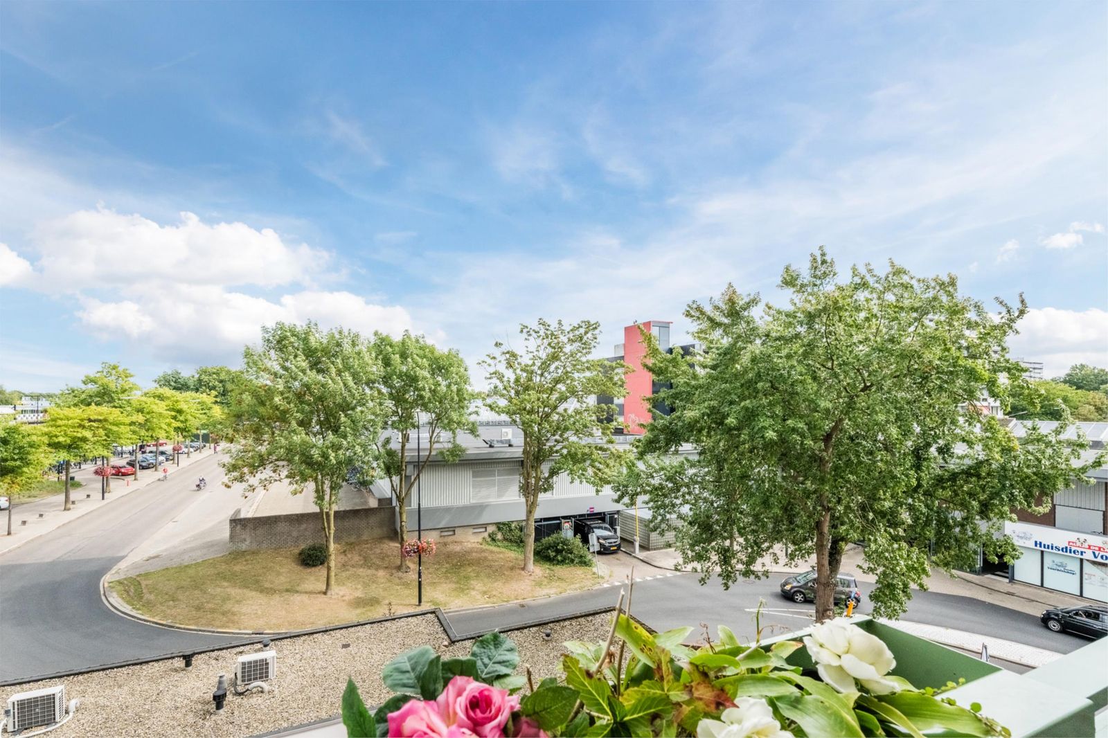 Vanuit de woonkamer heb je vrij uitzicht over de straat met aan de rechterkant het overdekte Winkelcentrum Dukenburg, waarin tal van allerlei winkels en ook een Alber Heijn XL..