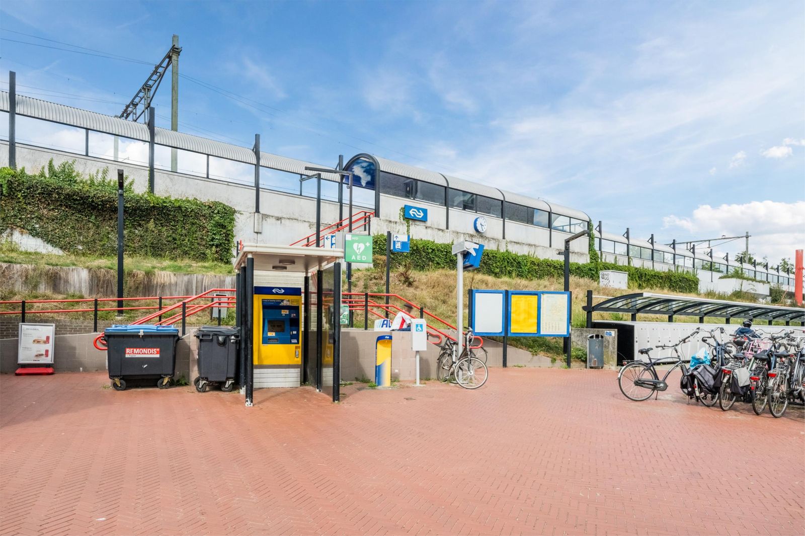 Aan de linkerkant naast het gebouw is het treinstation Dukenburg met aan de voorkant het busstation van de stadsbussen en streekbussen.