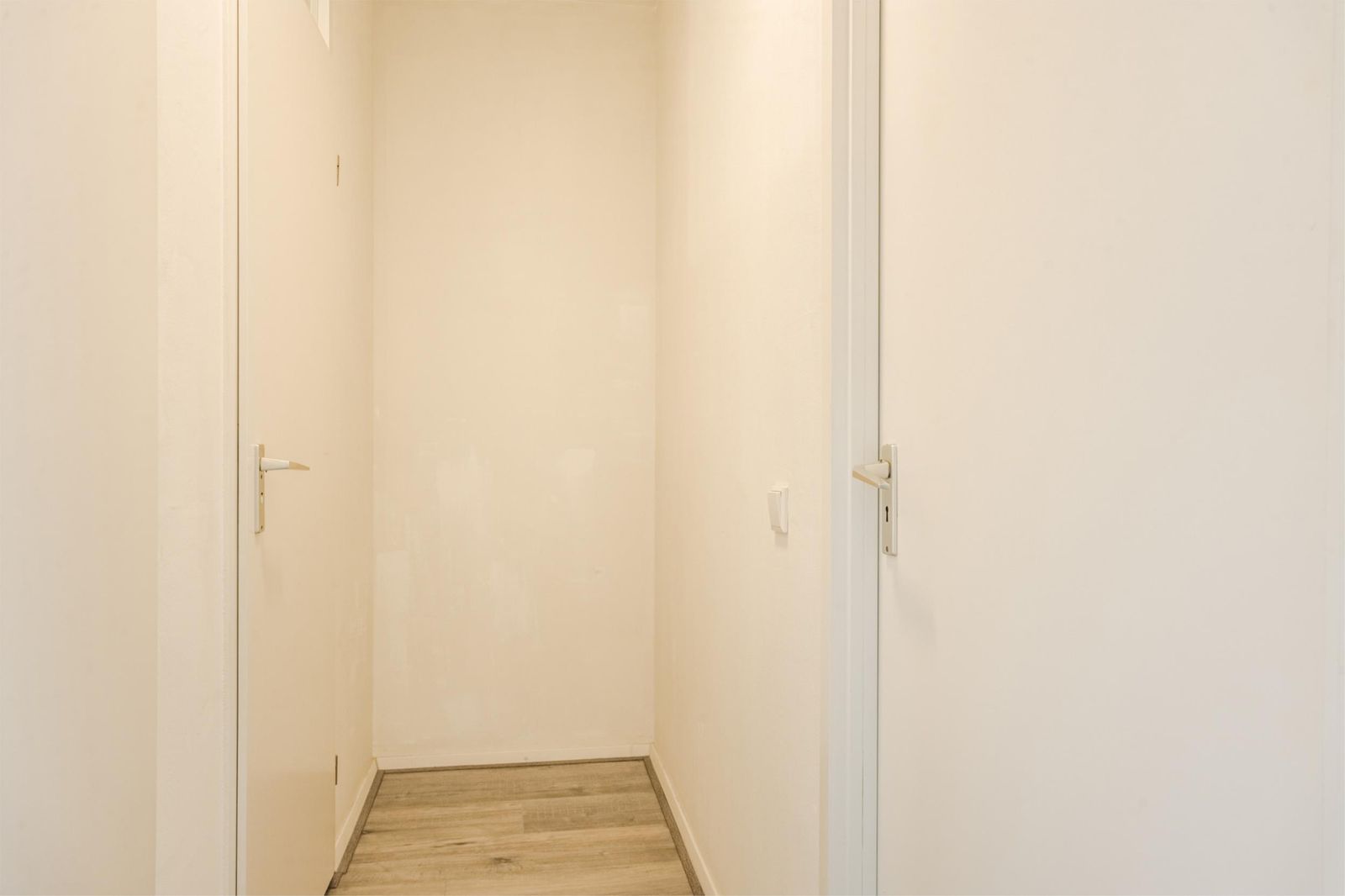 Hal, ruime berging met wasmachineaansluiting, woonkamer met balkon gelegen op het oosten, halfopen keuken met inductie kookplaat, afzuigkap, combi-oven, vaatwasser, en koel-vrieskast. Vanuit de woonkamer gang met toegang tot het toilet met fonteintje, de badkamer met douche en wastafel en de slaapkamer. Op de gang naast de voordeur is de elektriciteitskast, waarbinnen ook de glasvezelaansluiting. Op de begane grond bevindt zich een afgesloten berging (150 x 390 cm).