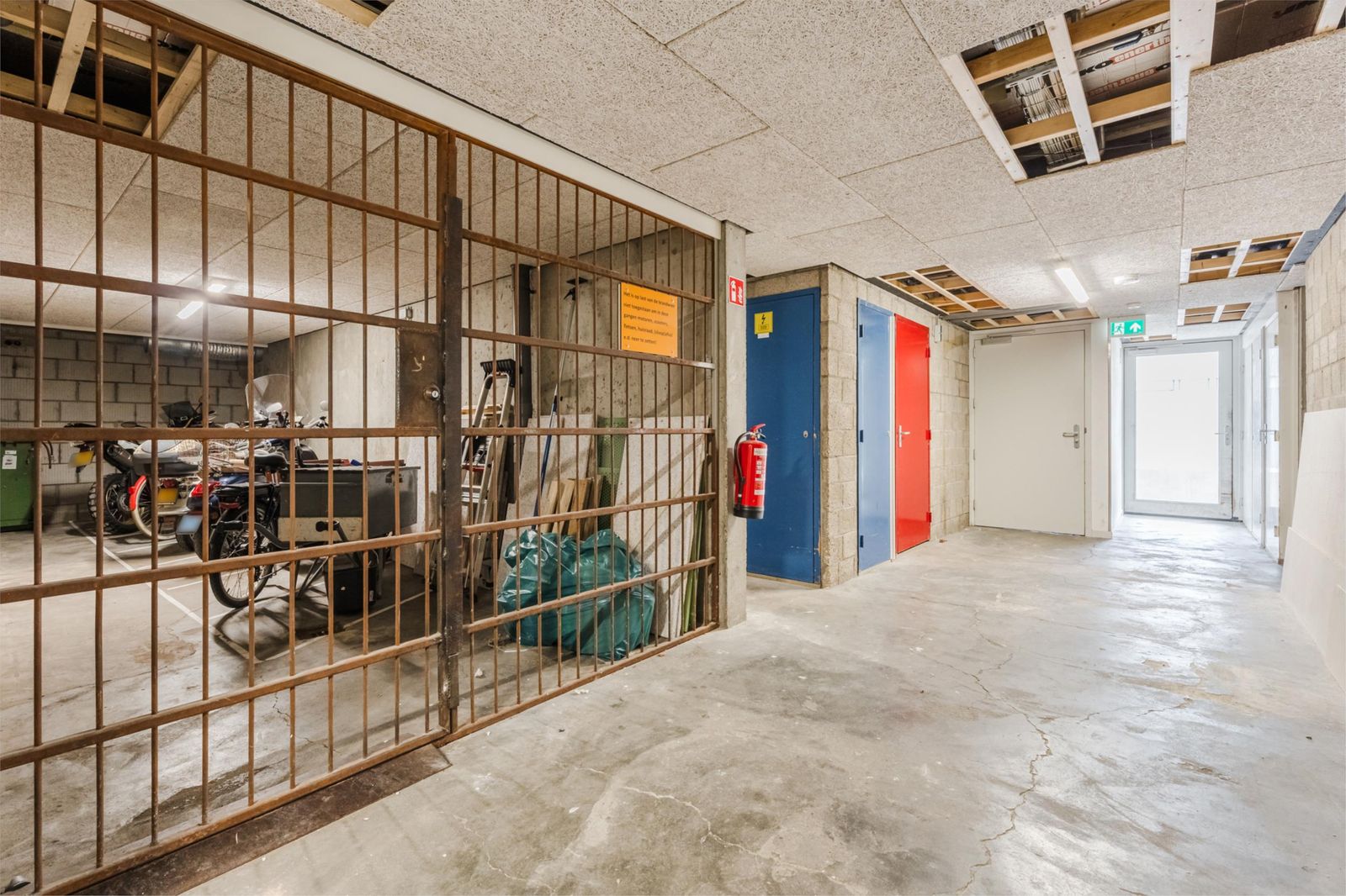 - Complex heeft op begane grond afzonderlijke afgesloten box/fietsenberging (150 x 390 cm) en er is een motor/bromfietsstalling