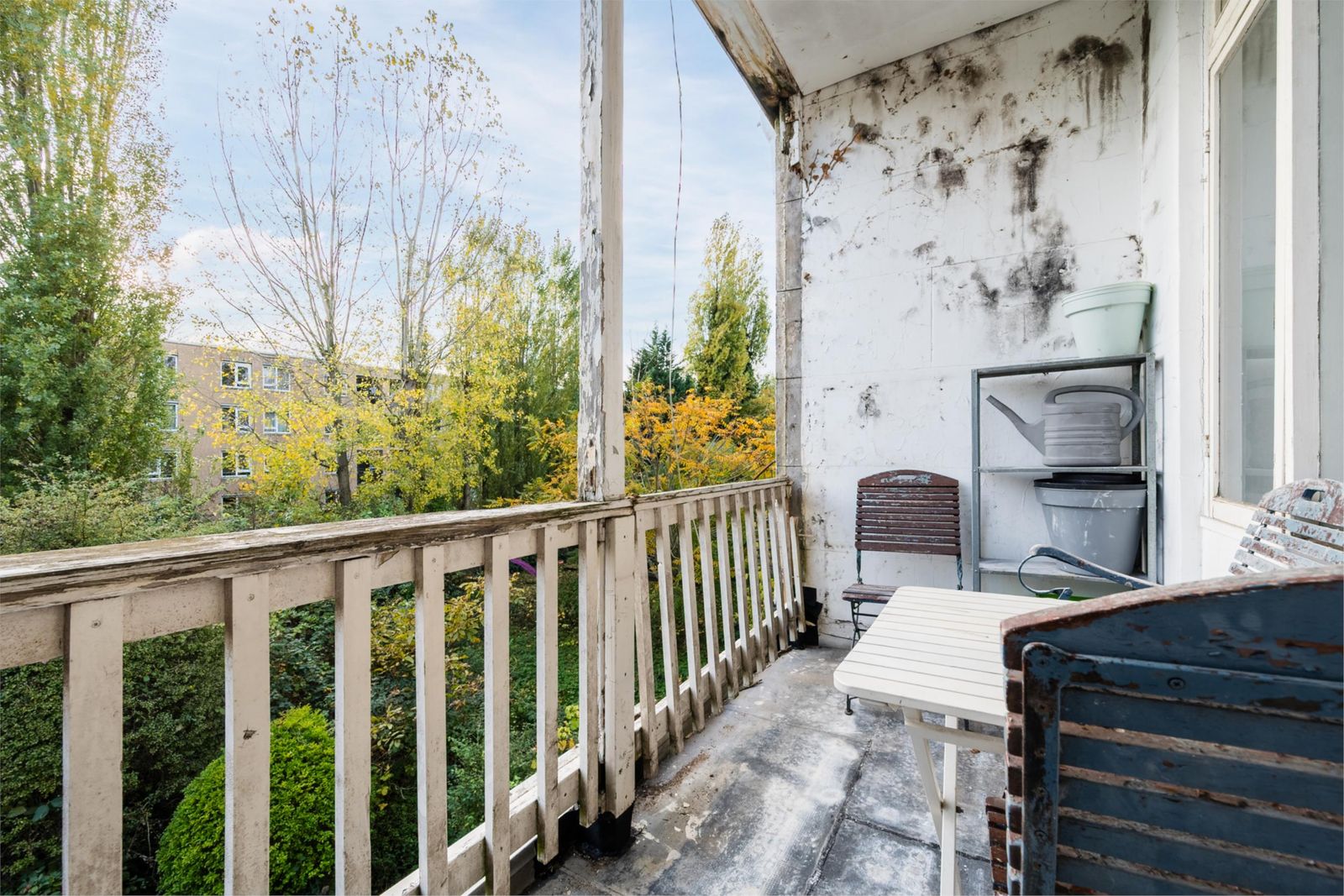 Via de eigen entree kom je via de trap binnen op de eerste verdieping. Aan de achterzijde ligt de keuken met orinele glas en lood ramen en deuren met daaraan een heerlijk ruim balkon op het Zuiden. Een heerlijke rustige plek om een bakje koffie te kunnen drinken in de ochtend, borrelen in de middag of lekker te dineren. Aangrenzend bevinden zich de ruime en lichte kamers met ensuite deuren (facetglas) met hoge plafonds, waar je comfortabel kunt verblijven.