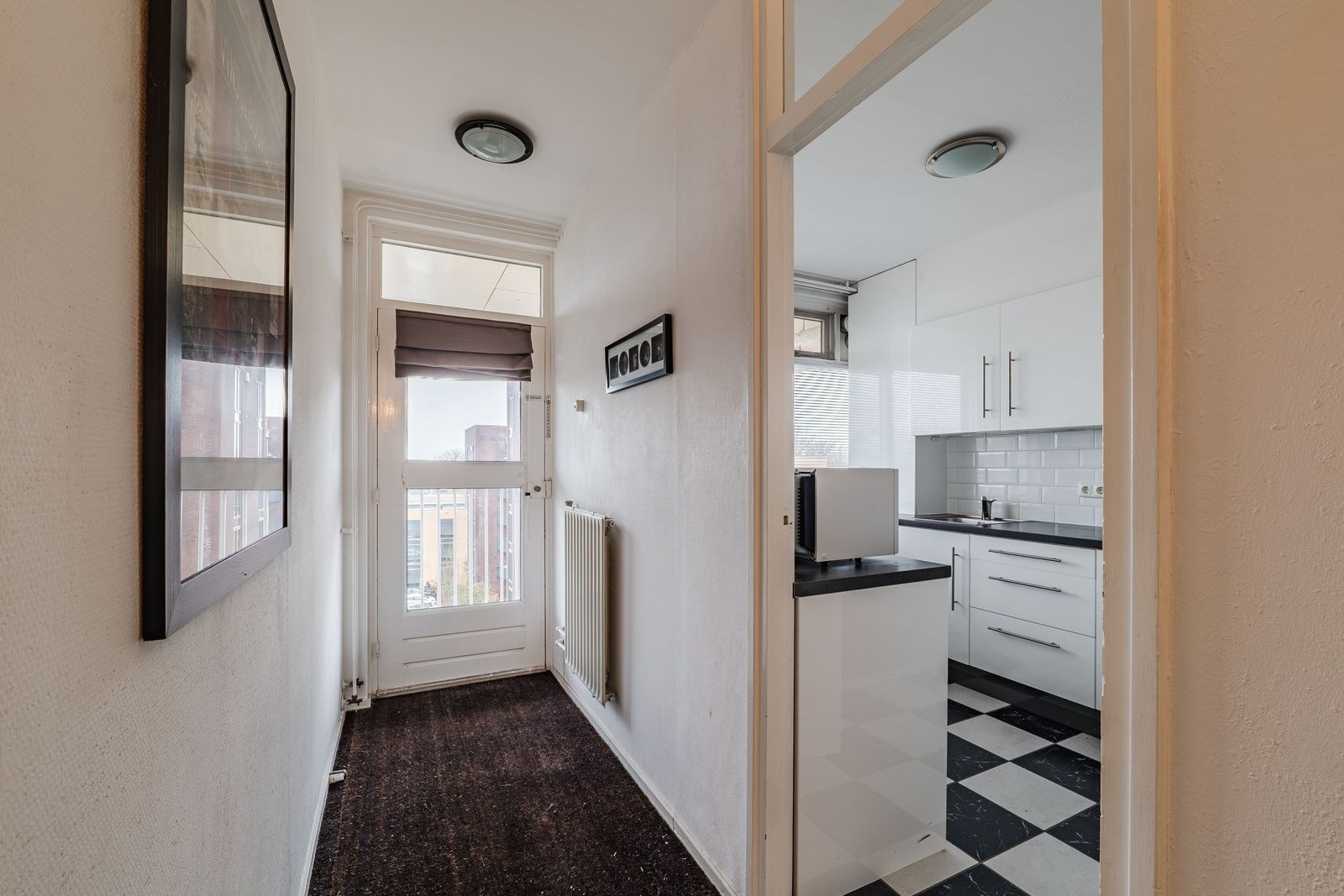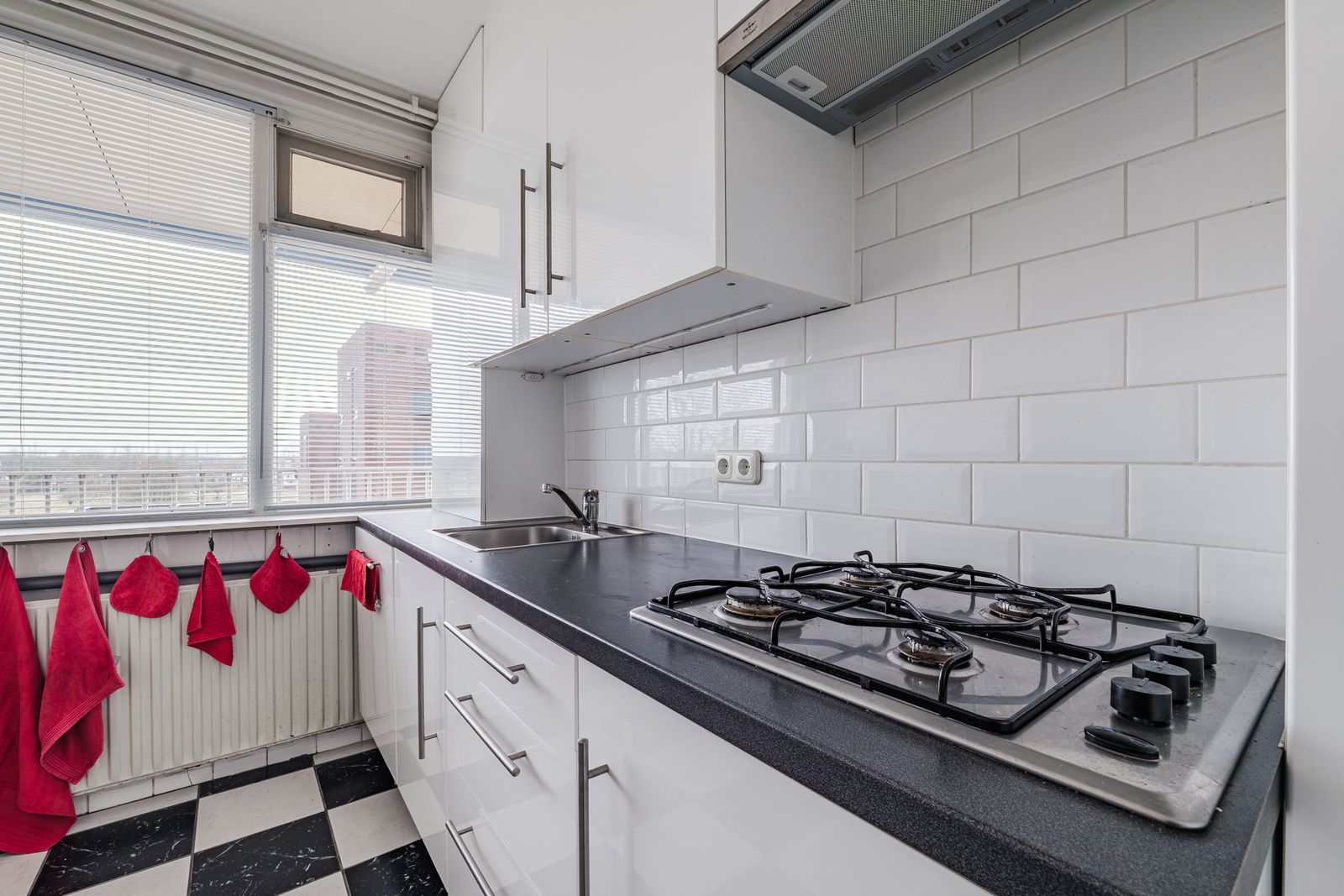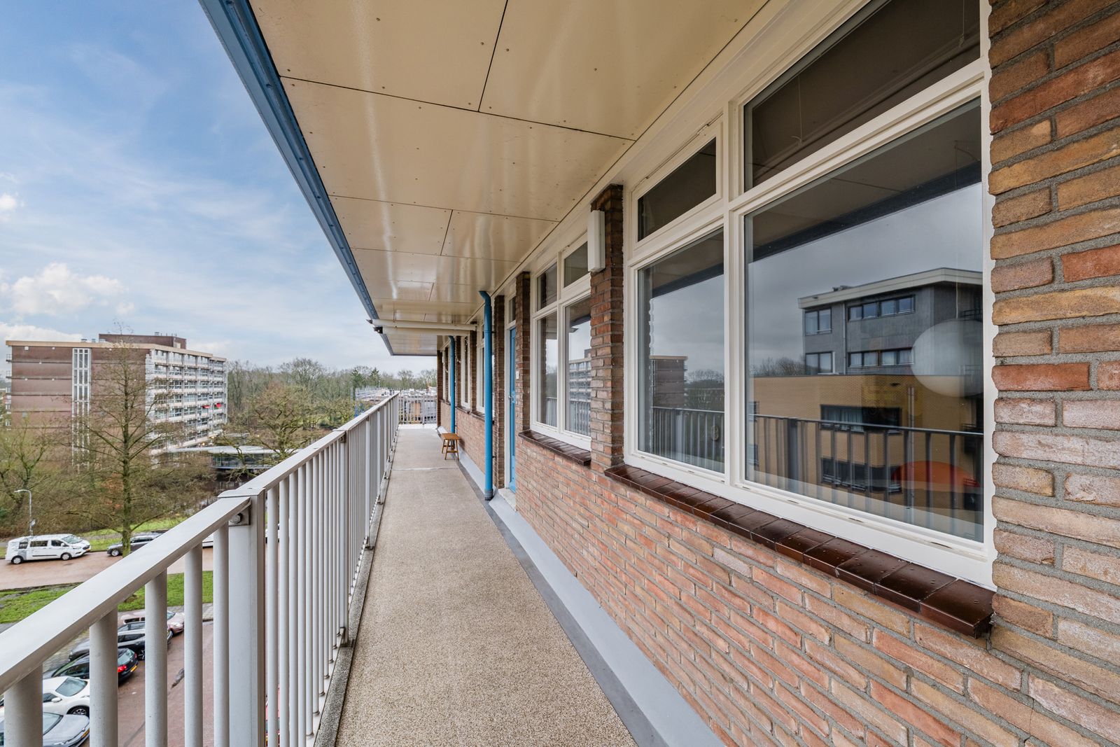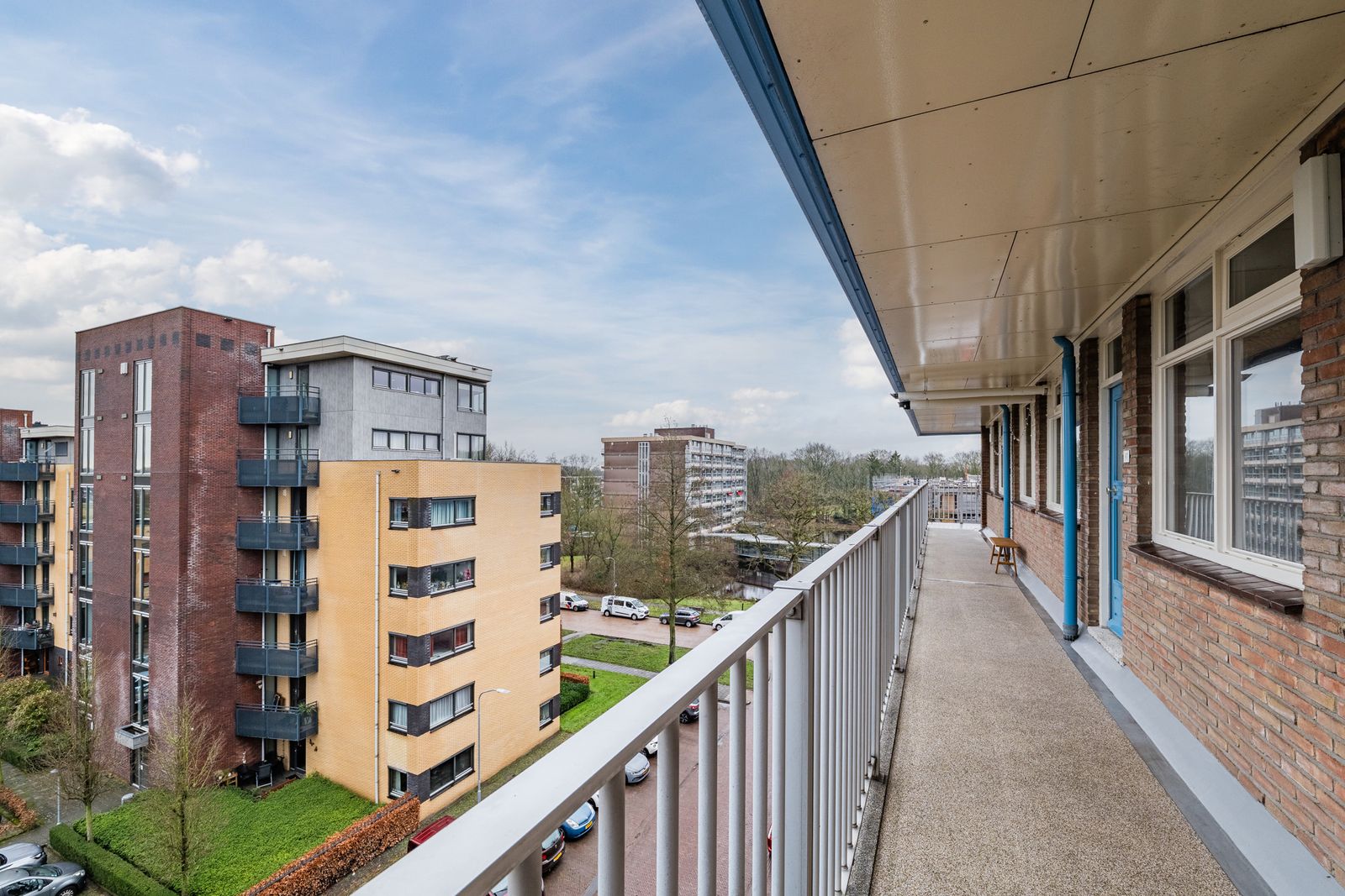 Entree/hal met toilet en meterkast. Aan de linkerzijde bevindt zich de keuken die voorzien is van een 4-pits gaskookplaat, afzuigkap, koelkast en inbouwkast. Verder naar achteren komt men bij de woonkamer, welke prachtig vrij uitzicht biedt en veel natuurlijk lichtinval heeft. Vanuit de woonkamer is de eerste slaapkamer te bereiken. Deze bevindt zich aan de achterzijde van het appartement, met directe toegang tot het zonnige balkon en de badkamer. De badkamer is voorzien van wastafelmeubel en inloopdouche. De tweede slaapkamer bevindt zich aan de voorzijde van het appartement, toegankelijk vanuit de hal.